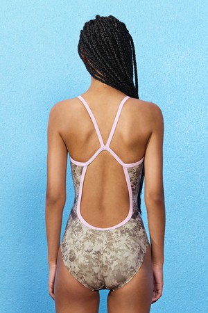 키치피치 사이드킥 카모 브이백 원피스 수영복 애쉬브라운 (KF4LST003)