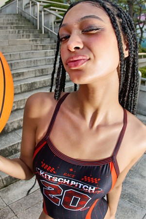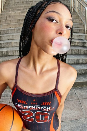 키치피치 챔피언 빅토리 브이백 원피스 수영복 블랙 (KF4LST009)
