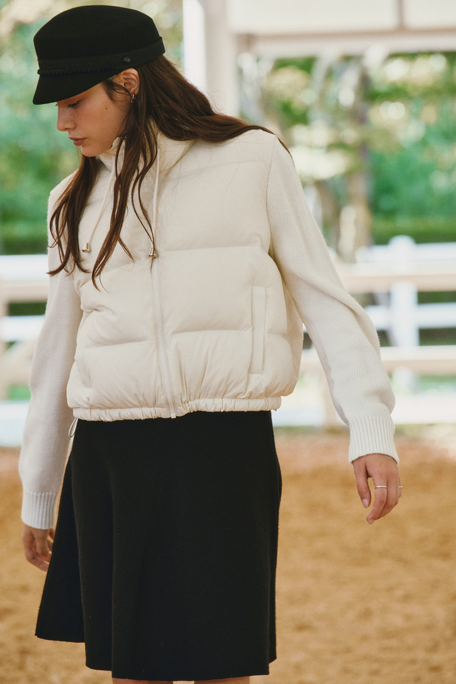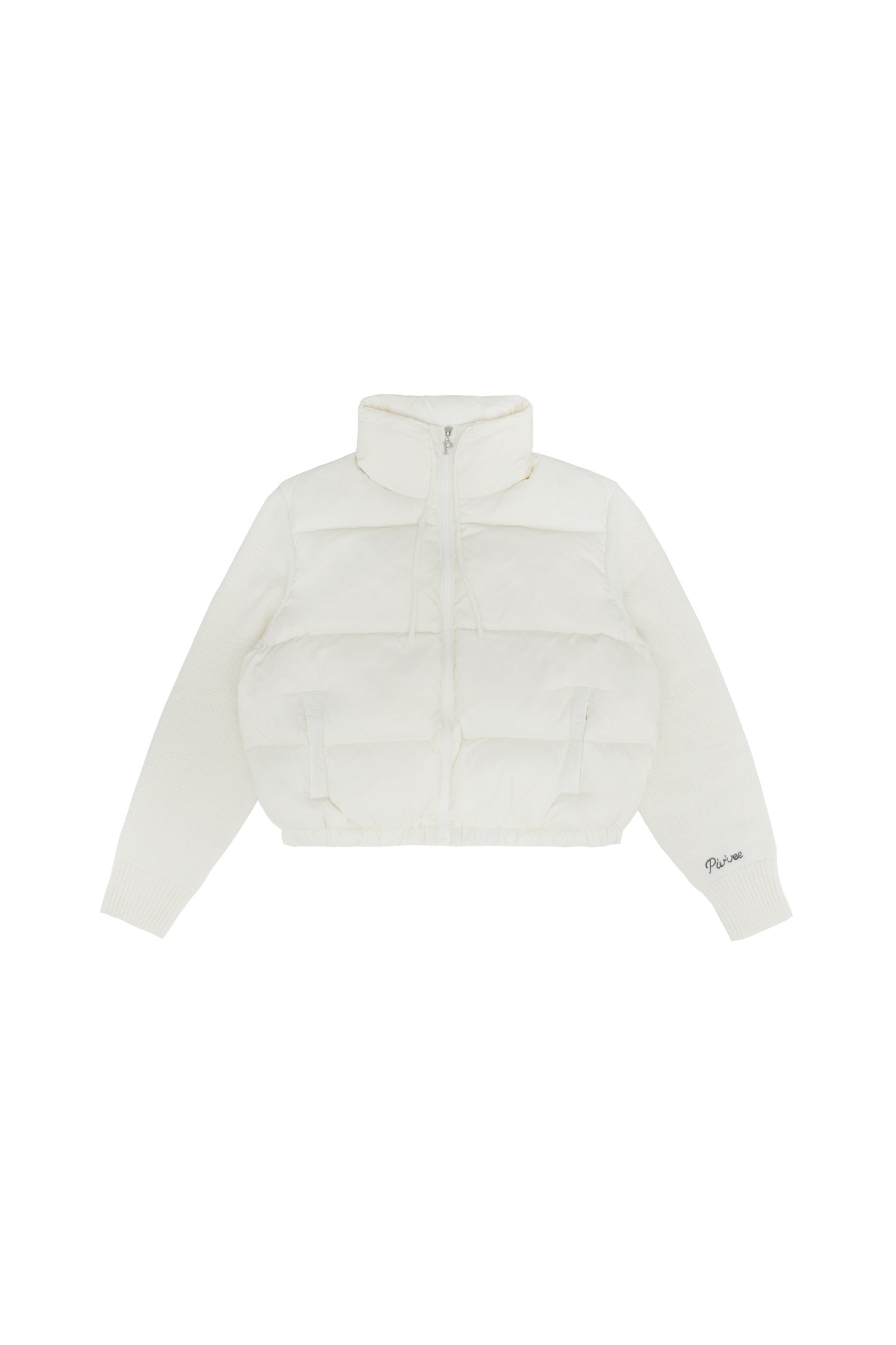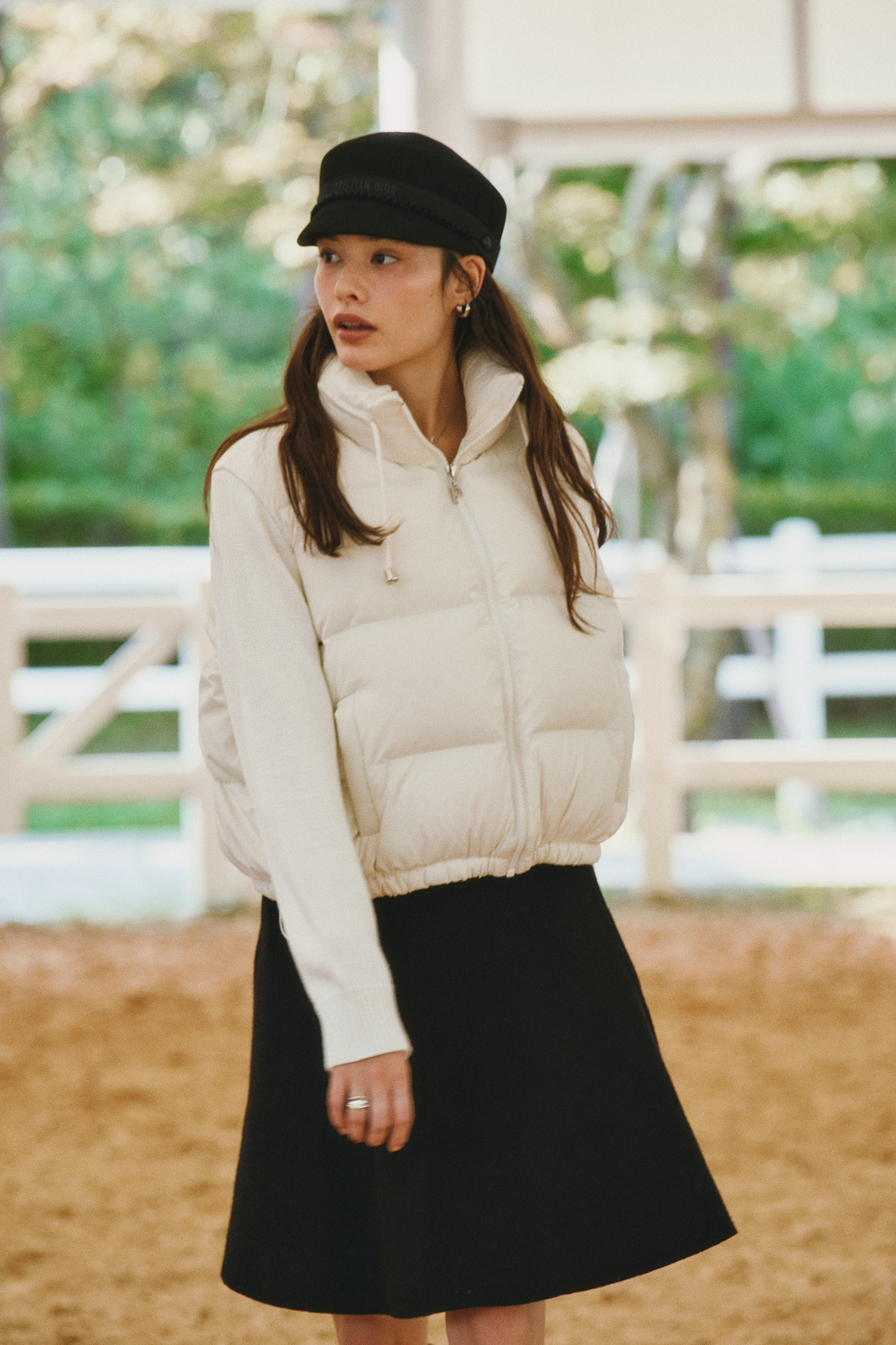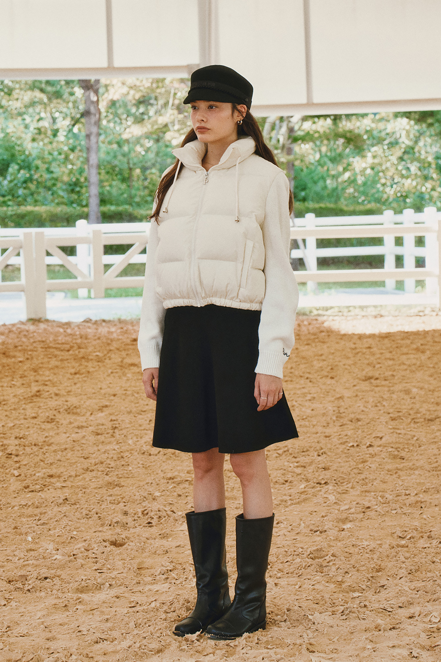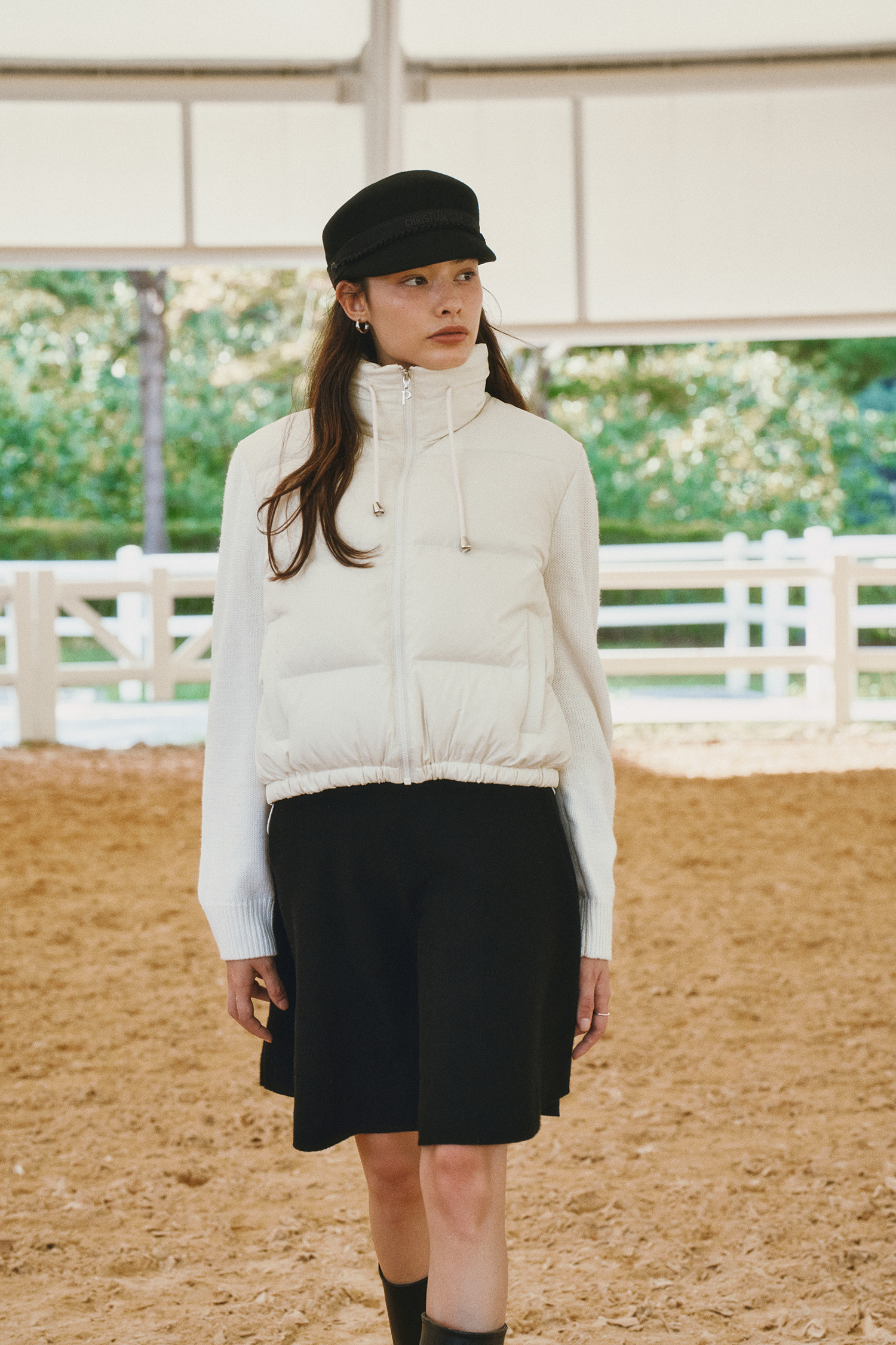 패딩 몸판에 니트 소매로 마무리한 하이브리드 디자인
