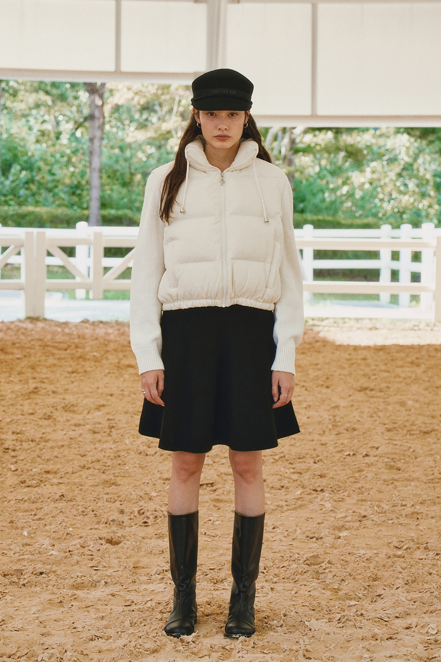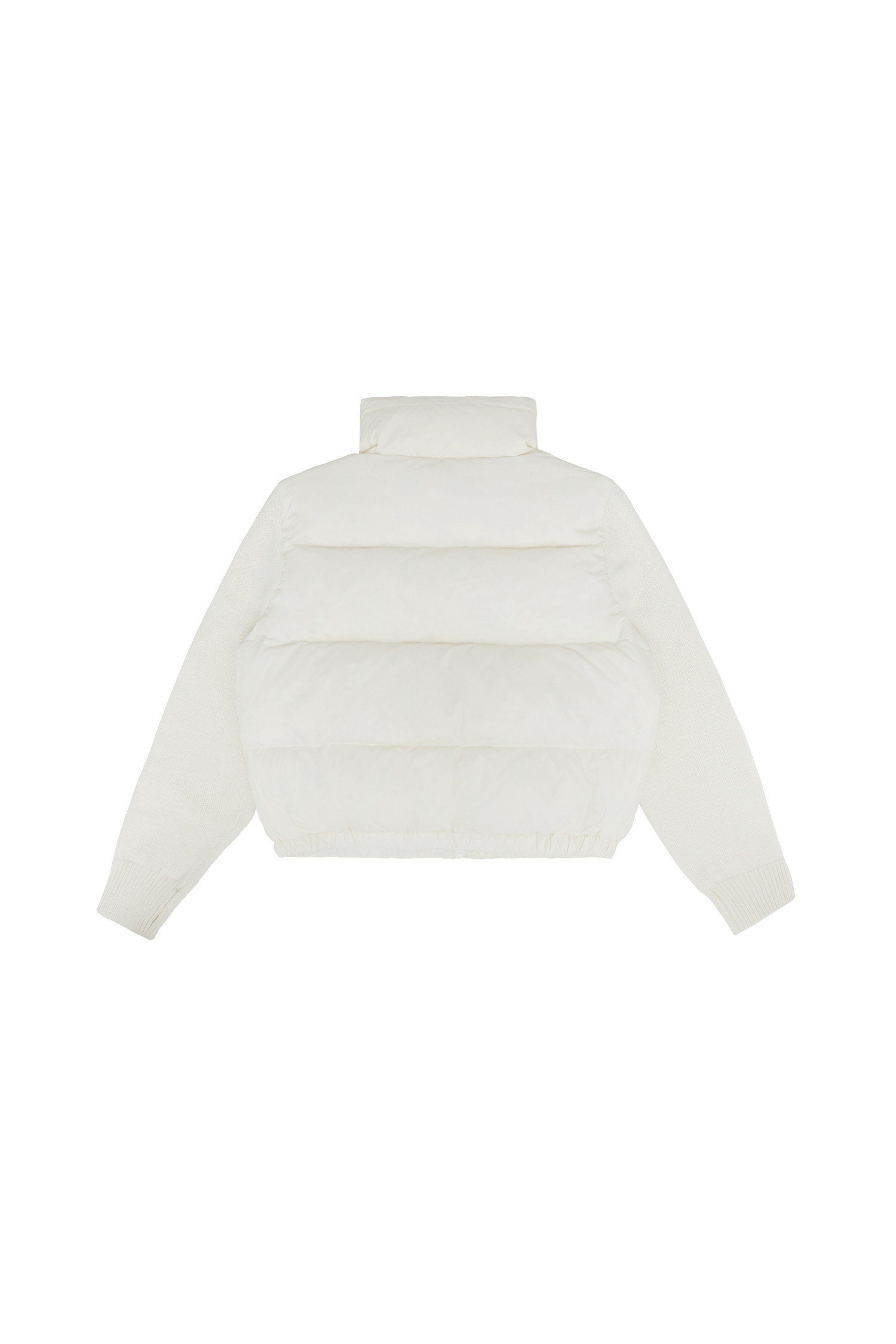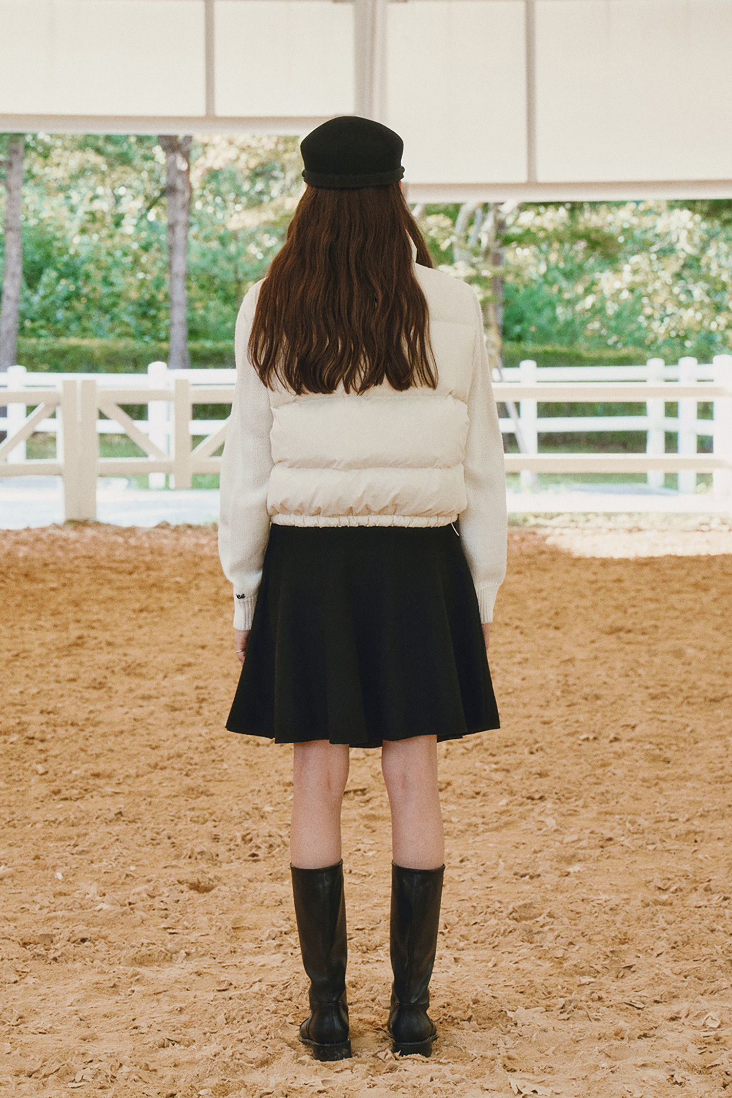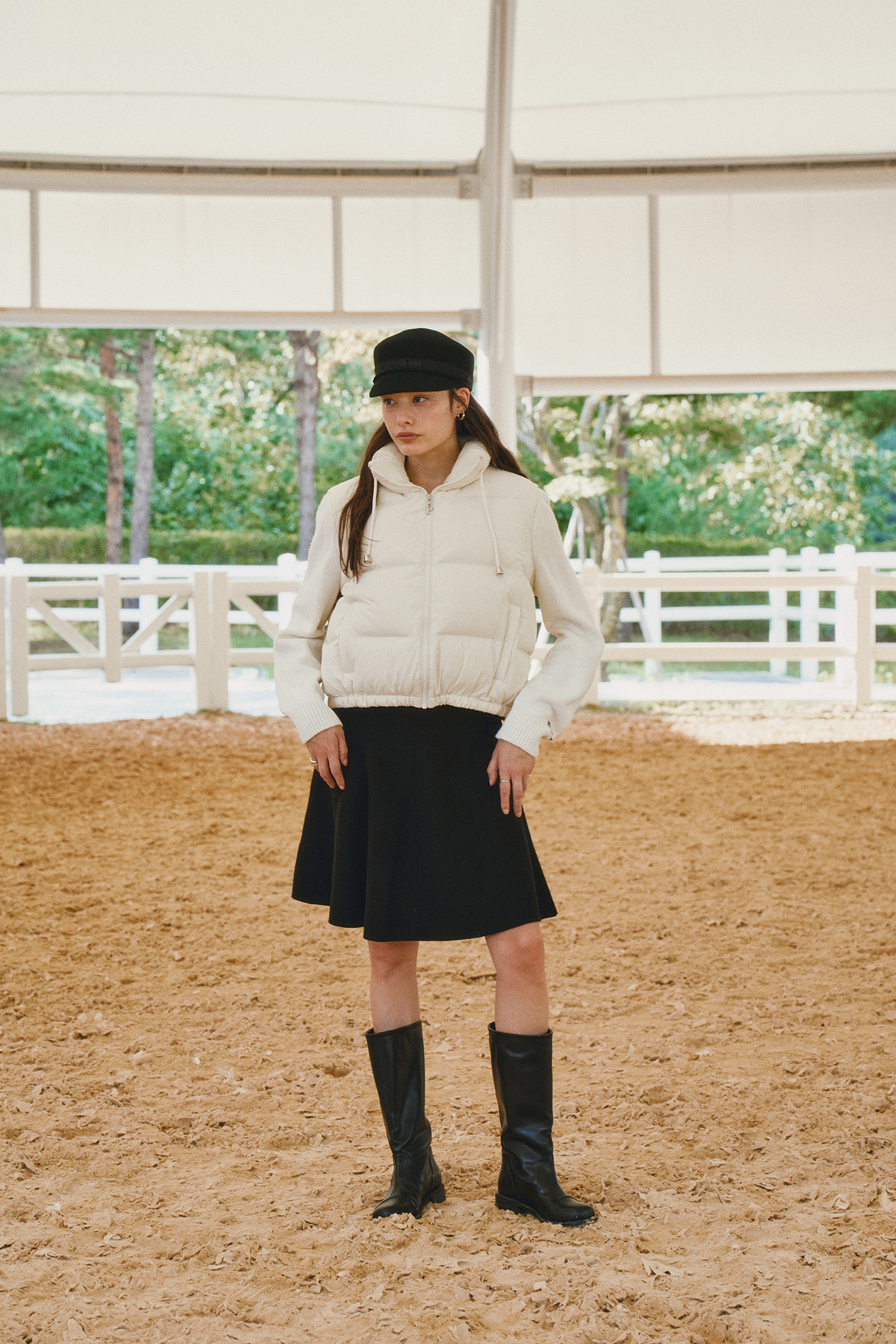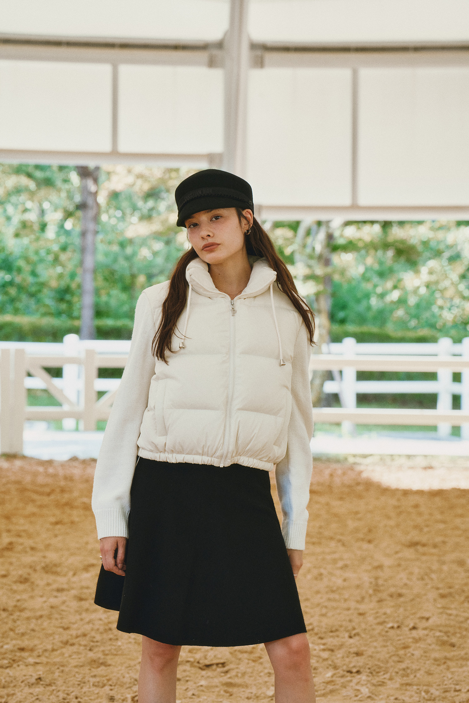 패딩 몸판에 니트 소매로 마무리한 하이브리드 디자인