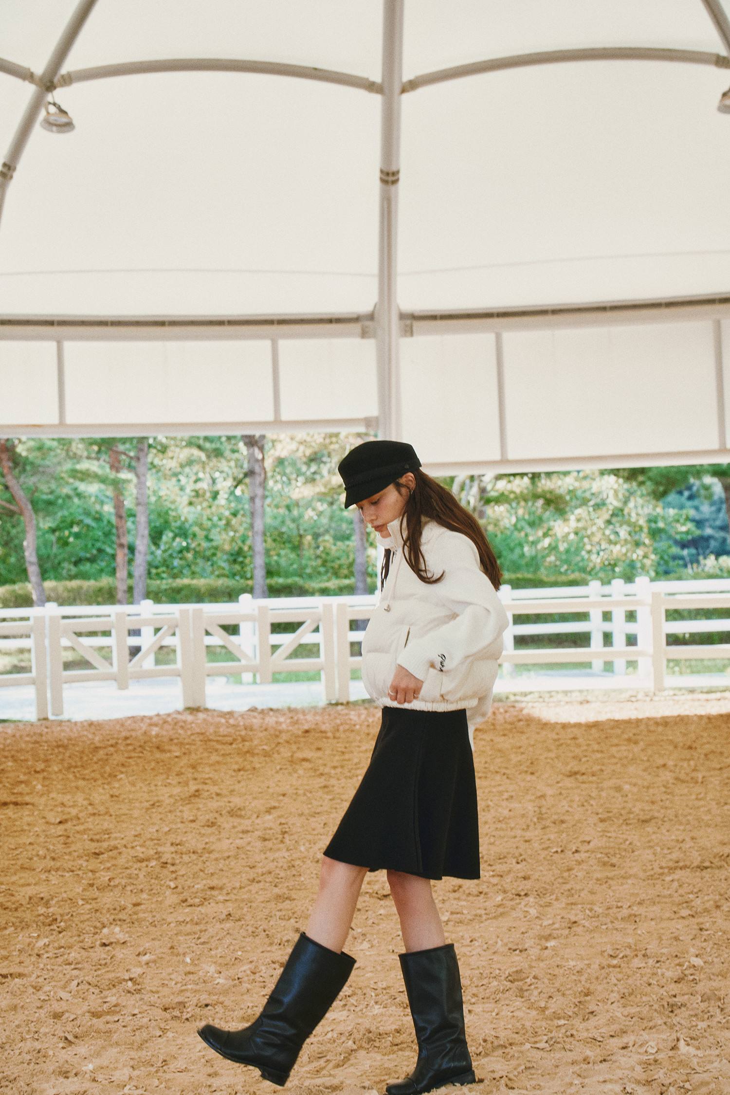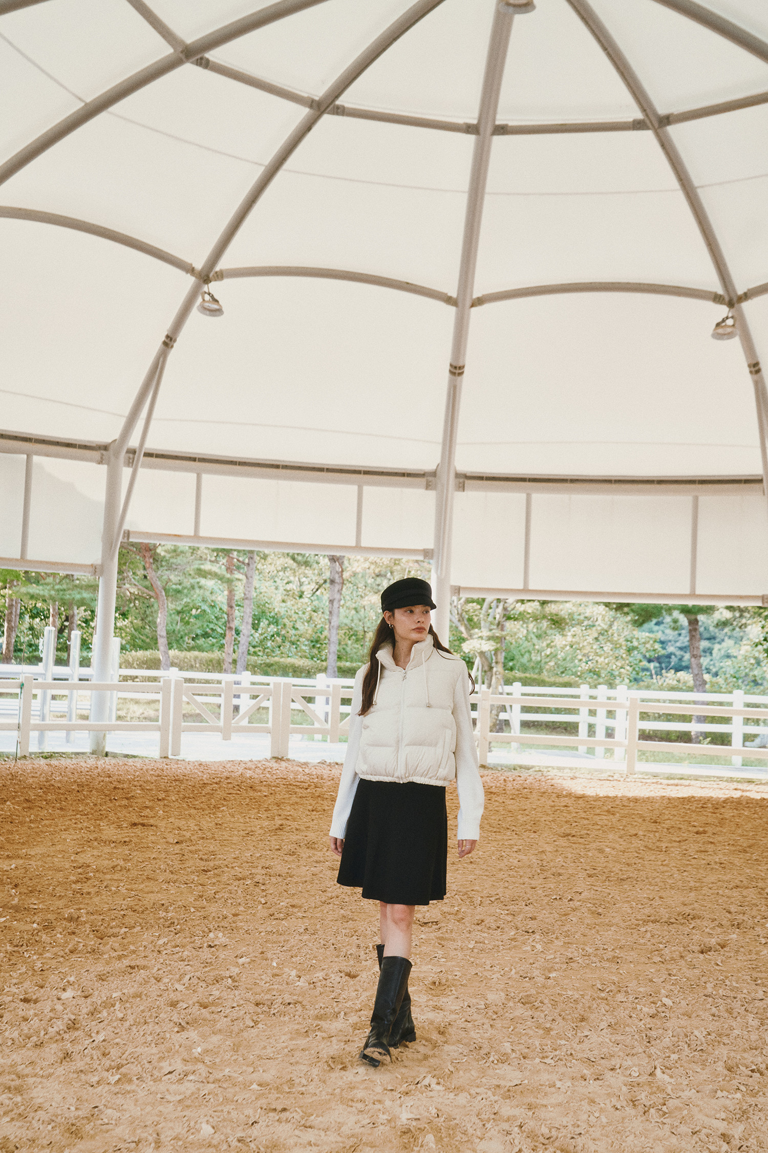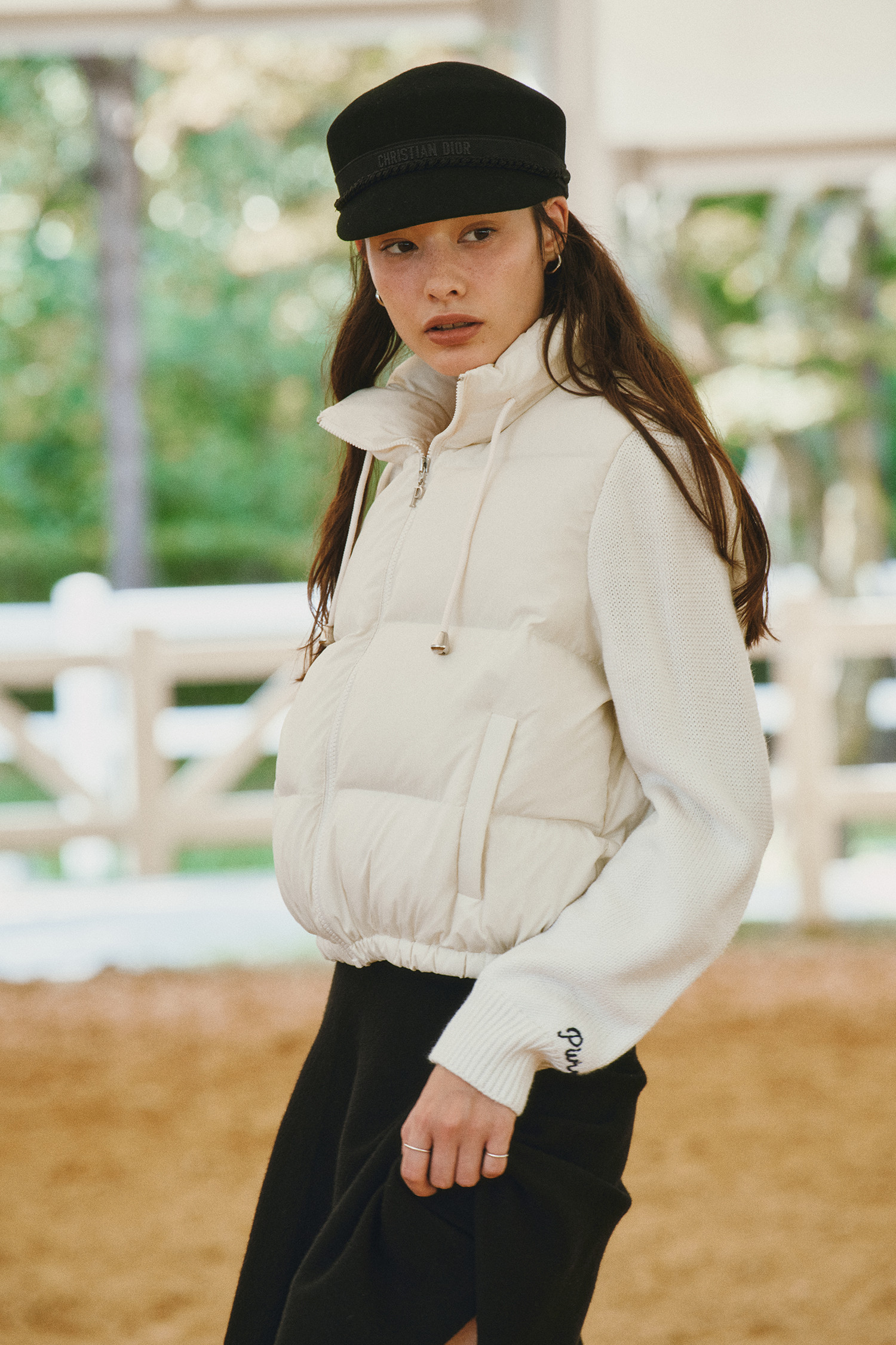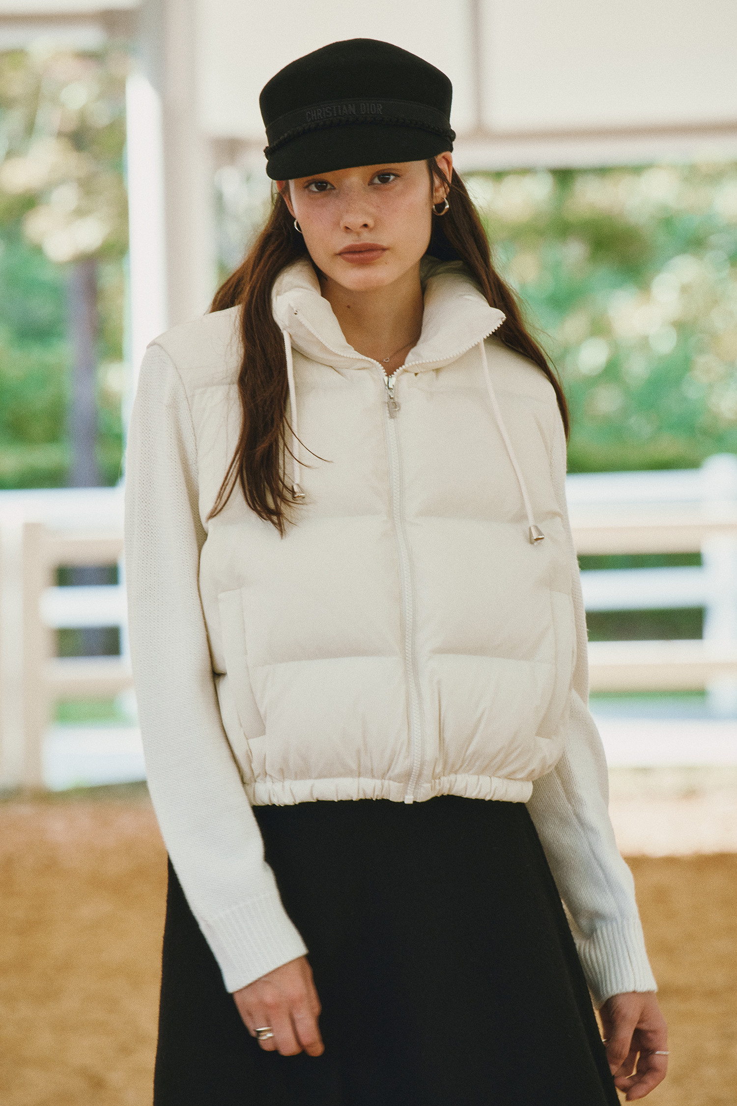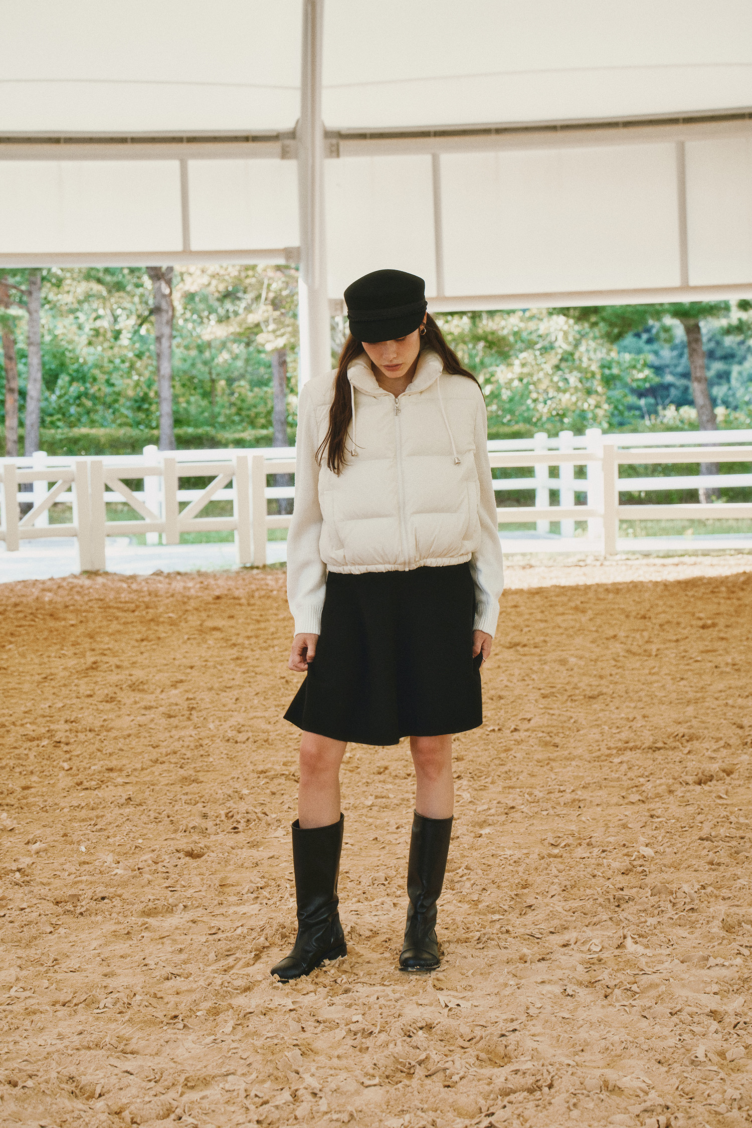 패딩 몸판에 니트 소매로 마무리한 하이브리드 디자인