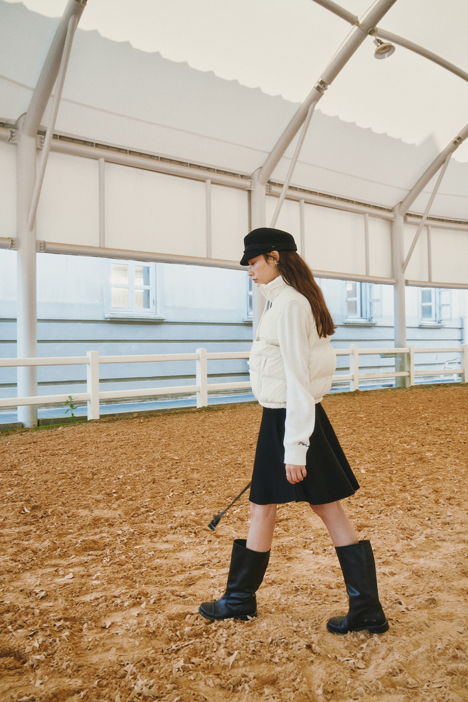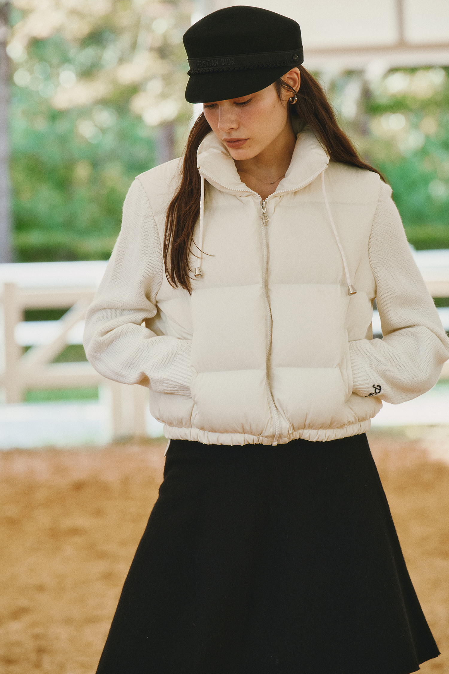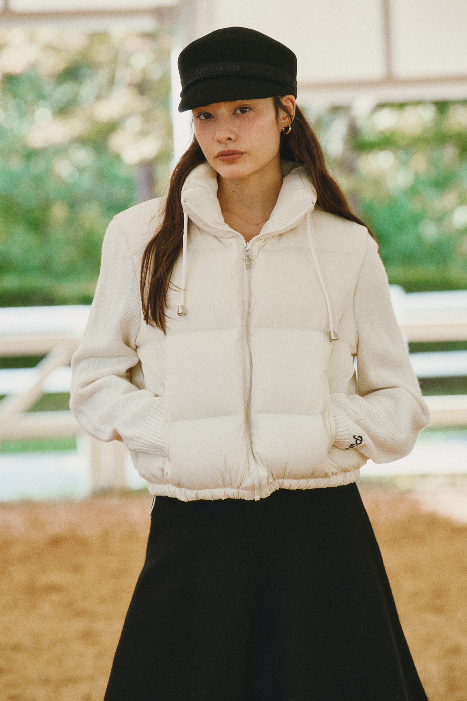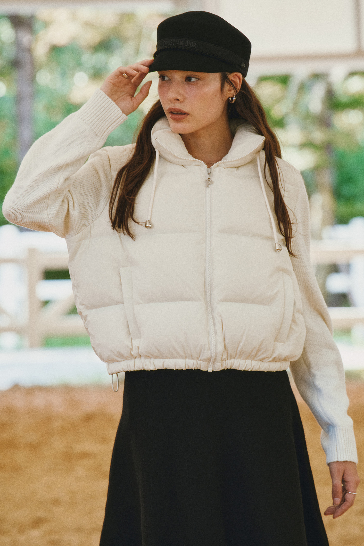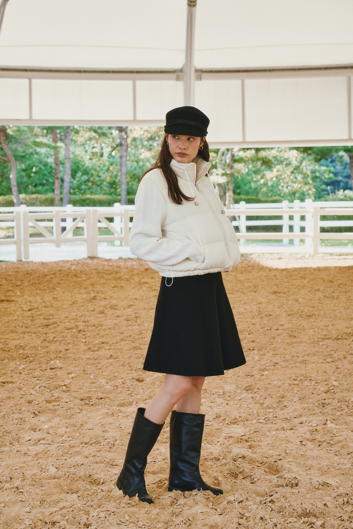 패딩 몸판에 니트 소매로 마무리한 하이브리드 디자인