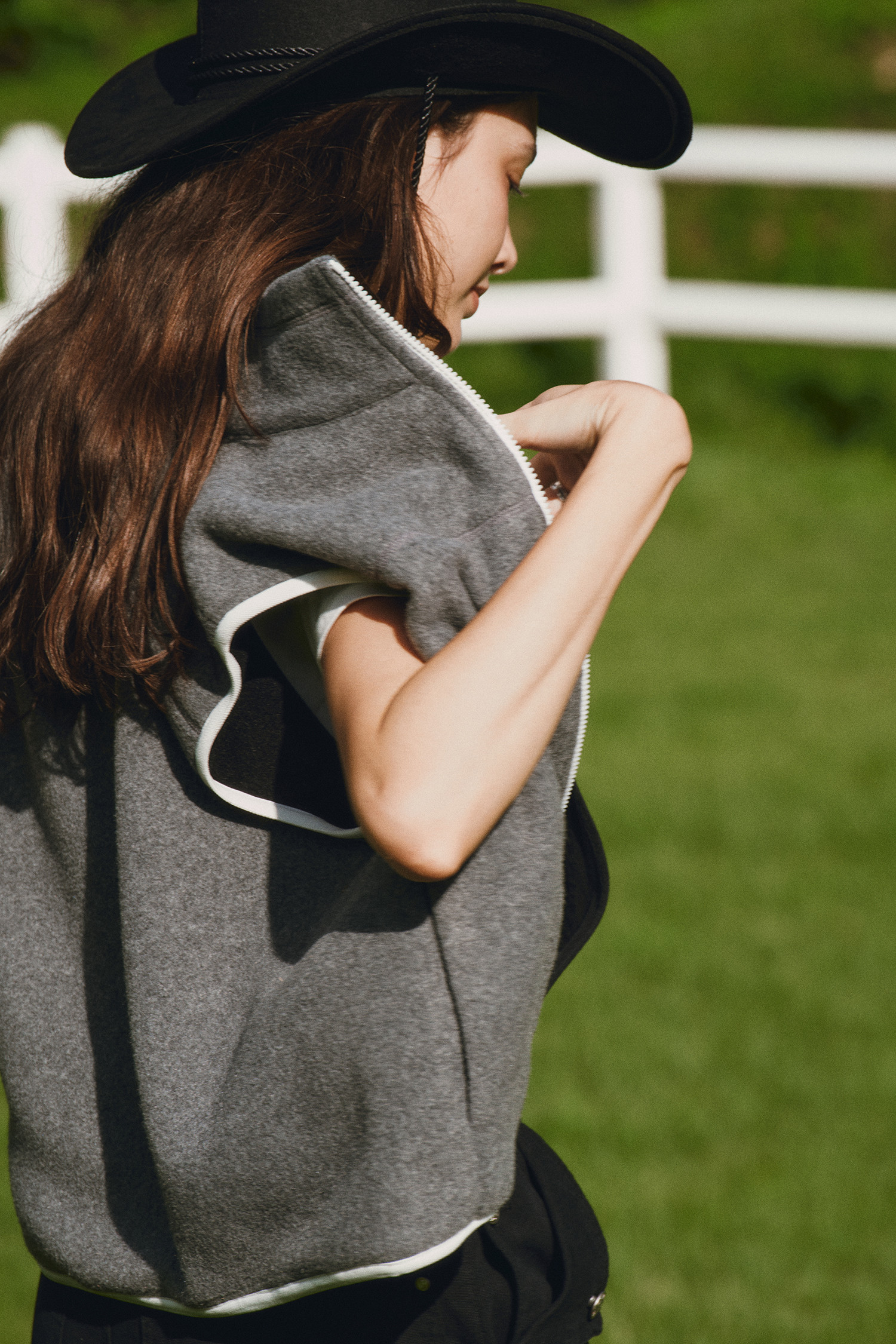 겉감은 도톰한 플리스 원단, 안감은 가볍고 부드러운 플리스를 사용해