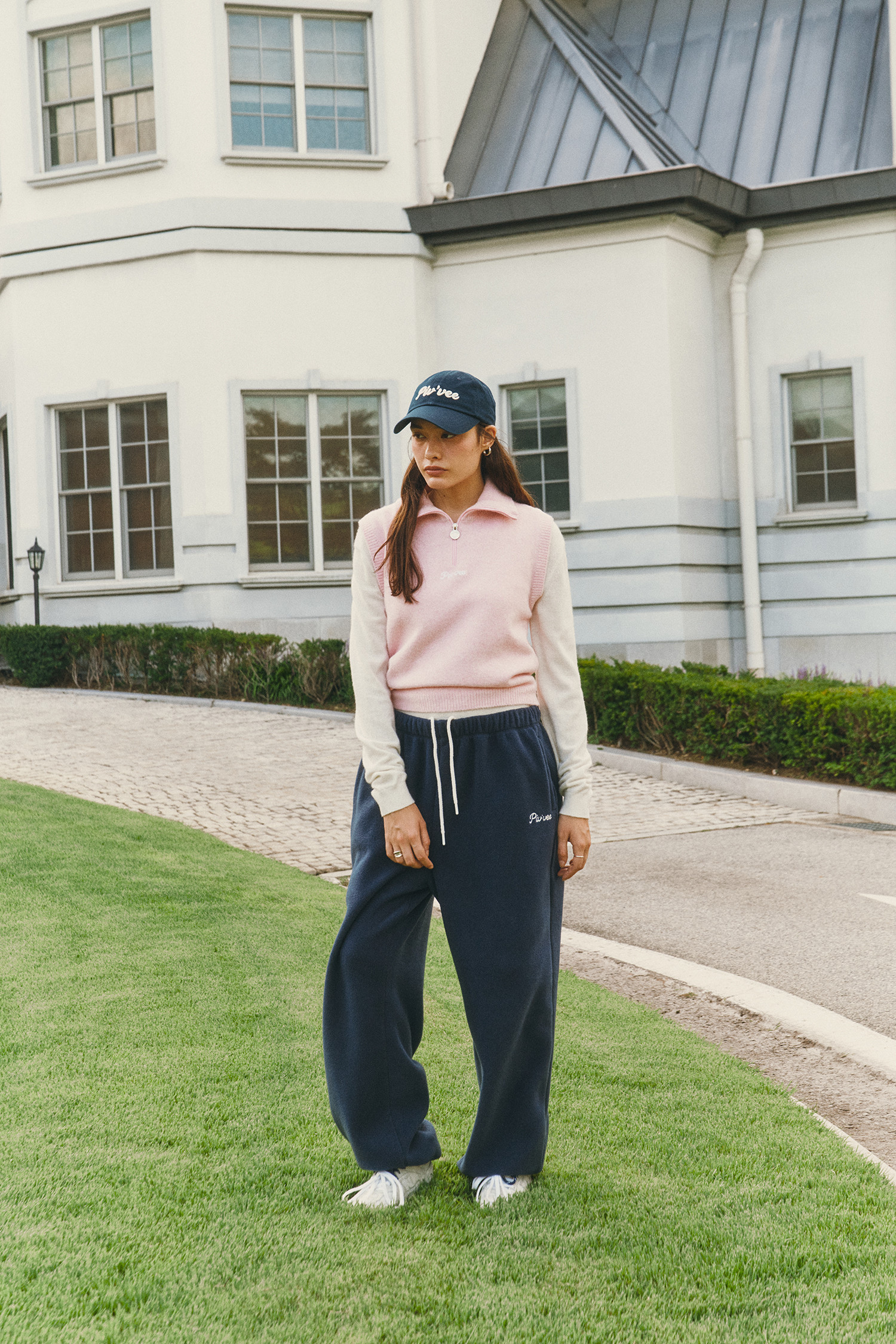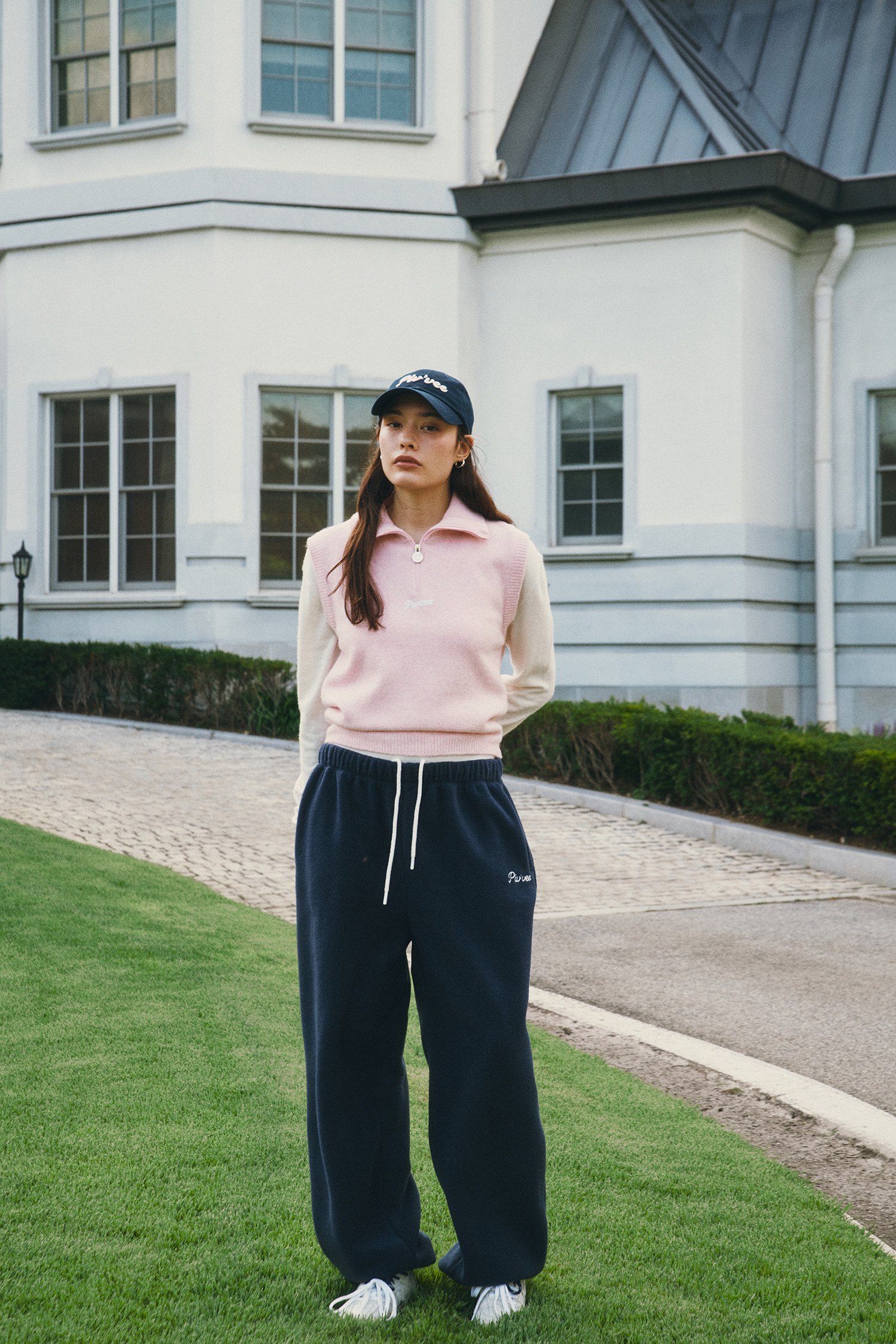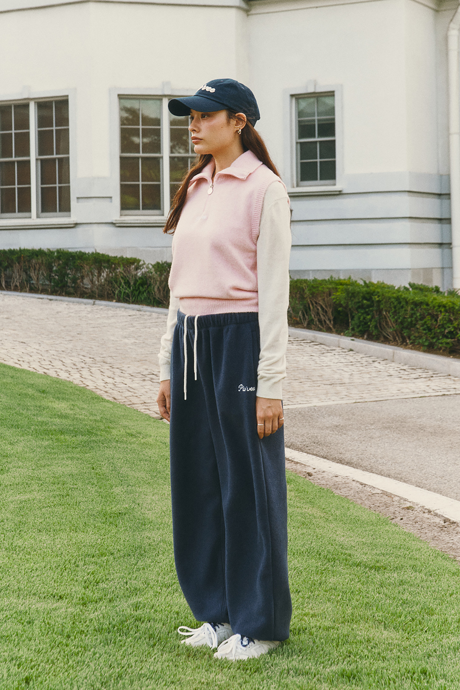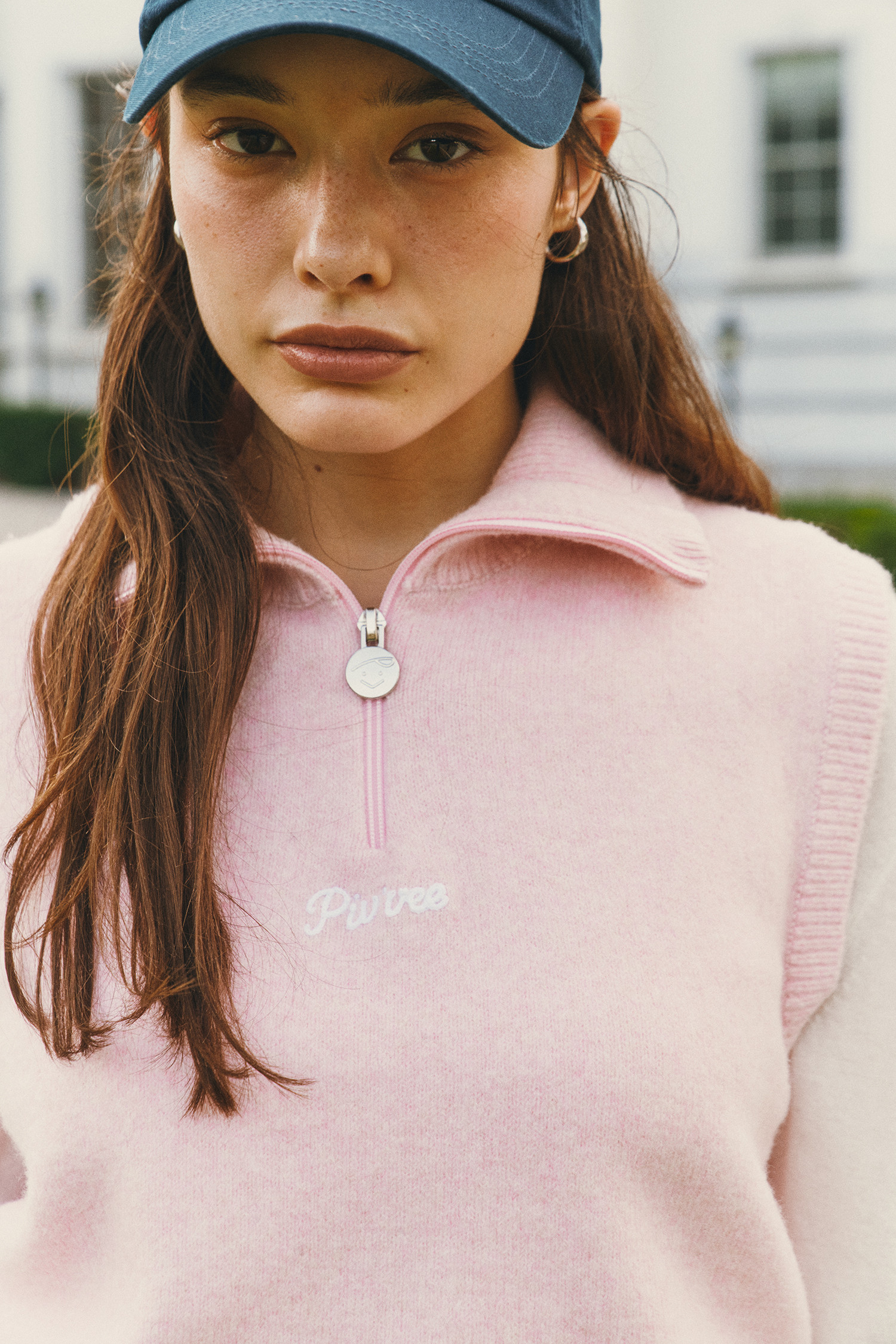 전면 지퍼 아래 피브비 레터링 자수 로고 포인트