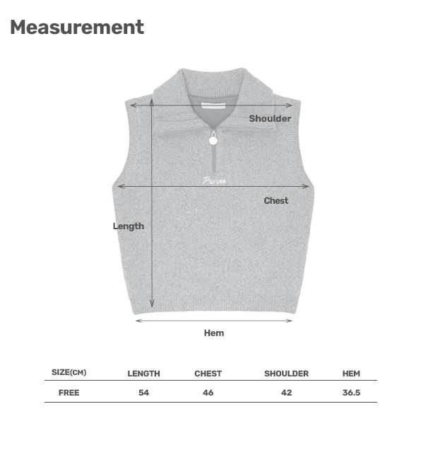치수<MEASUREMENT> F LENGTH 54CM SHOULDER 42CM CHEST 46CM HEM 36.5CM