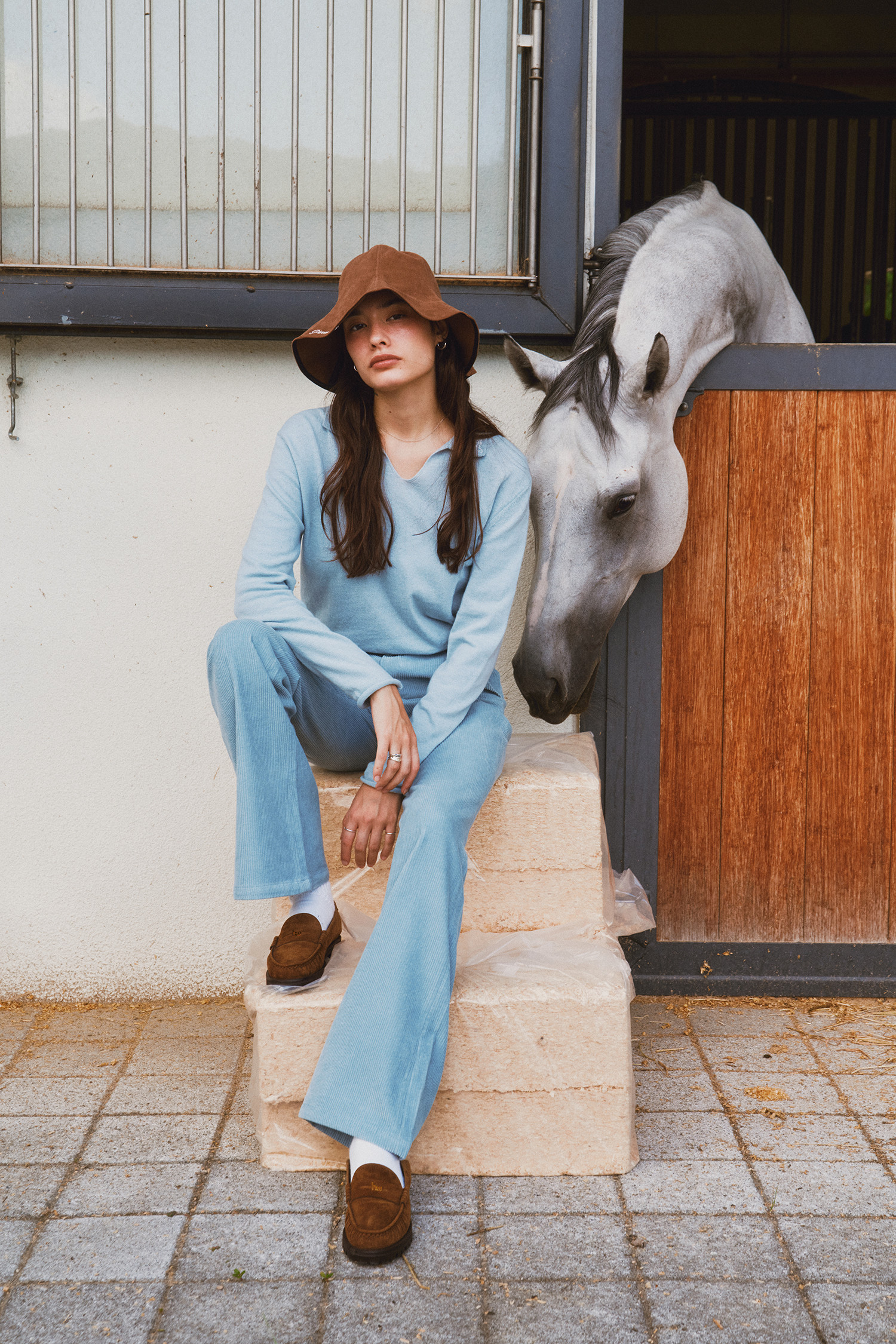 울 캐시미어 혼방 소재로 부드럽고 따뜻하여 편안한 착용감 제공