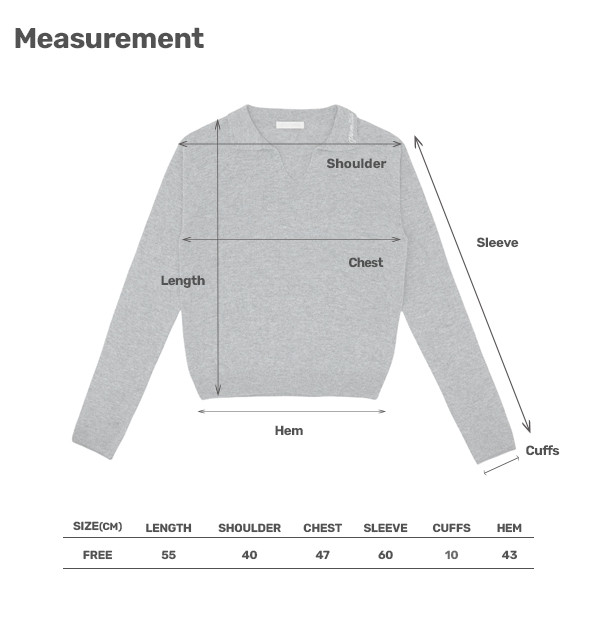 치수<MEASUREMENT> F LENGTH 55CM SHOULDER 40CM CHEST 47CM SLEEVE 60CM CUFFS 9.5CM HEM 34CM