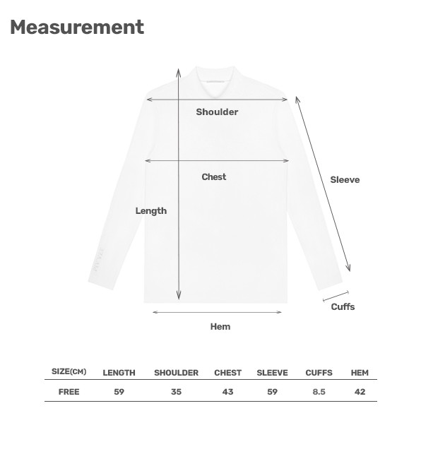 | 치수 | <MEASUREMENT> F LENGTH 59CM(뒤중심) SHOULDER 35CM CHEST 43CM SLEEVE 59CM CUFFS 8.5CM HEM 42CM |