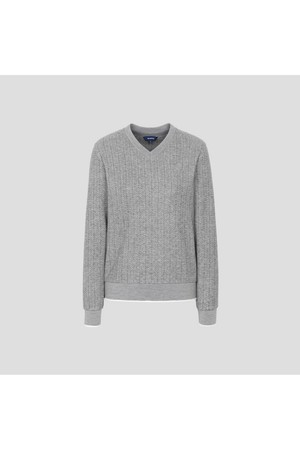 따뜻한 소재로 제작한 블루종핏 티셔츠입니다. 고급스러운 짜임과 편안한 실루엣이 매력적입니다. 넓은 니트 밑단과 가장자리 마감으로 포인트를 주었습니다. 브이넥 디자인으로, 베이스레이어와 레이어드해 입거나 단품으로 착용하기 좋습니다.