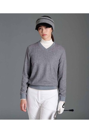 여성 기모 브이넥 블루종핏 티셔츠 - 라이트 그레이(BJ5X41A352)
