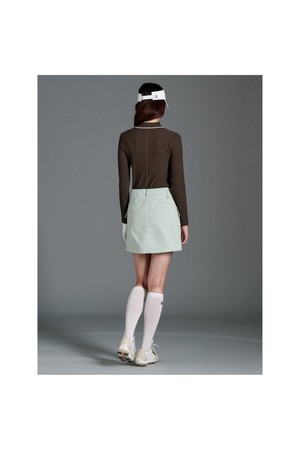 경쾌한 느낌의 코듀로이 원단을 사용한 H라인 스커트입니다. 뒷기장이 살짝 길어 필드에서 앉았다 일어날 때에도 뒷모습을 안정적으로 연출해주는 매너 아이템입니다. 허리 뒤쪽은 밴드를 적용해 활동성을 높였습니다.
