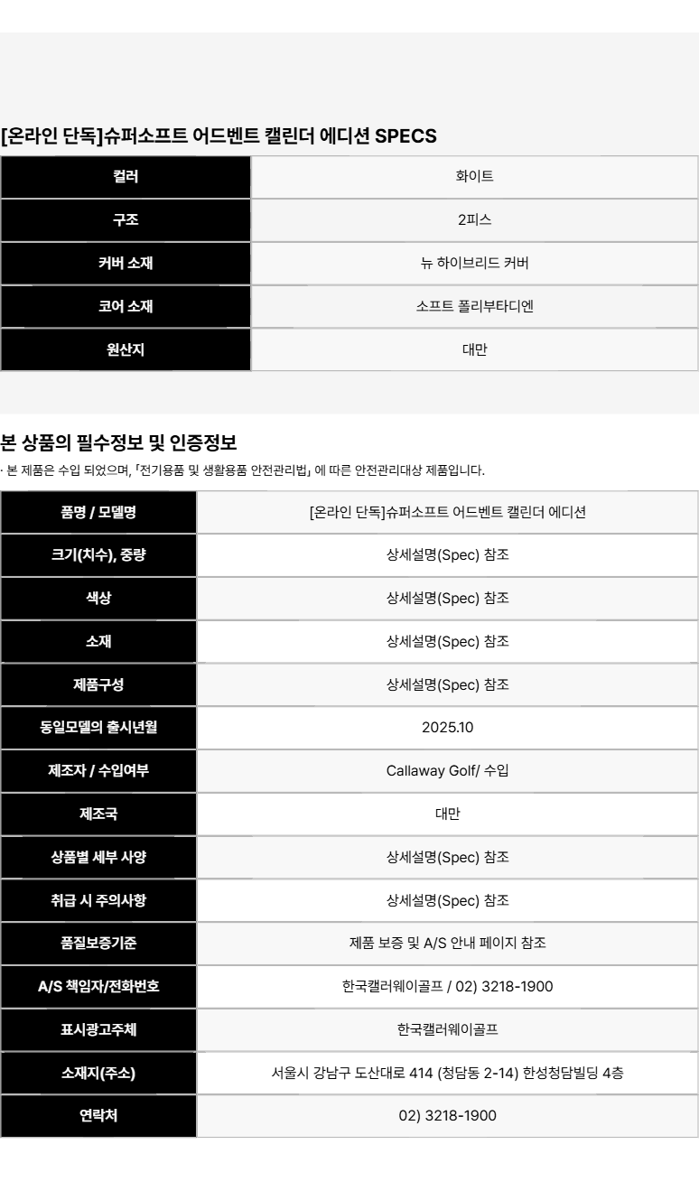 | 상품별 세부 사양 | 상품상세설명참조 |