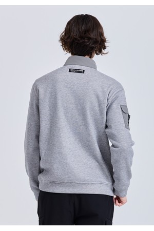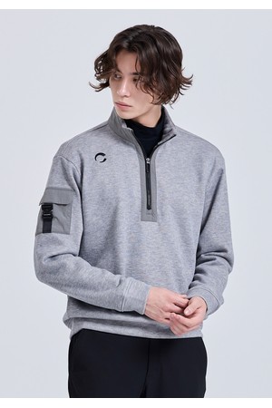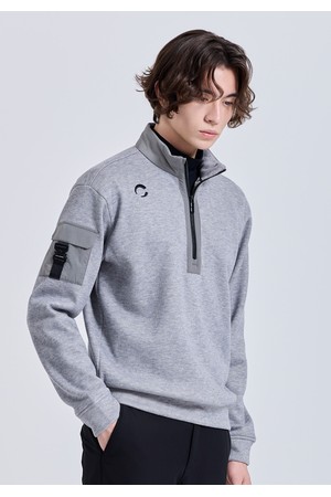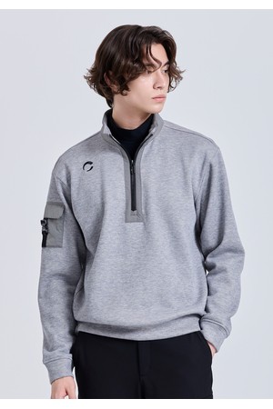 남성 밍크본딩 우븐믹스 반집업 긴팔 티셔츠 멜란지그레이