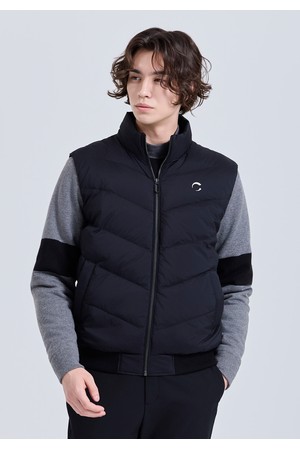 소매 배색 디테일로 감각적인 포인트를 더한 하이브리드 다운 자켓.