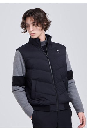 남성 배색 포인트 숄더 프리 스윙 구스다운 자켓 블랙