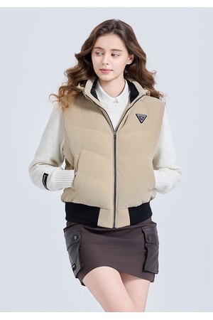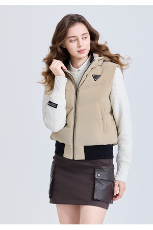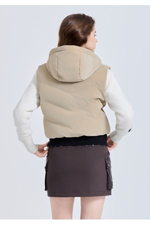여성 샤이닝 후드 탈부착 다운 베스트 베이지