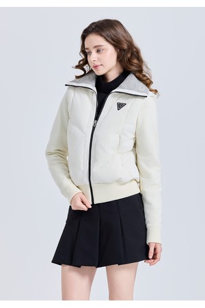 여성 와이드 카라 숄더 프리 스윙 구스다운 자켓 크림