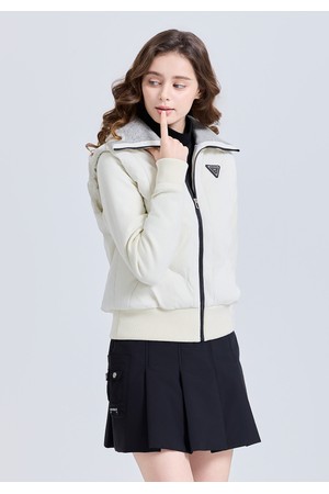 구스다운의 가벼움과 따뜻함이 겨울 라운드의 집중력을 지켜주며, 미니멀한 로고 디테일은 은근한 자신감을 표현합니다.