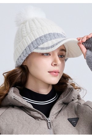 챙이 더해져 겨울 햇살을 가볍게 가려주고, 배색 포인트와 로고 자수가 세련된 골프웨어 스타일을 완성합니다.