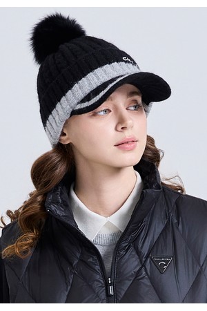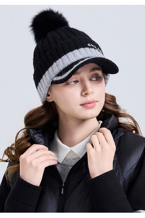 챙이 더해져 겨울 햇살을 가볍게 가려주고, 배색 포인트와 로고 자수가 세련된 골프웨어 스타일을 완성합니다.