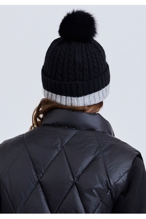 여성 폭스퍼 탈부착 앙고라 니트 캡 블랙