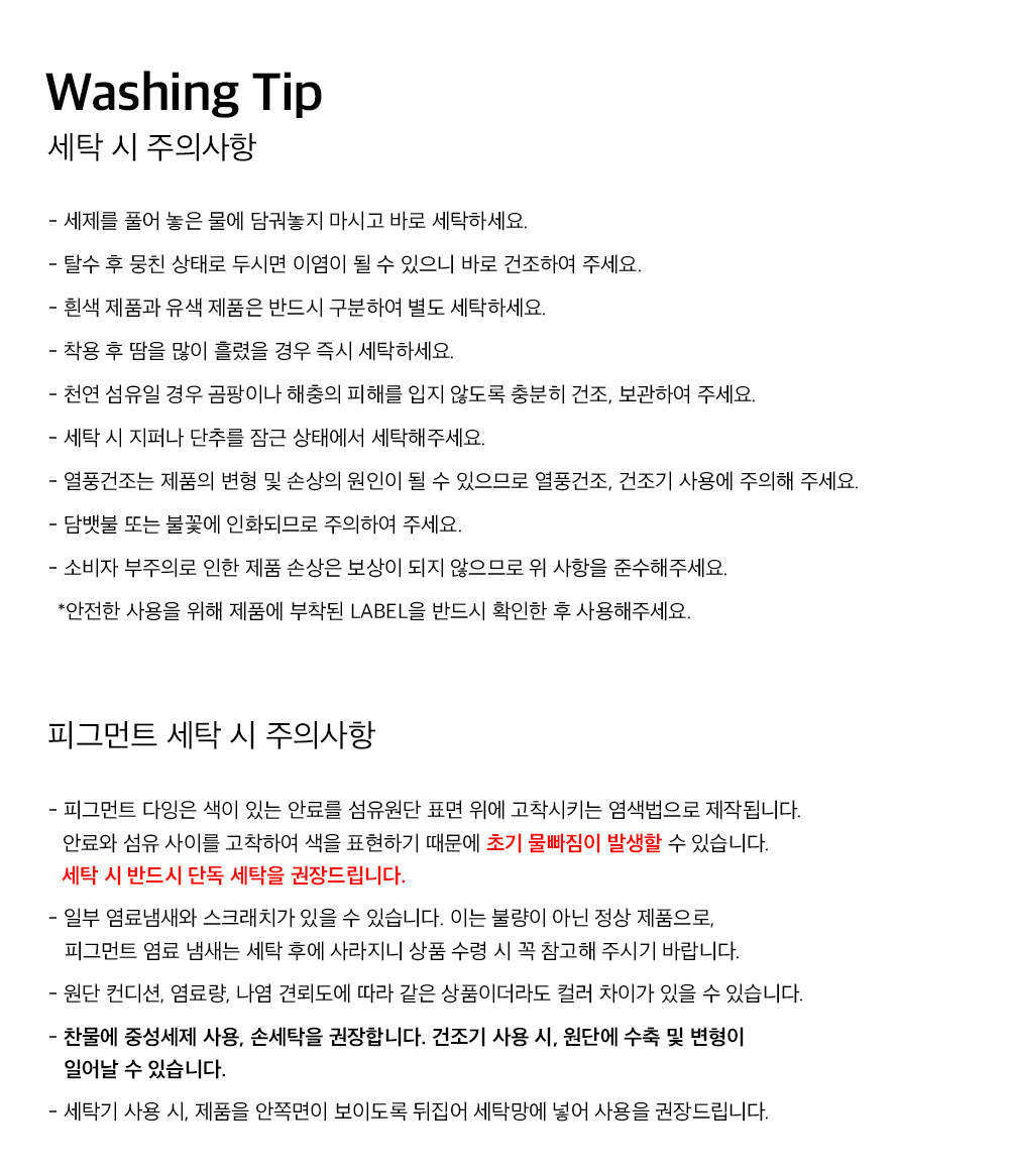 세탁방법 및 취급시 주의사항상세페이지 참조