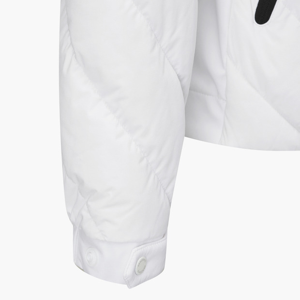 파우더리하고 소프트한 터치의 스트레치 원단을 사용하여 활동성을 높인 다운 점퍼입니다.