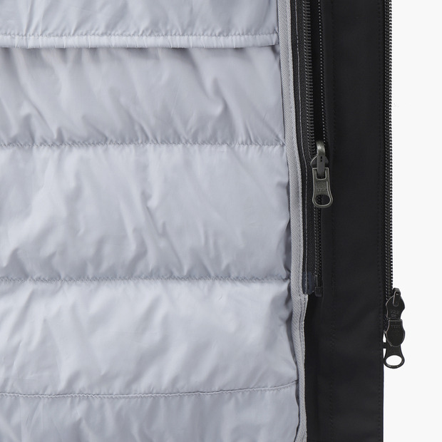 부드러운 터치감의 다운 원단을 사용하여 제작된 실용적인 롱다운 점퍼입니다.