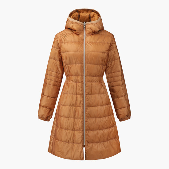 부드러운 터치감의 다운 원단을 사용하여 제작된 실용적인 롱다운 점퍼입니다.
