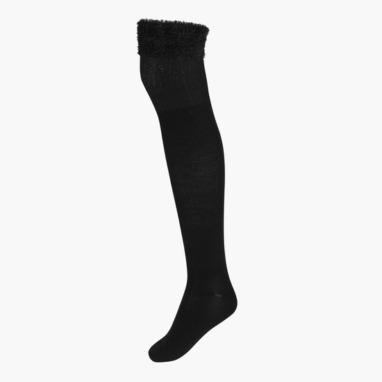 장시간 착용 시의 편안함과 뛰어난 보온성을 모두 고려하여 설계된 여성 방한 오버 니삭스입니다.