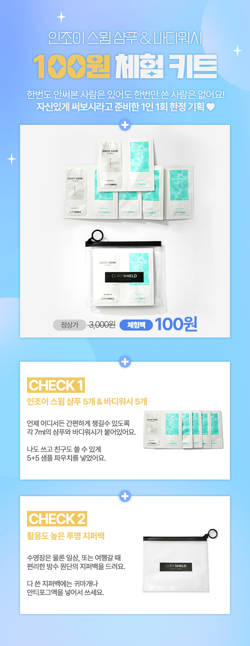 인조이스윔 수영장 염소 냄새 케어 일회용 체험 키트 세트