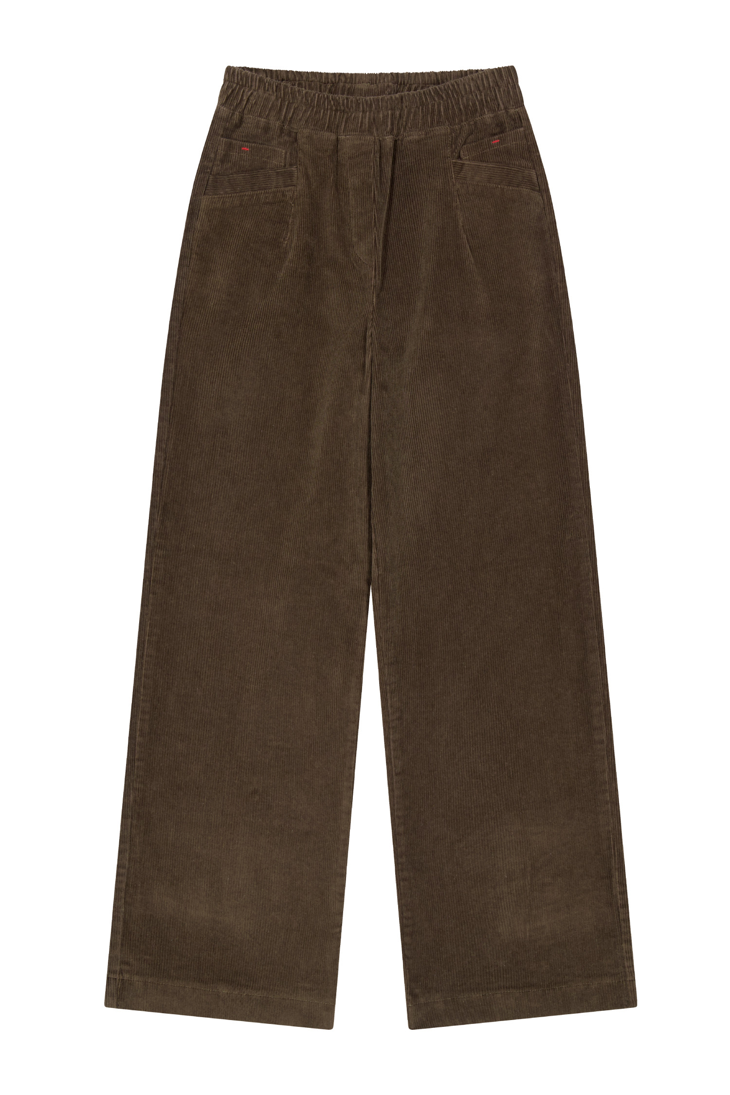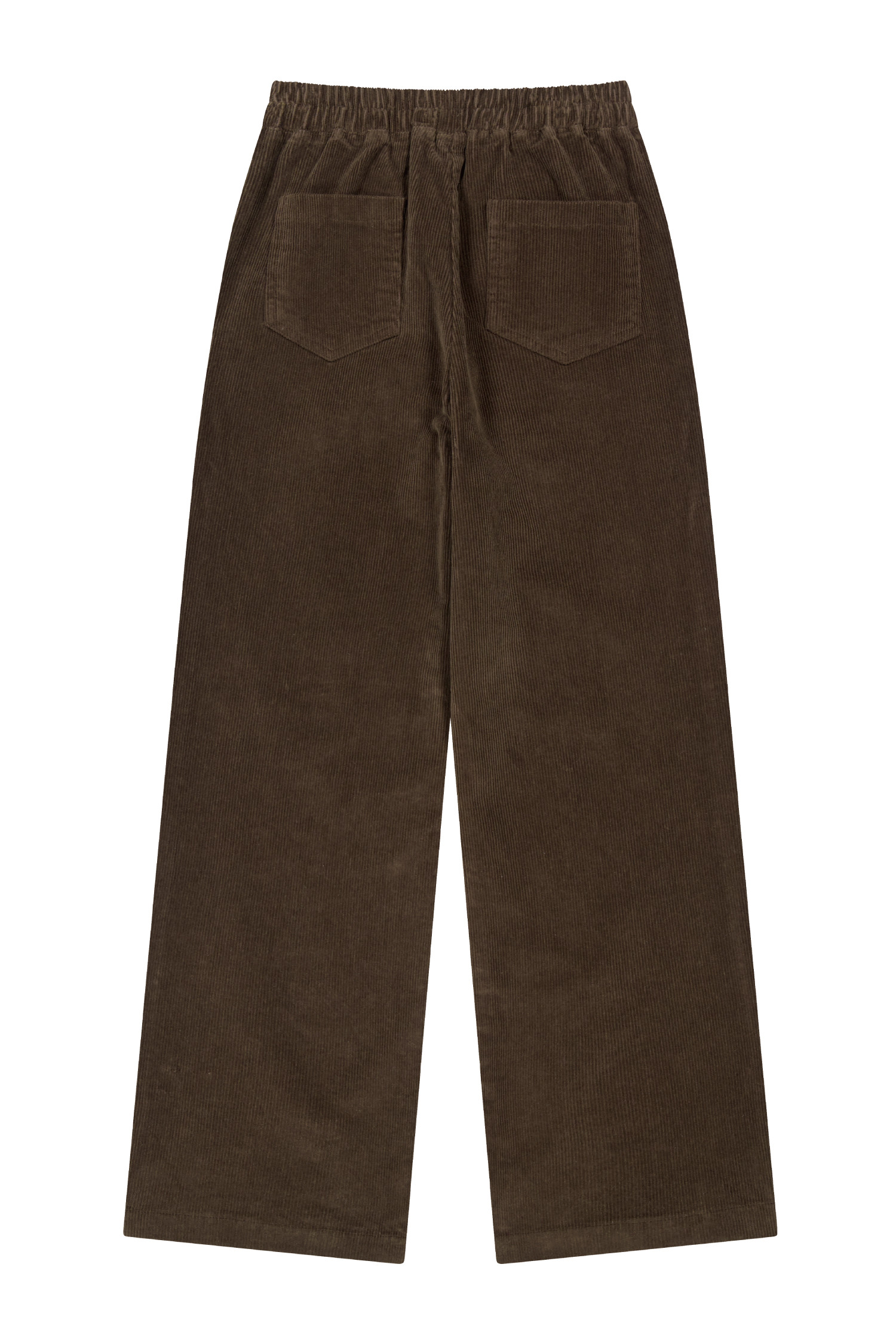 25FW 코듀로이 면 스판 일자 핏 허리 밴딩 포인트 스티치 브라운 8부 팬츠