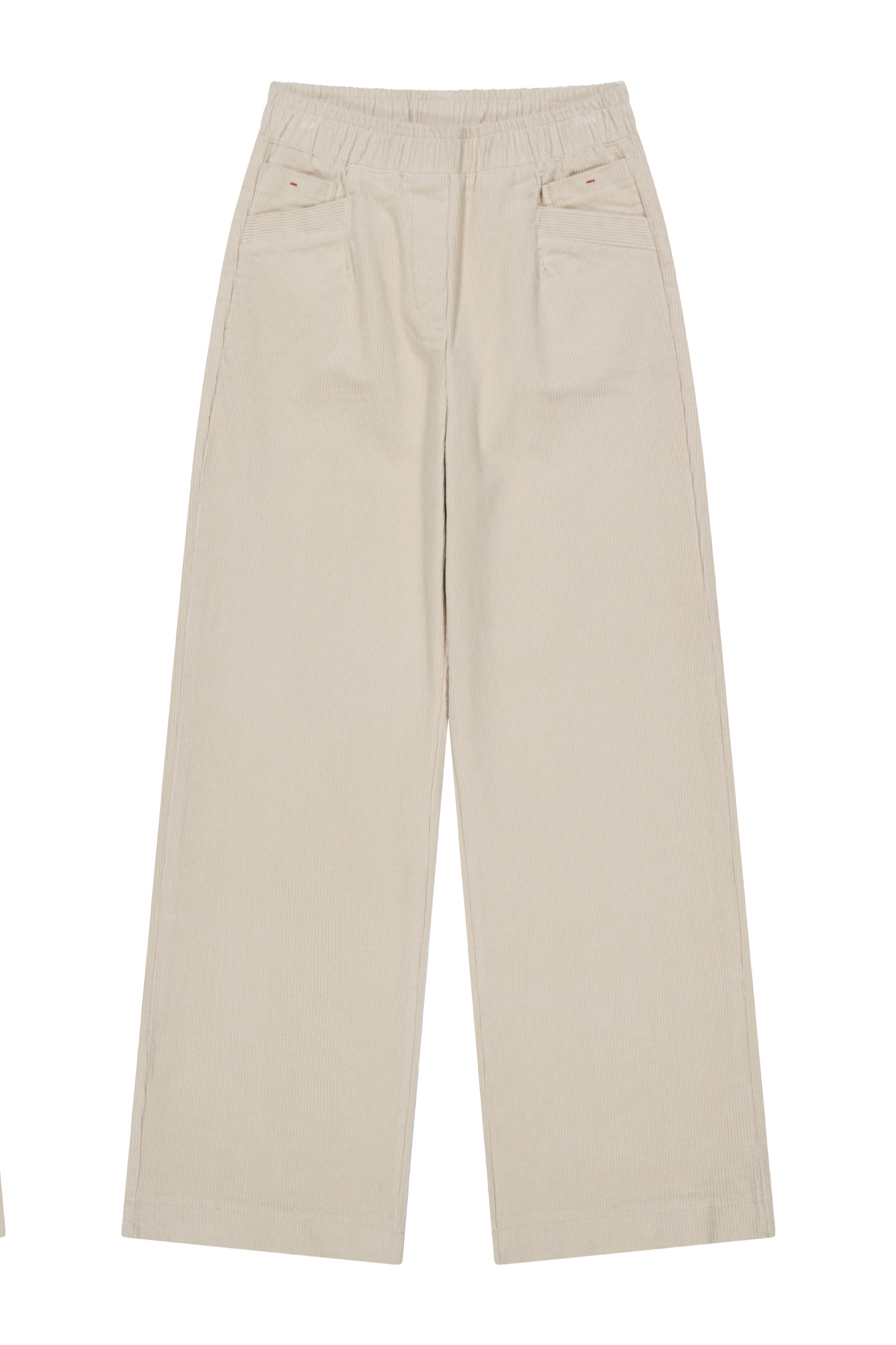 25FW 코듀로이 면 스판 일자 핏 허리 밴딩 포인트 스티치 아이보리 8부 팬츠