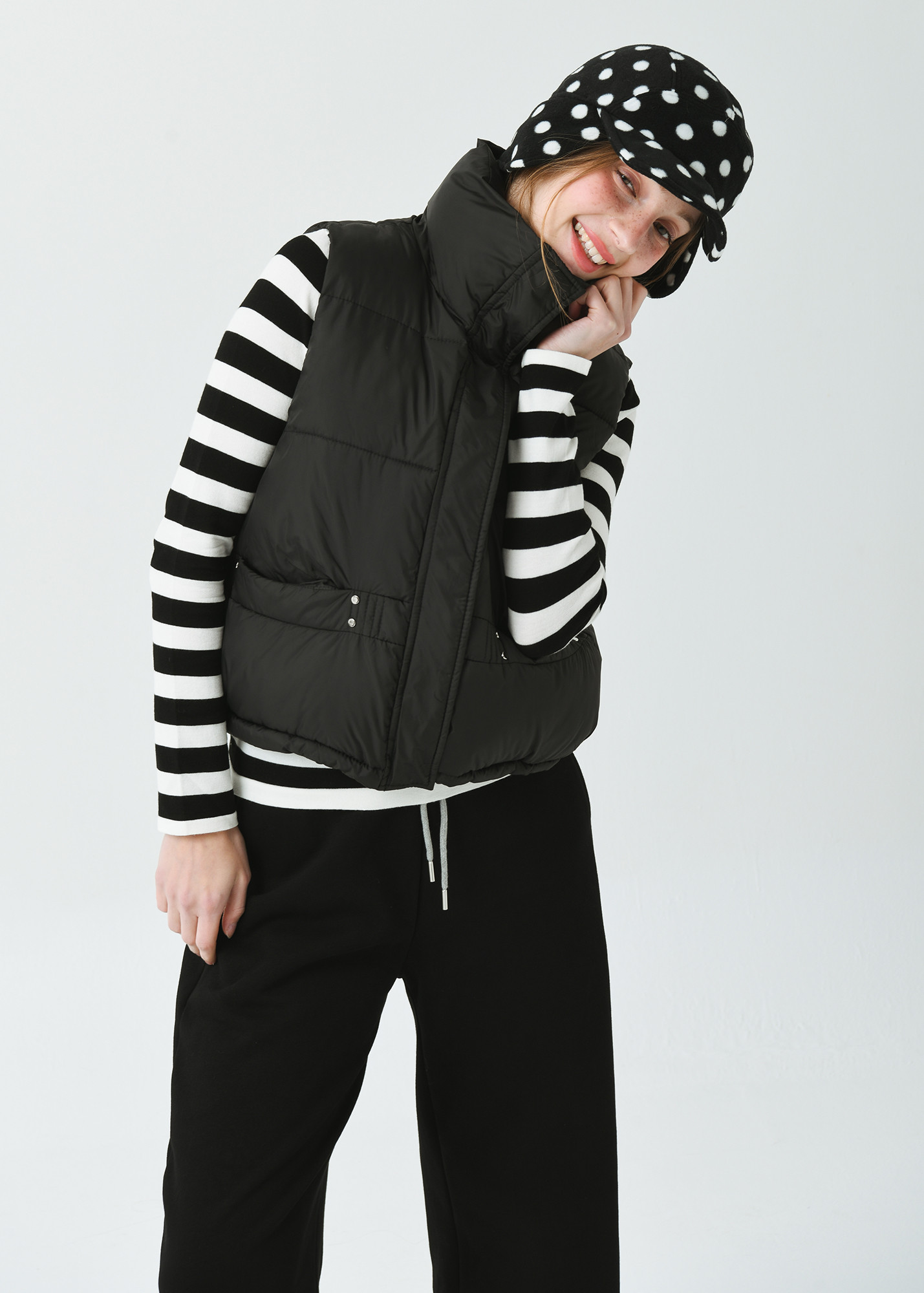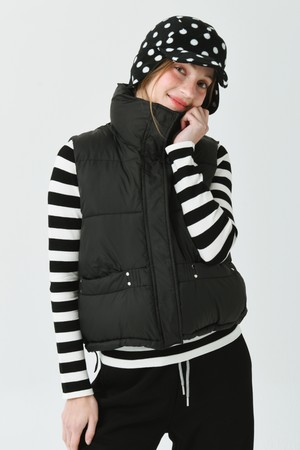 하이넥 카라 루즈 핏 블랙 패딩 베스트