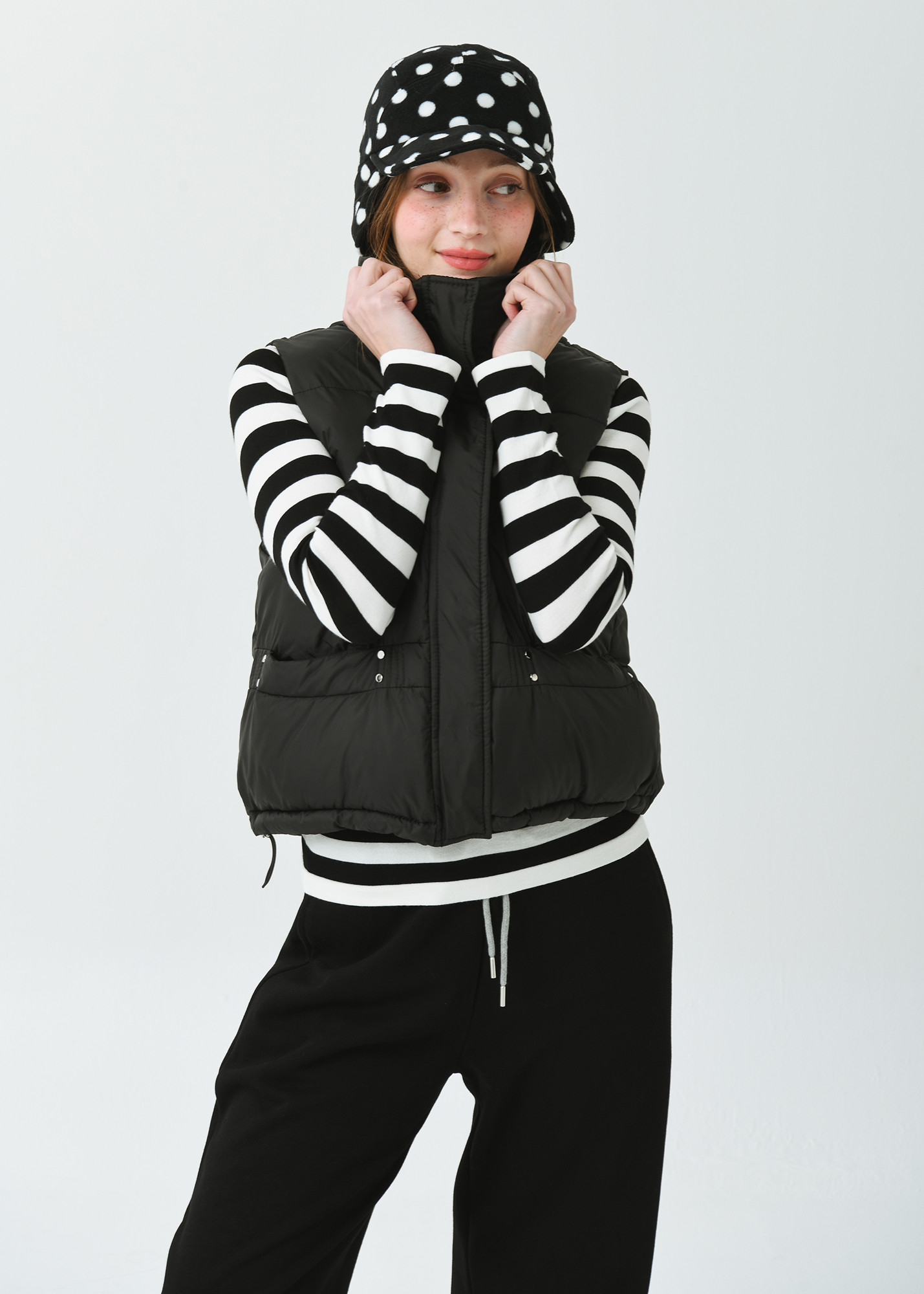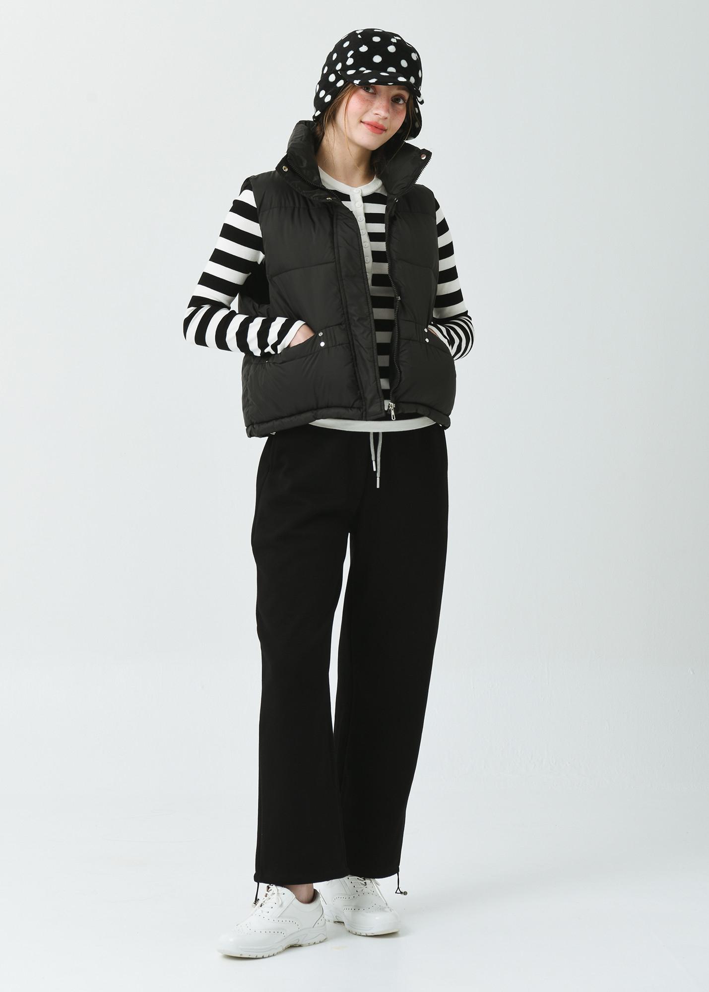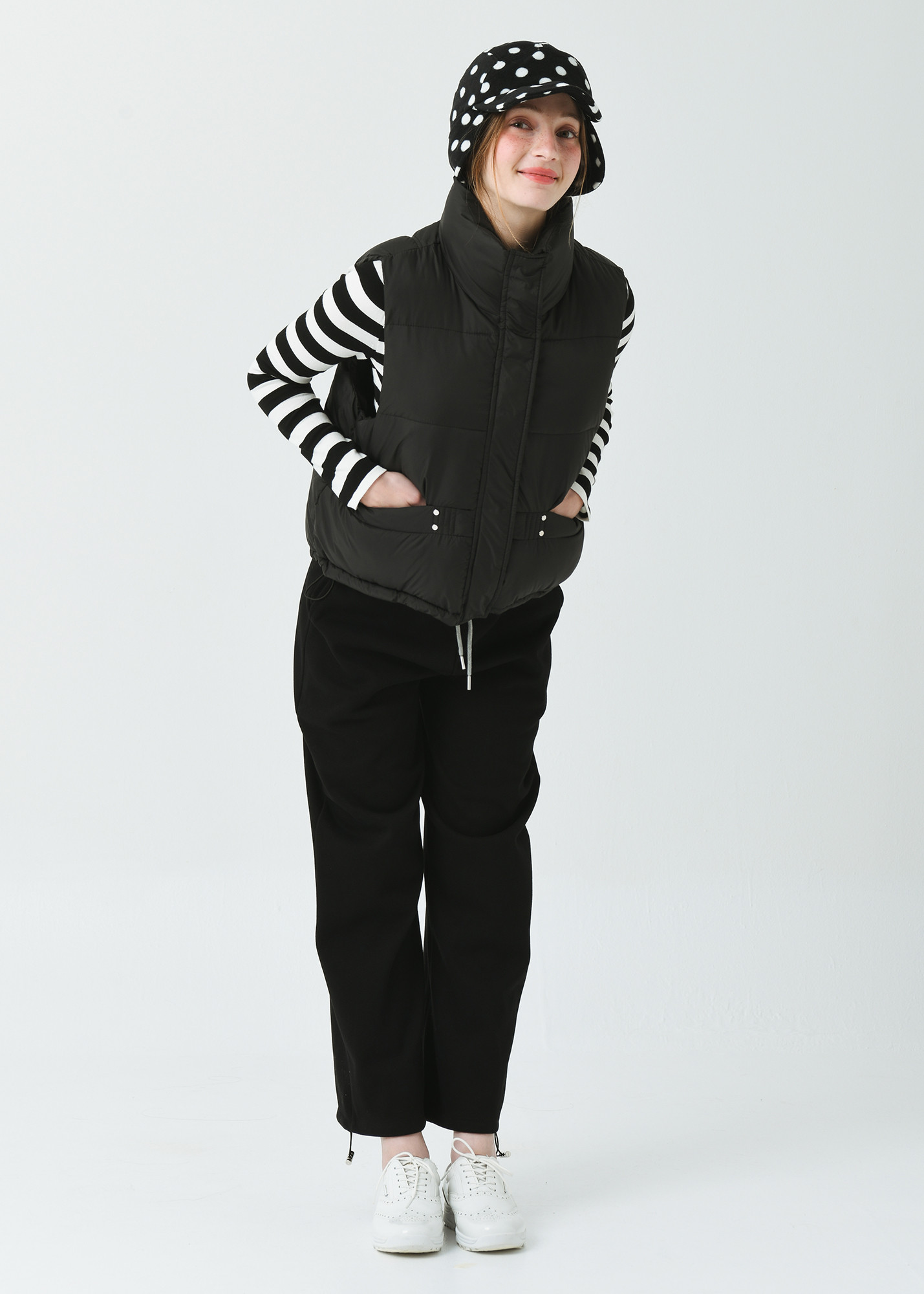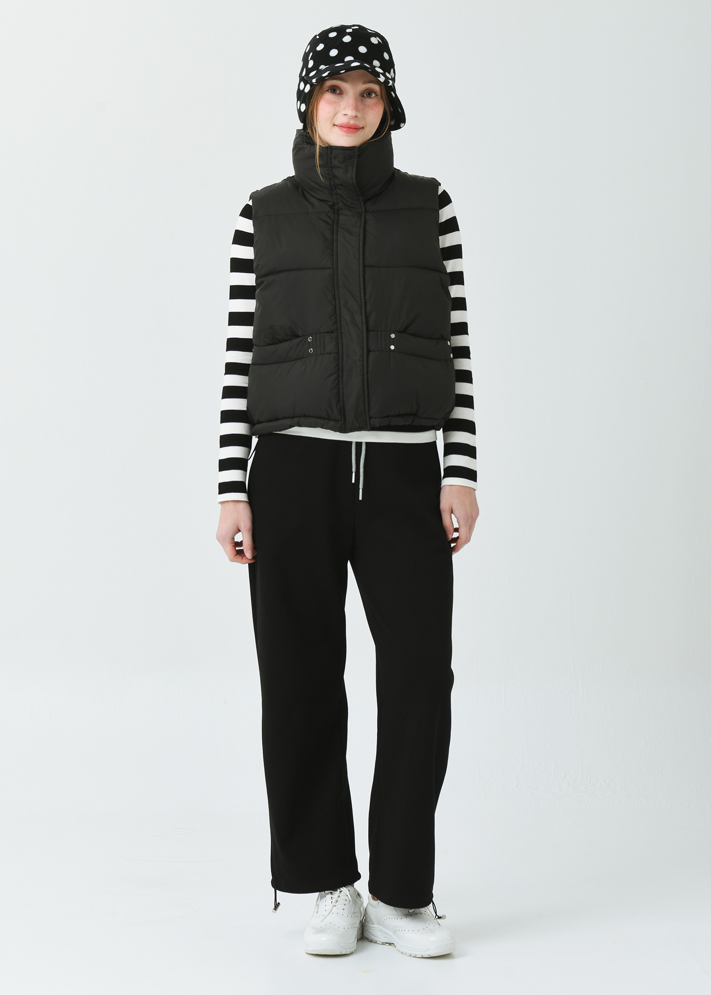 DETAIL:스포티한 감성의 기본형 하이넥 카라 헤비 패딩 베스트입니다.