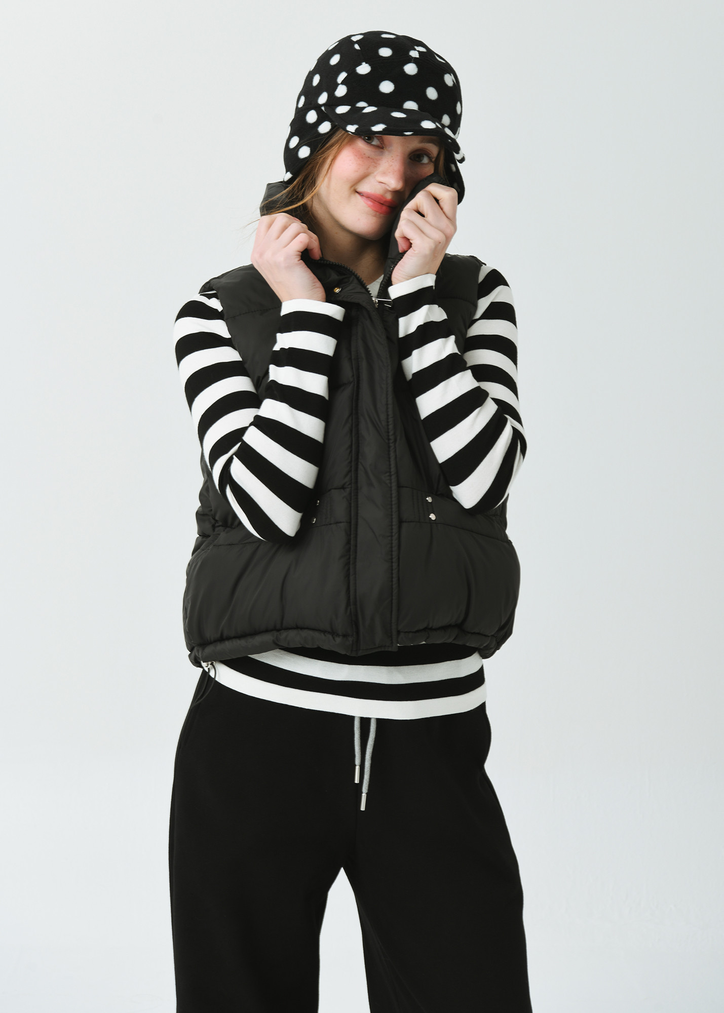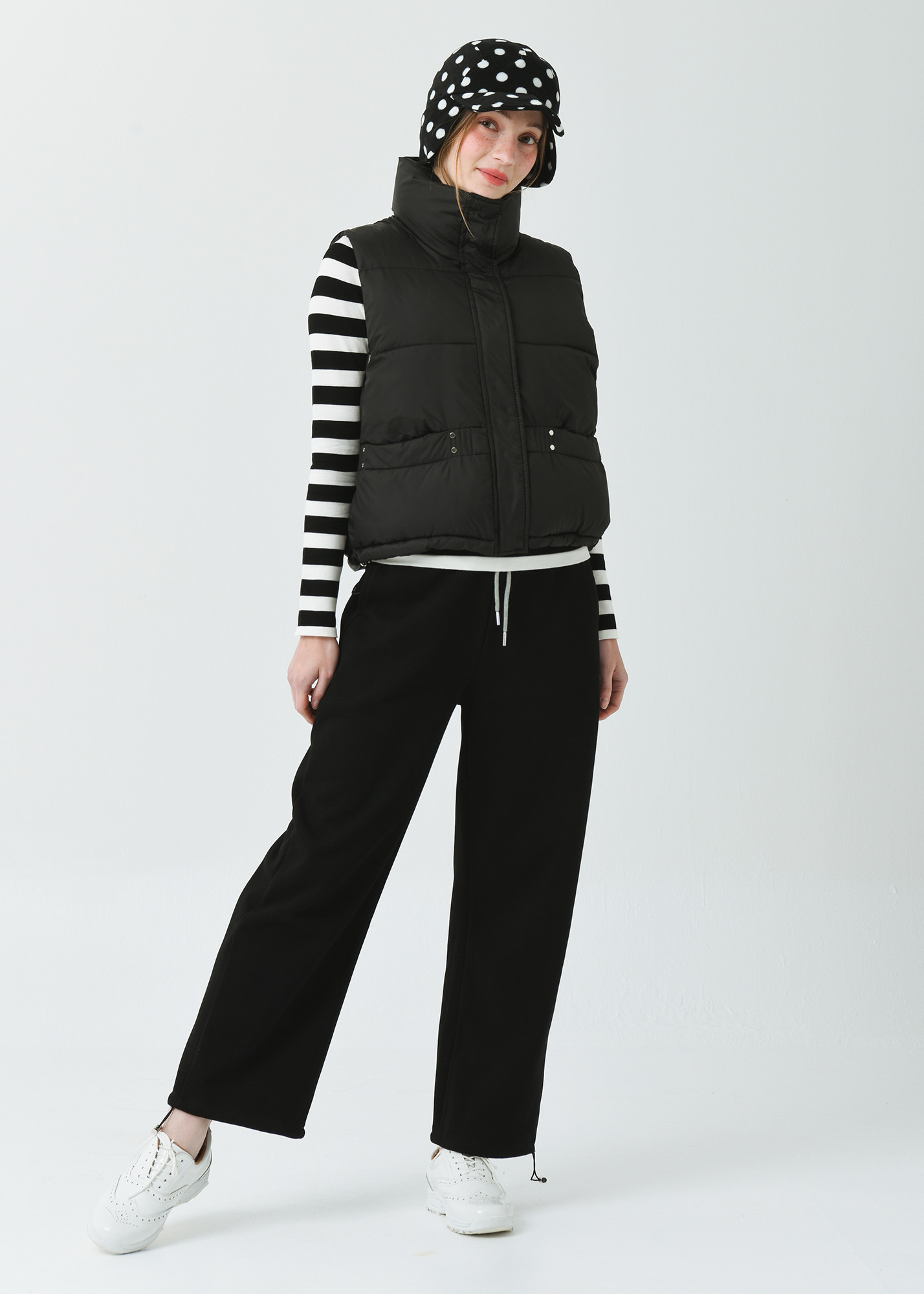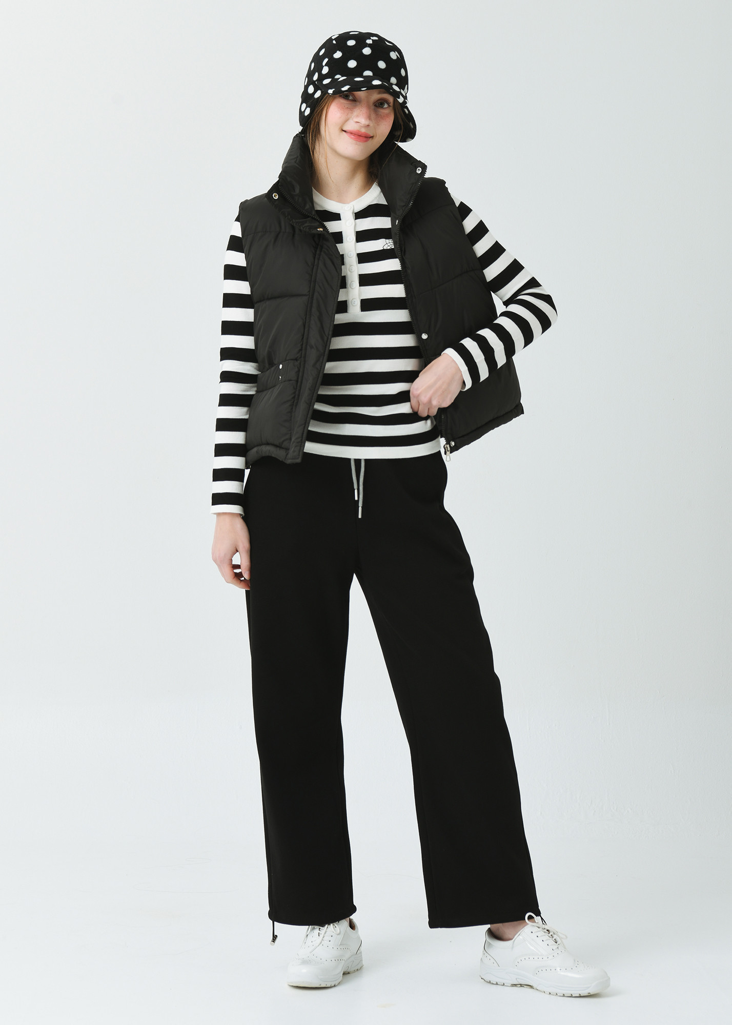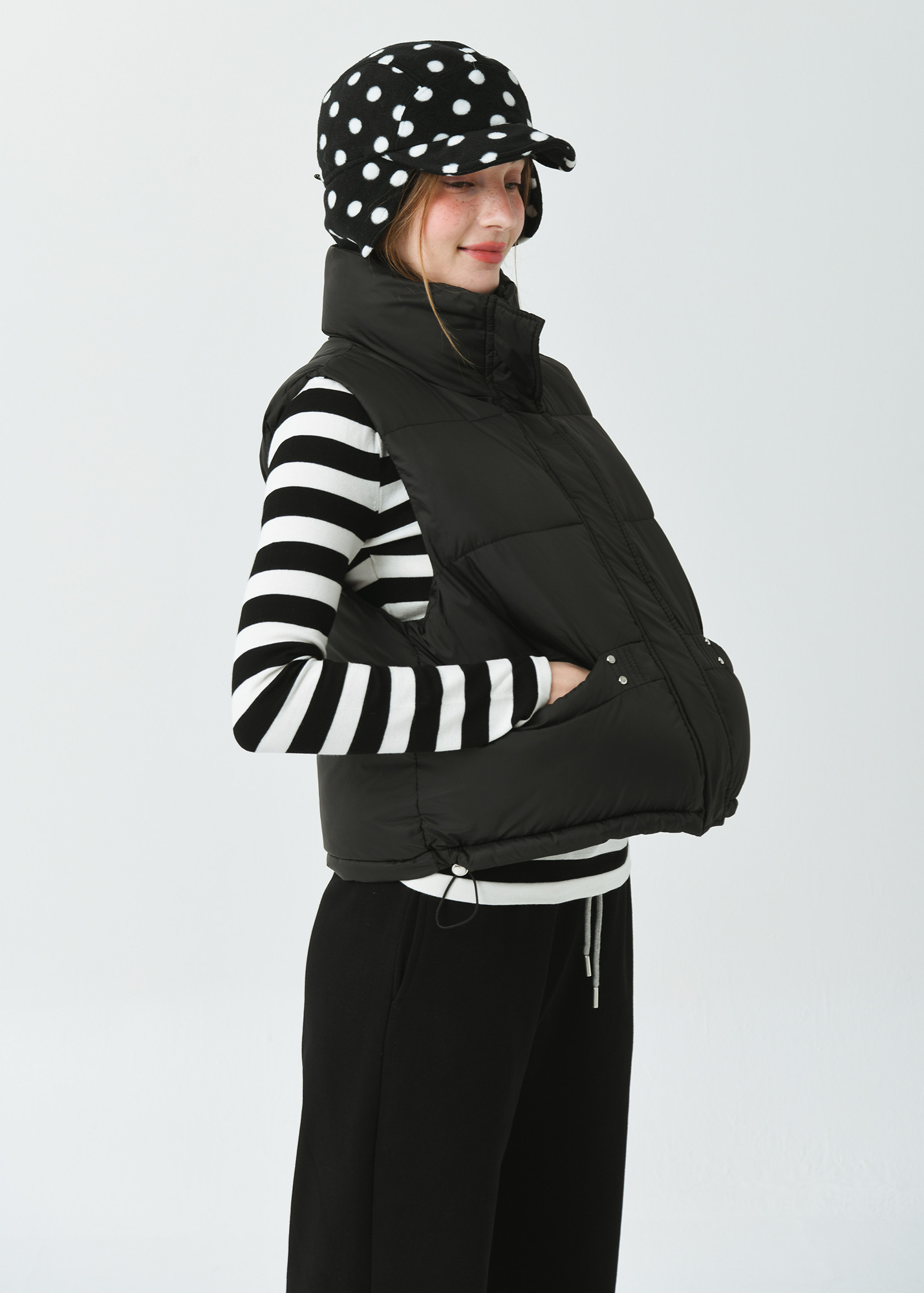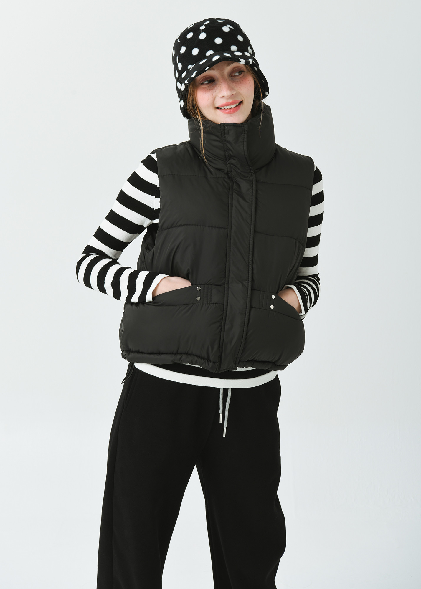 DETAIL:스포티한 감성의 기본형 하이넥 카라 헤비 패딩 베스트입니다.