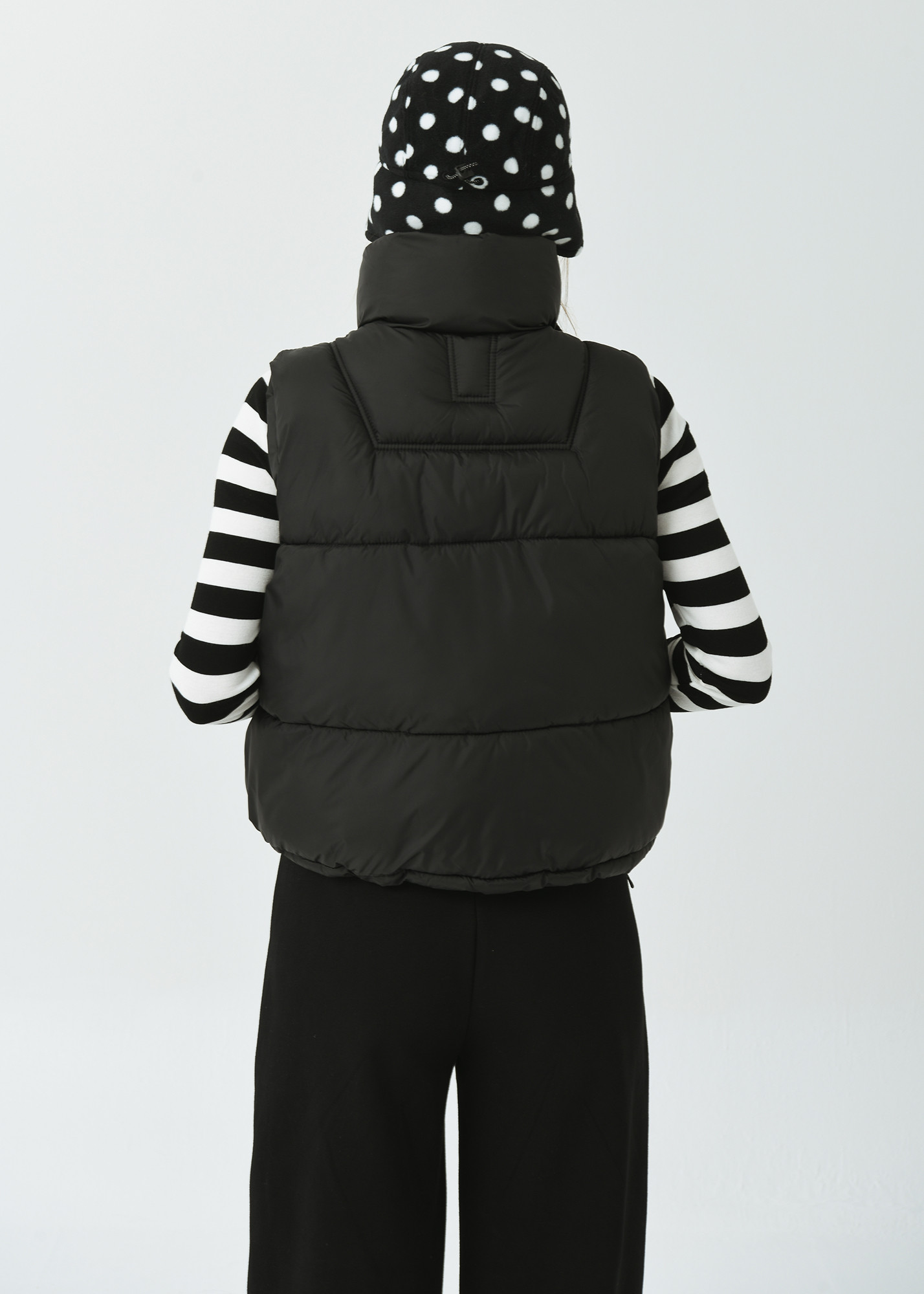 25FW 하이넥 카라 루즈 핏 블랙 패딩 베스트