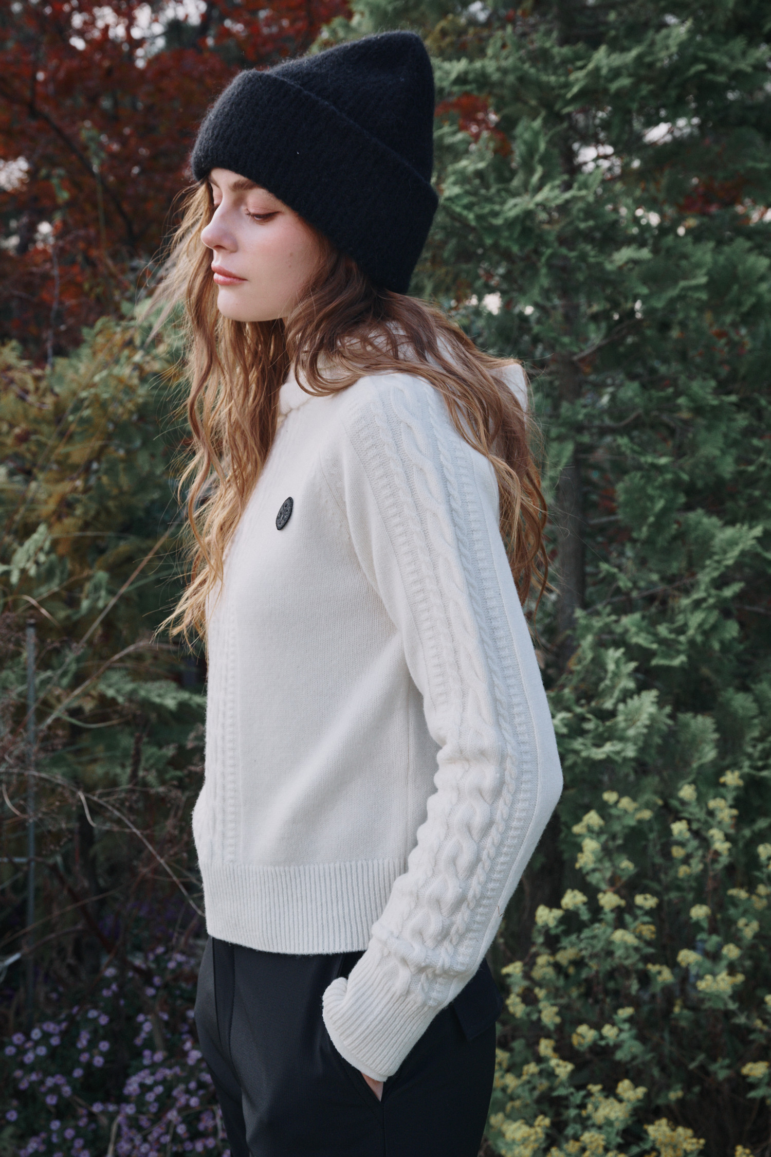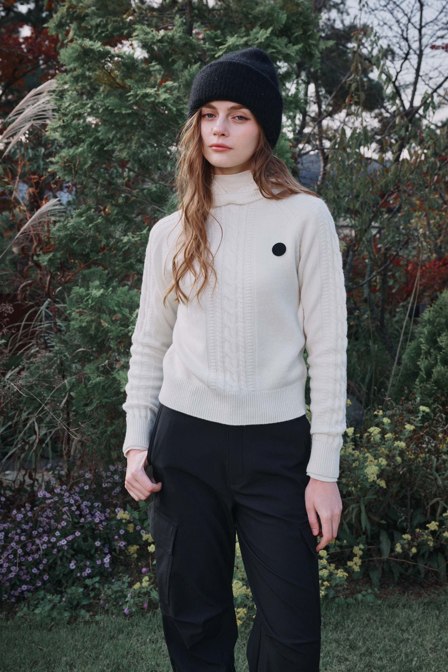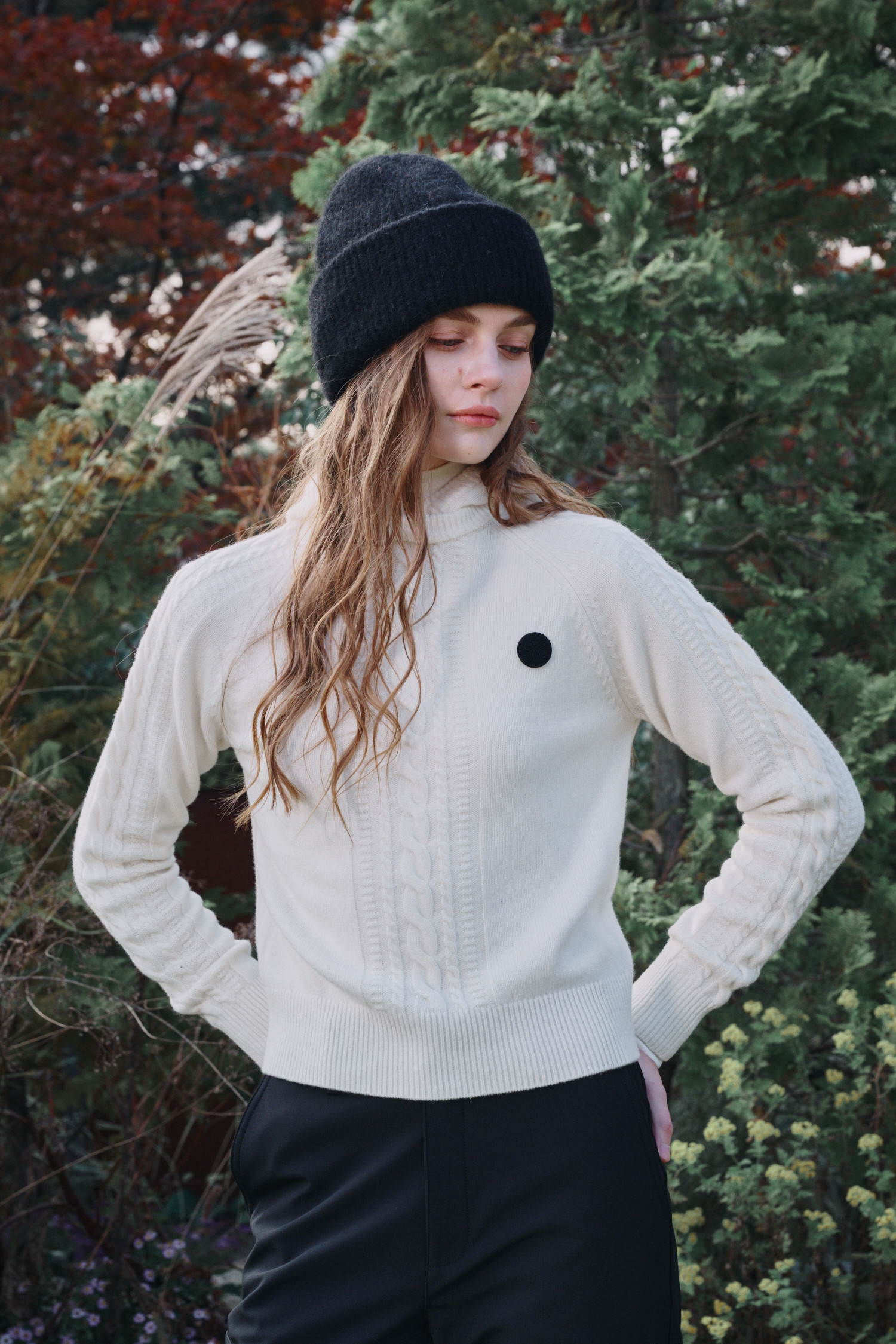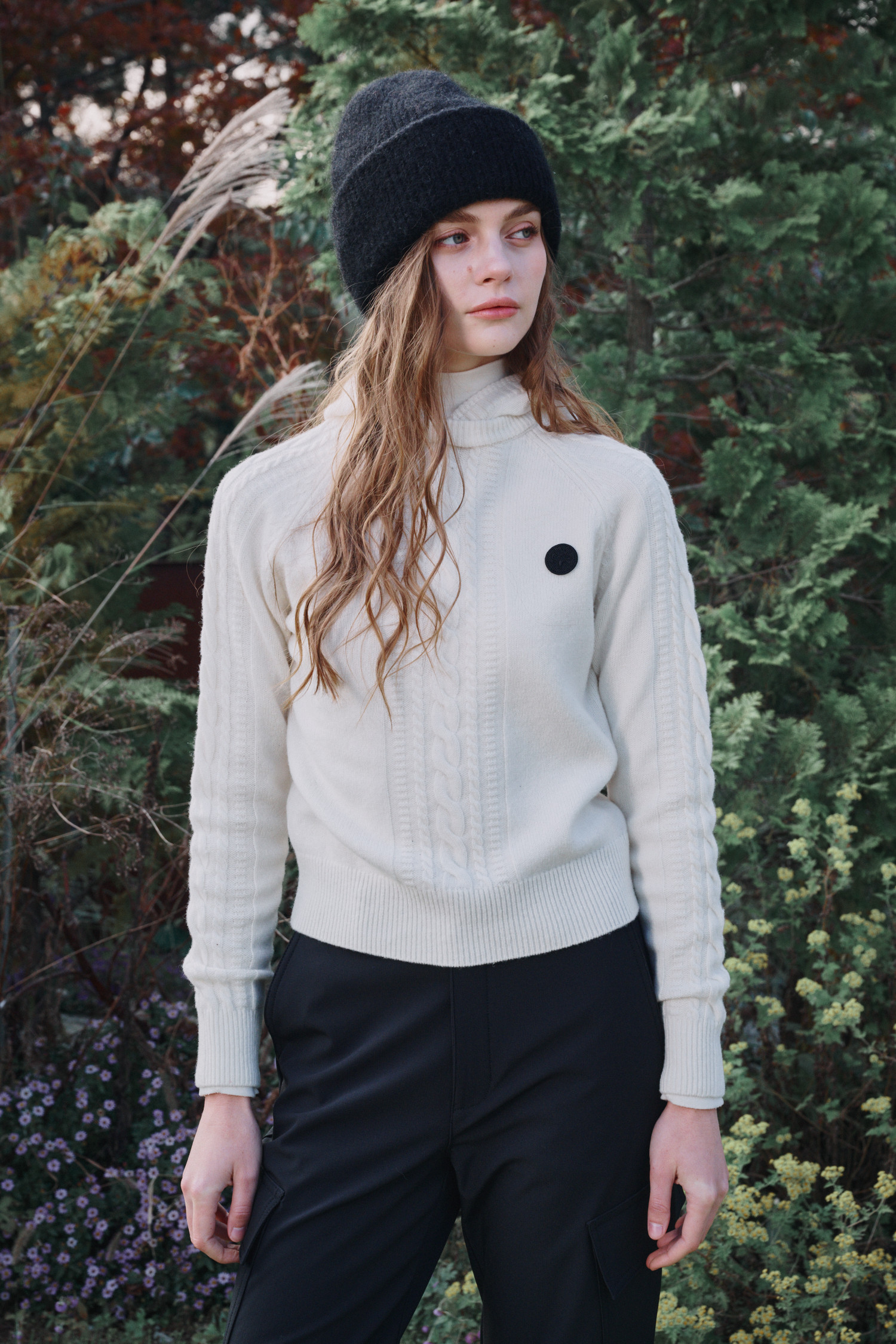 변형된 케이블 조직이 멋스러운 아이템입니다