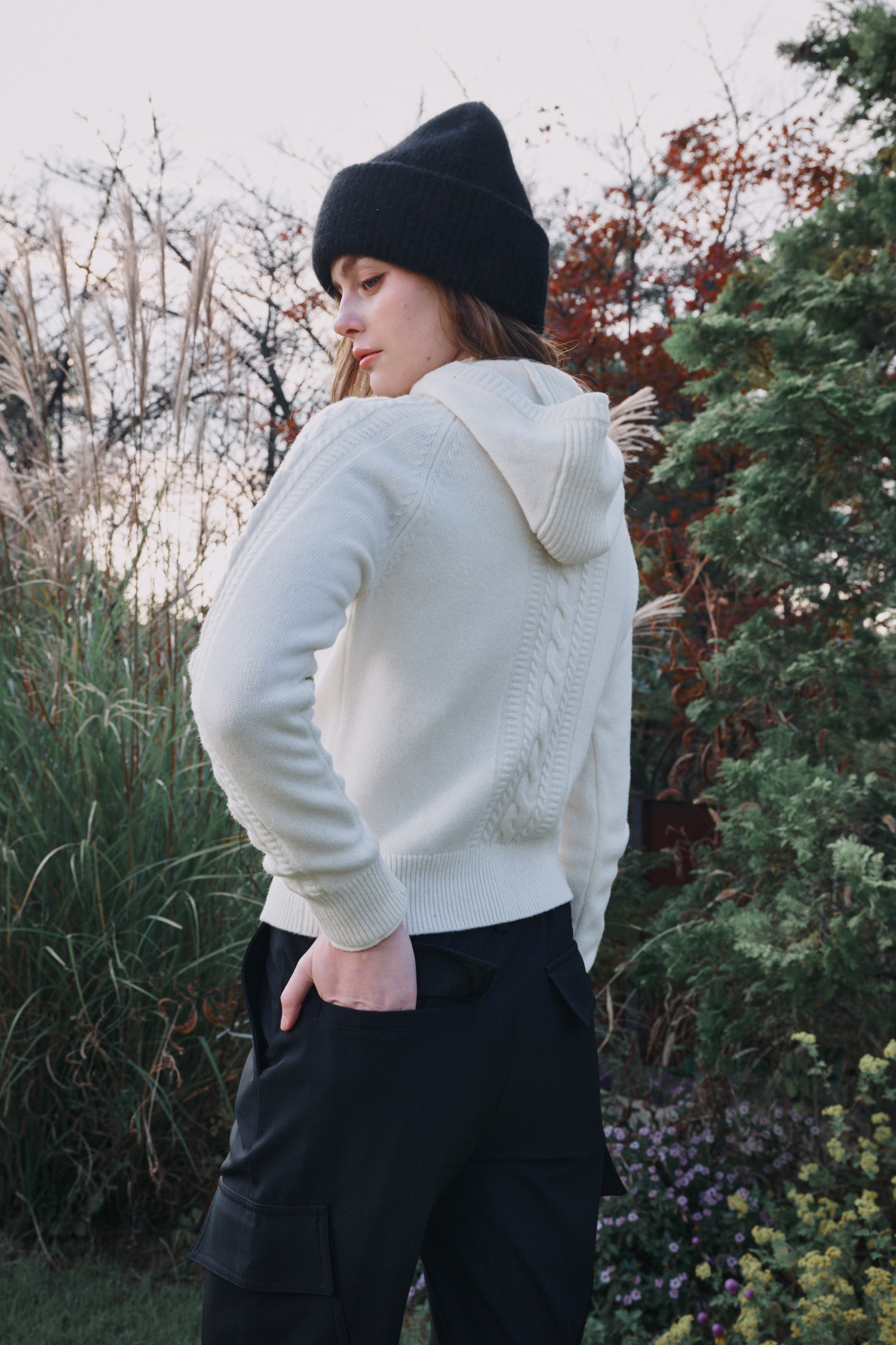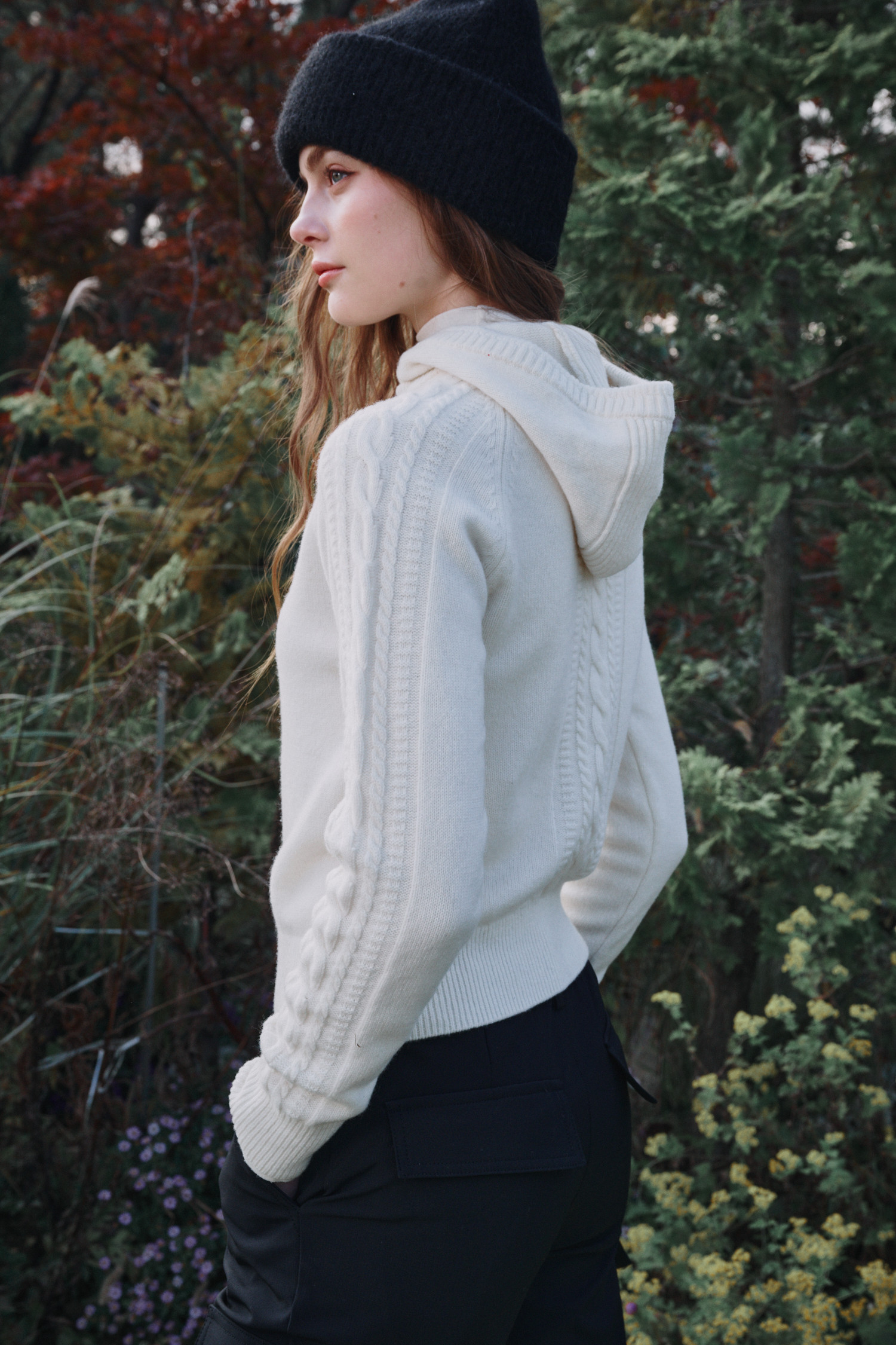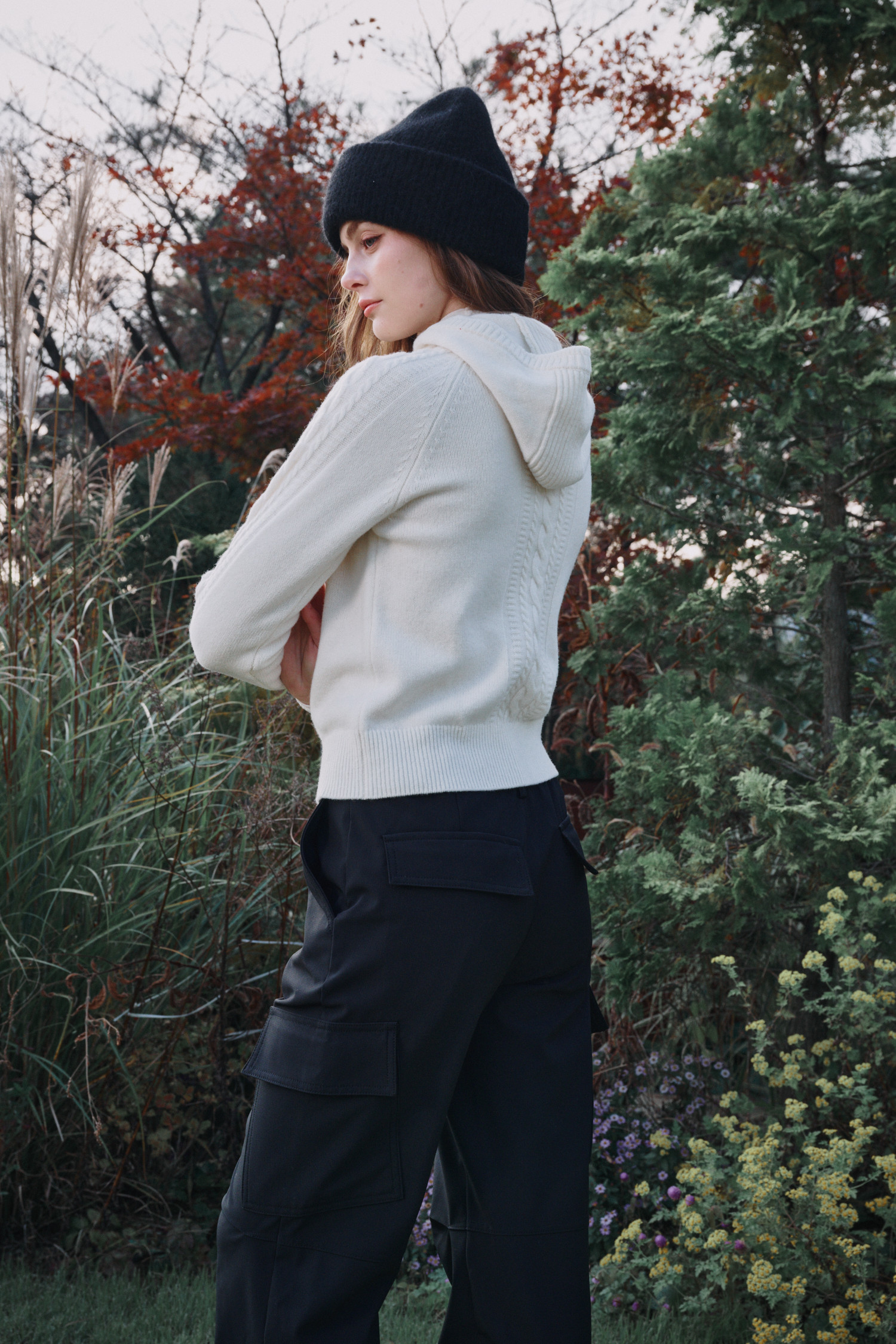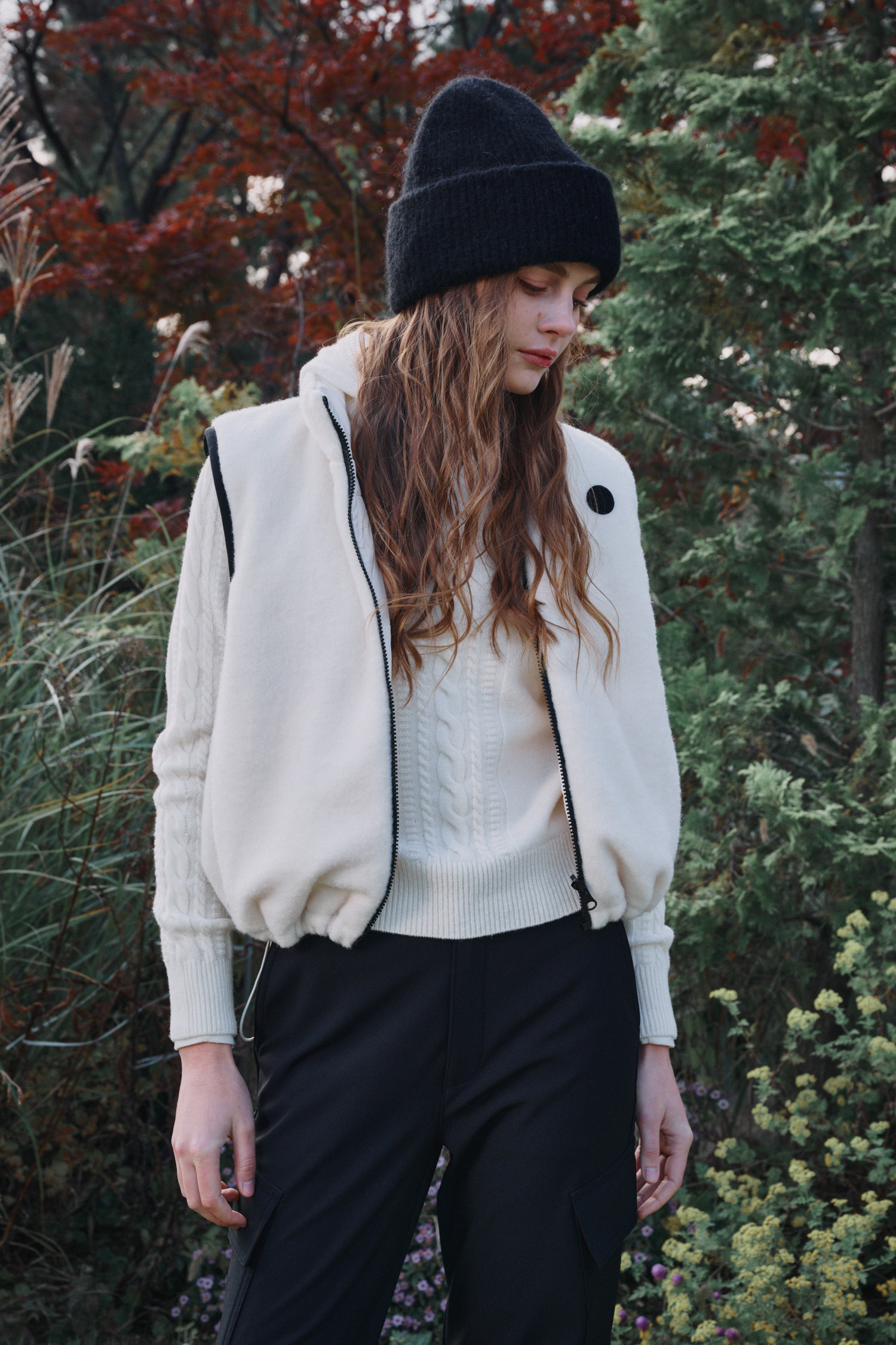 변형된 케이블 조직이 멋스러운 아이템입니다