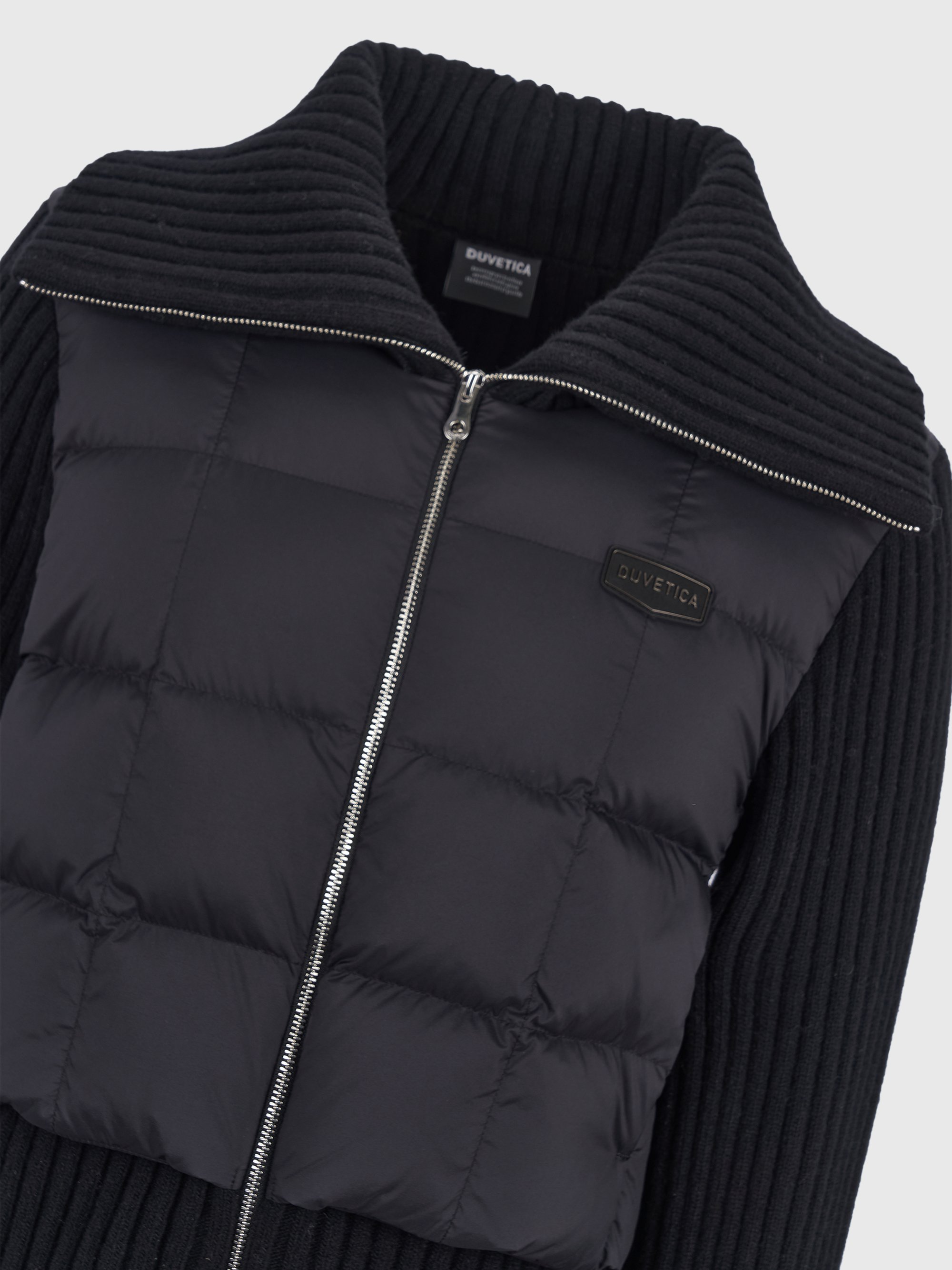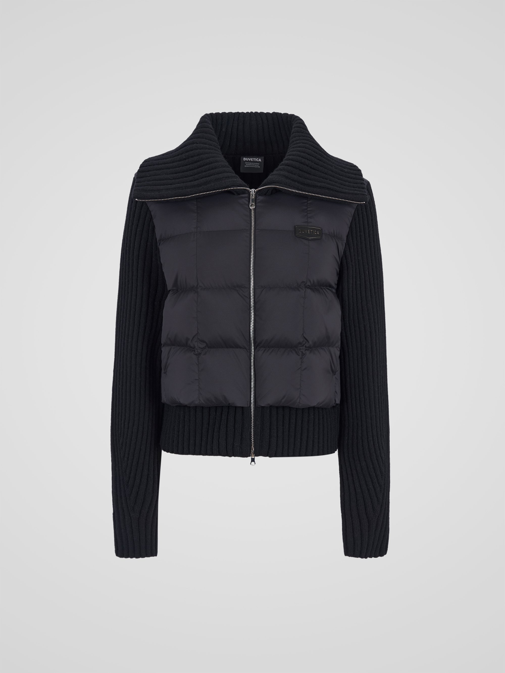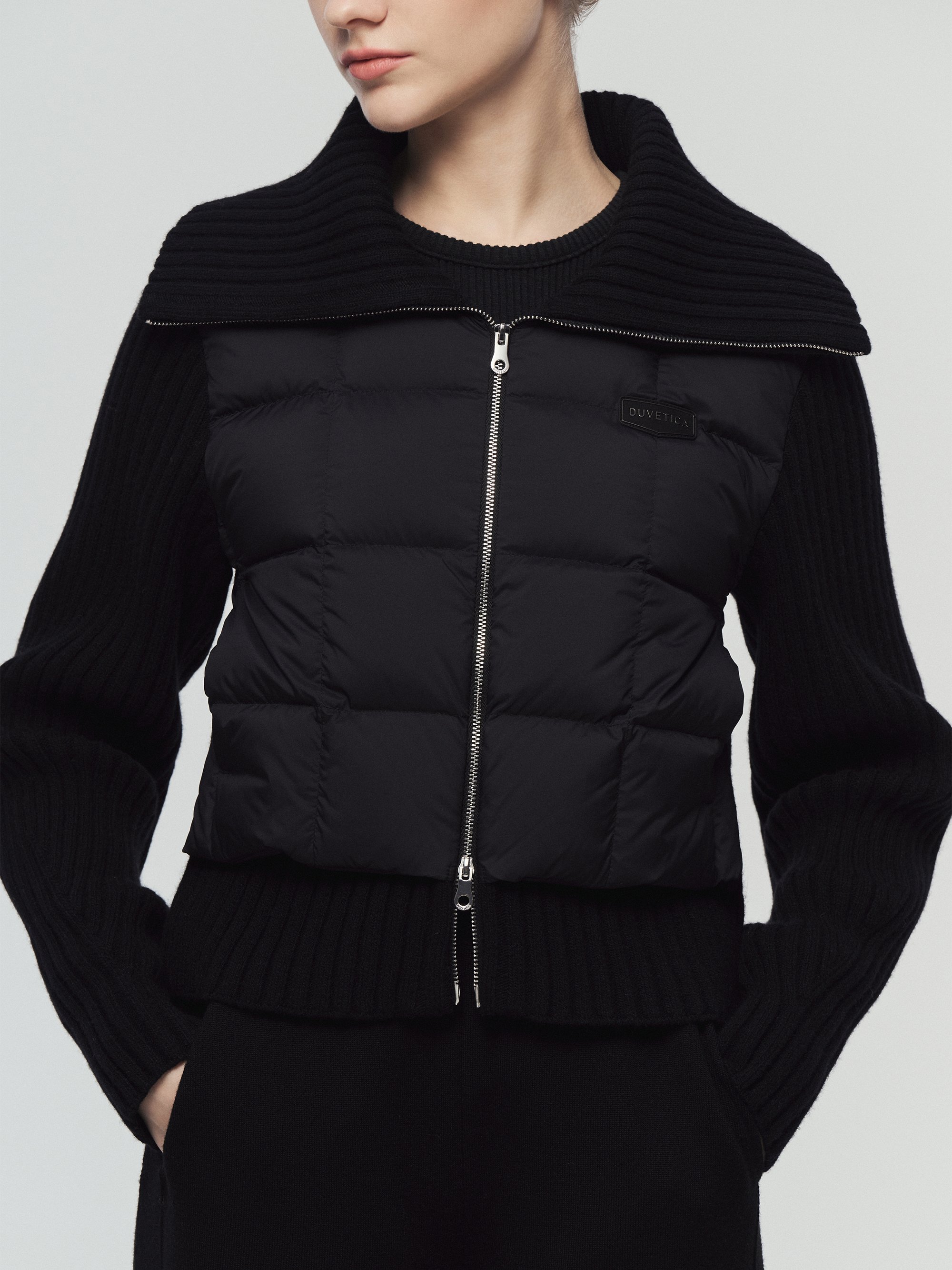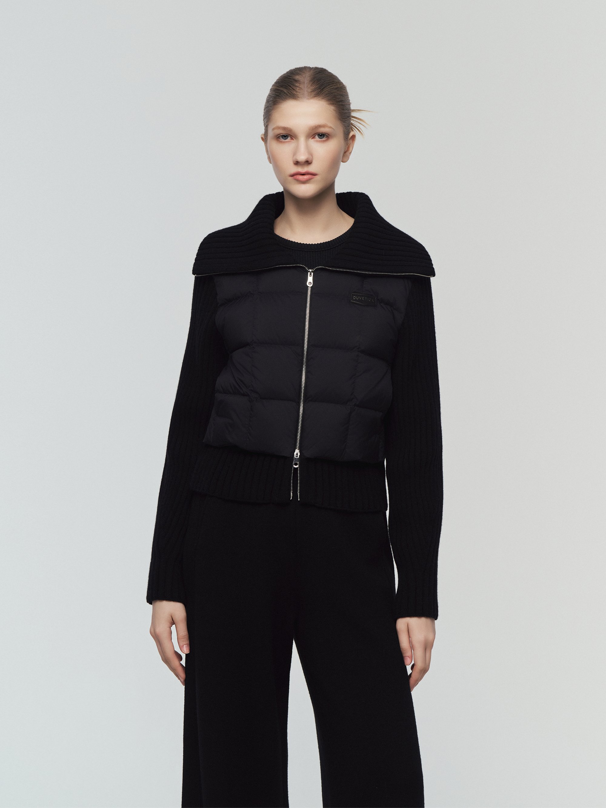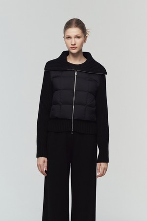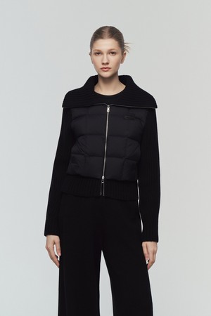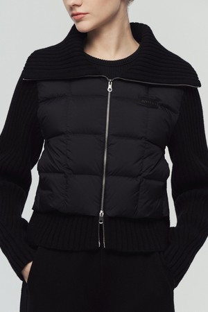 - 크롭 기장의 퀼팅 카라넥 하이브리드 다운 집업