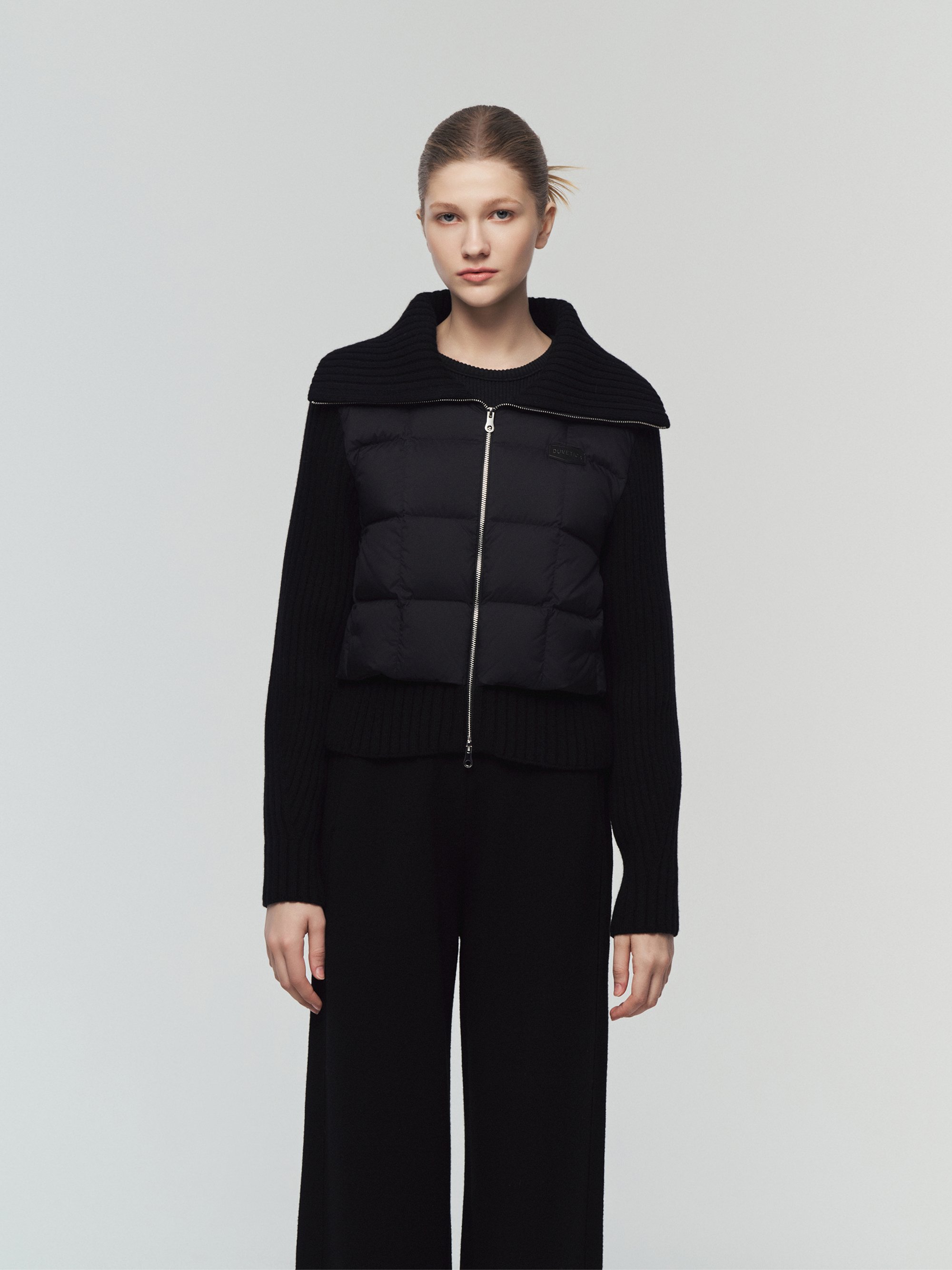 - 몸 앞판 퀼팅과 후면/슬리브 니트 배색으로 캐주얼하면서 세련된 무드 연출함