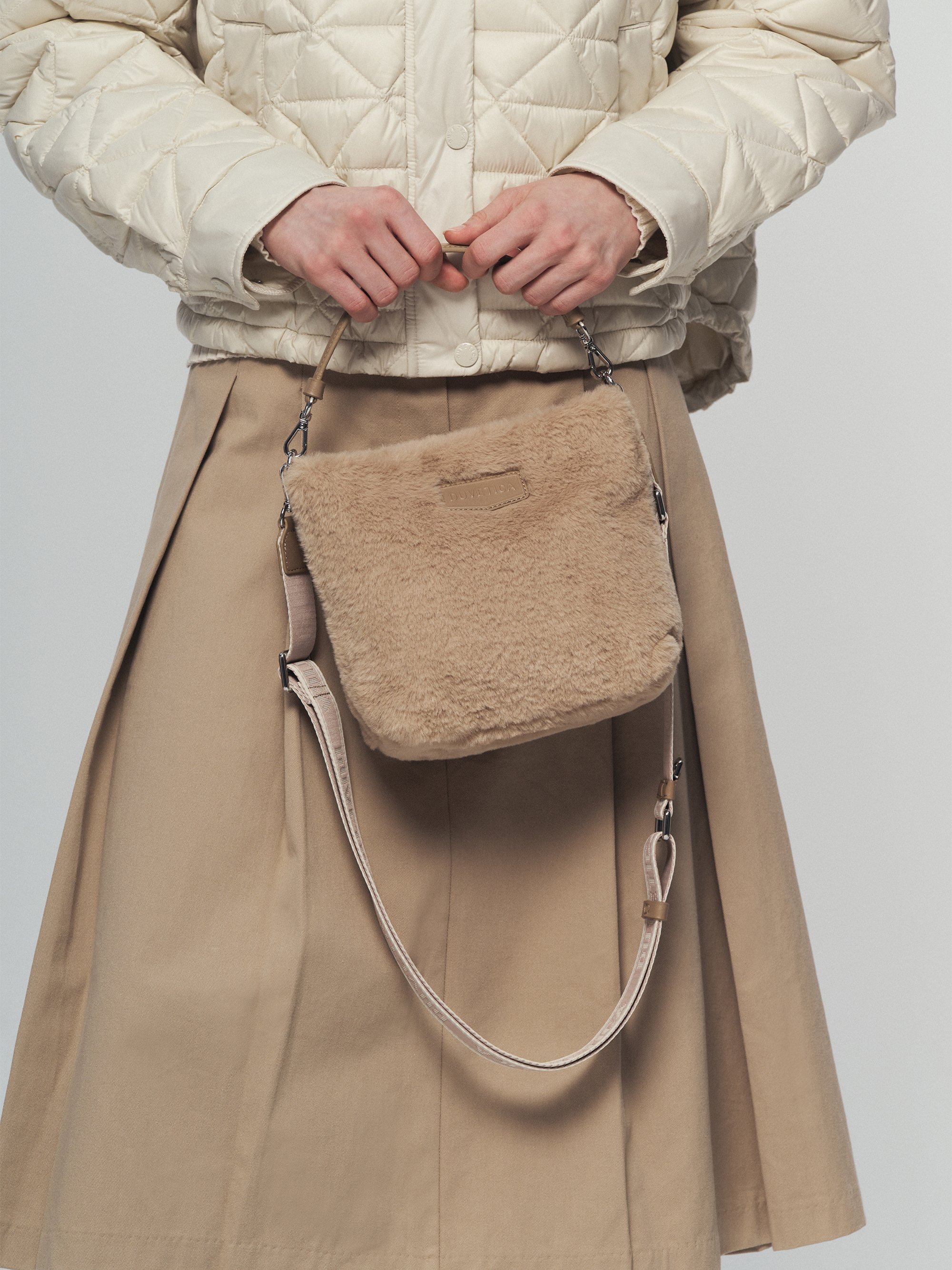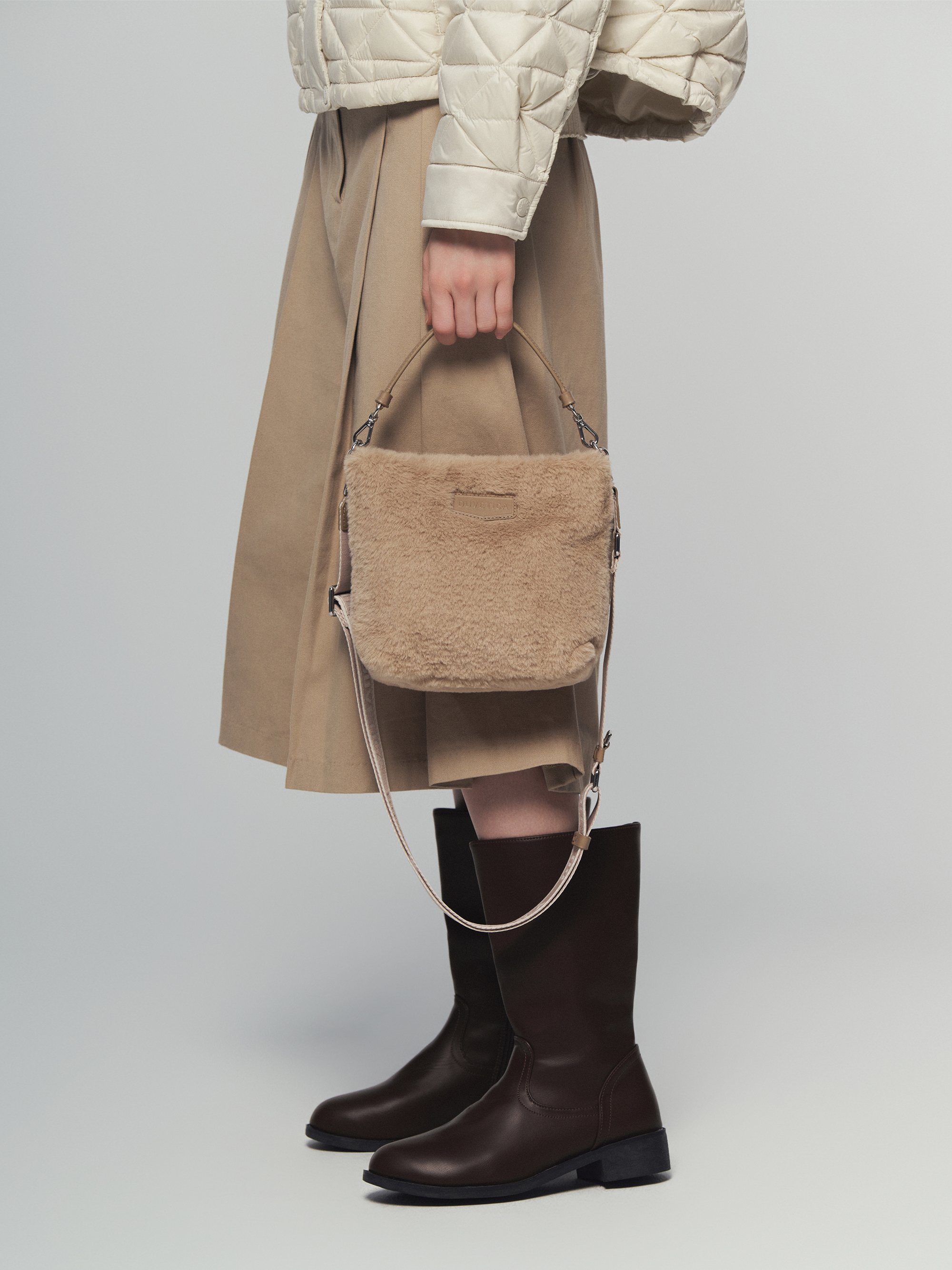 - 부드럽고 포근한 텍스처의 에코퍼 소재로 제작된 스몰 스퀘어 백