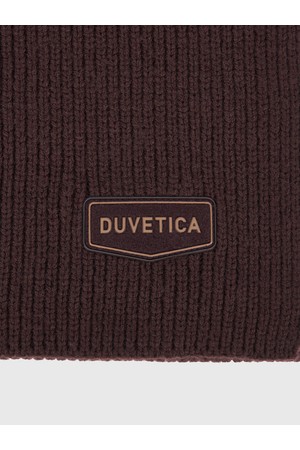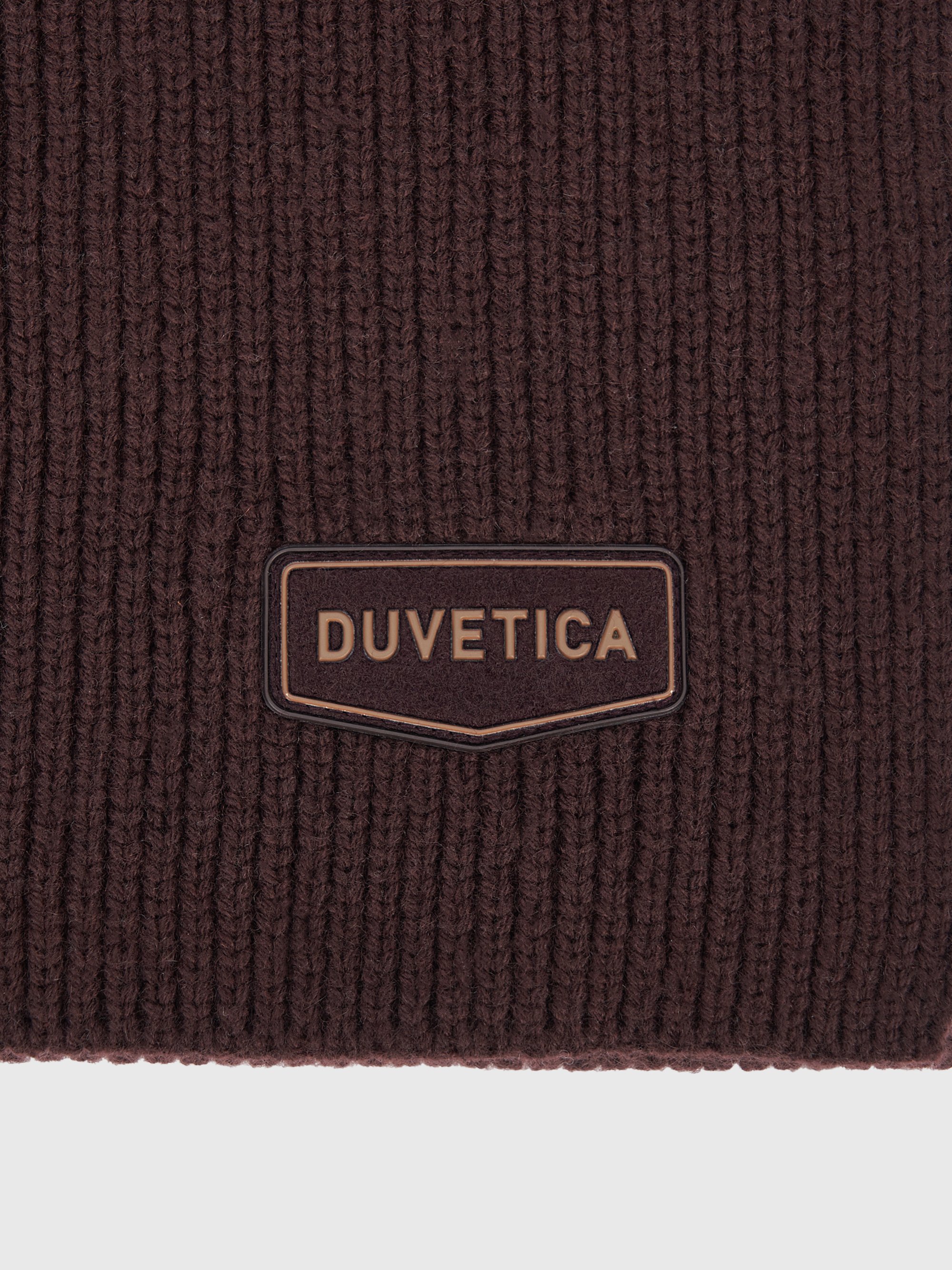 - 끝단에 위치한 톤온톤 DUVETICA 오각로고 와펜으로 브랜딩 포인트 강조
