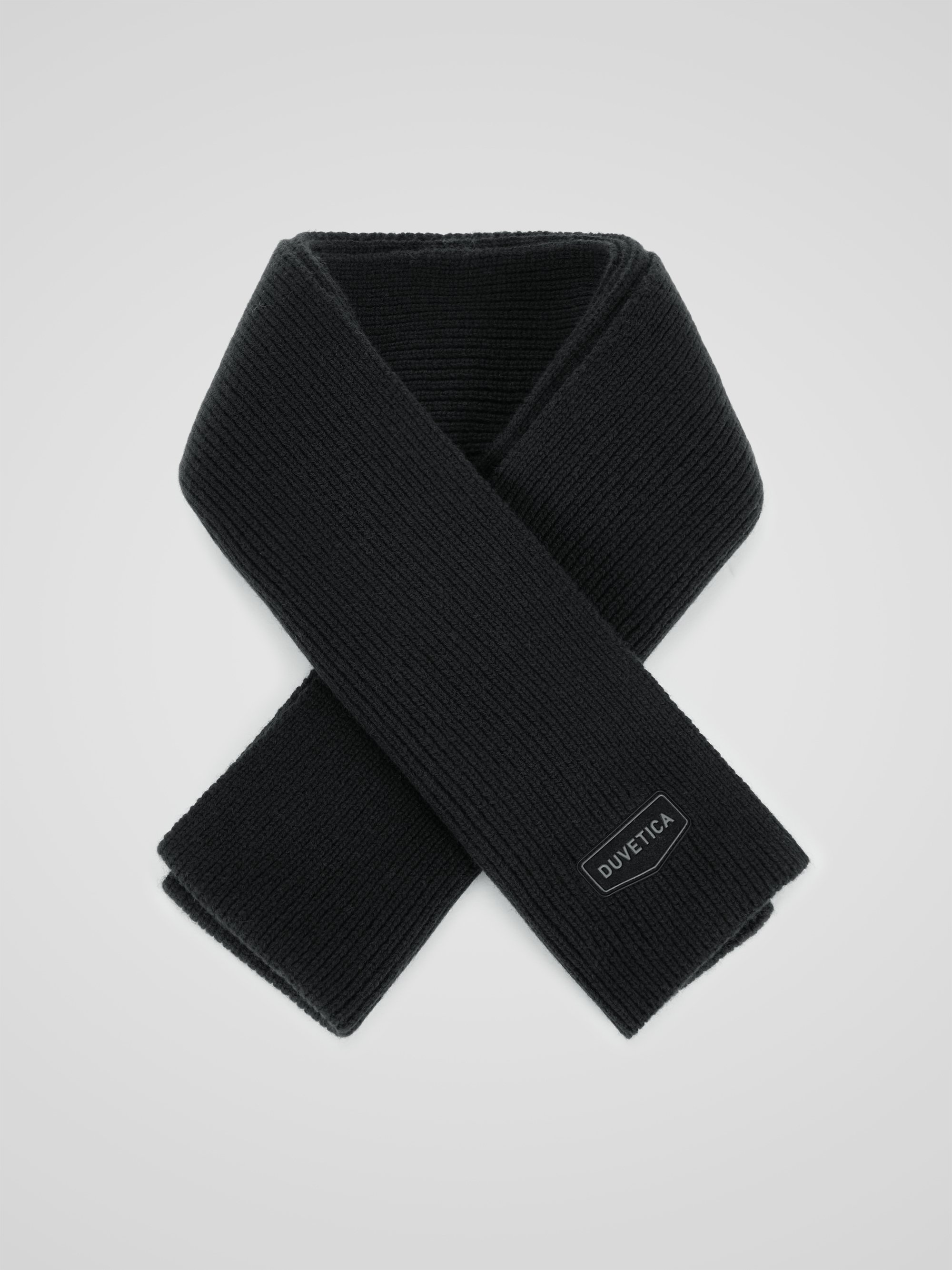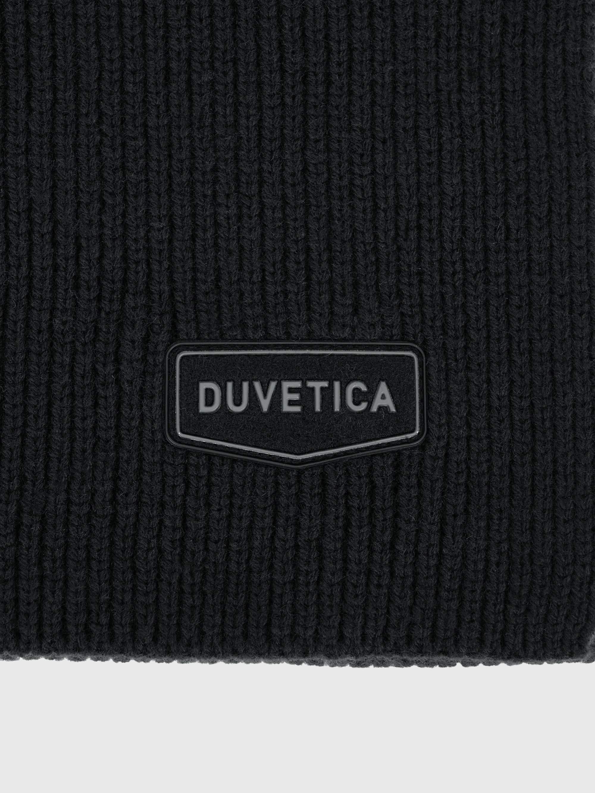 - 끝단에 위치한 톤온톤 DUVETICA 오각로고 와펜으로 브랜딩 포인트 강조
