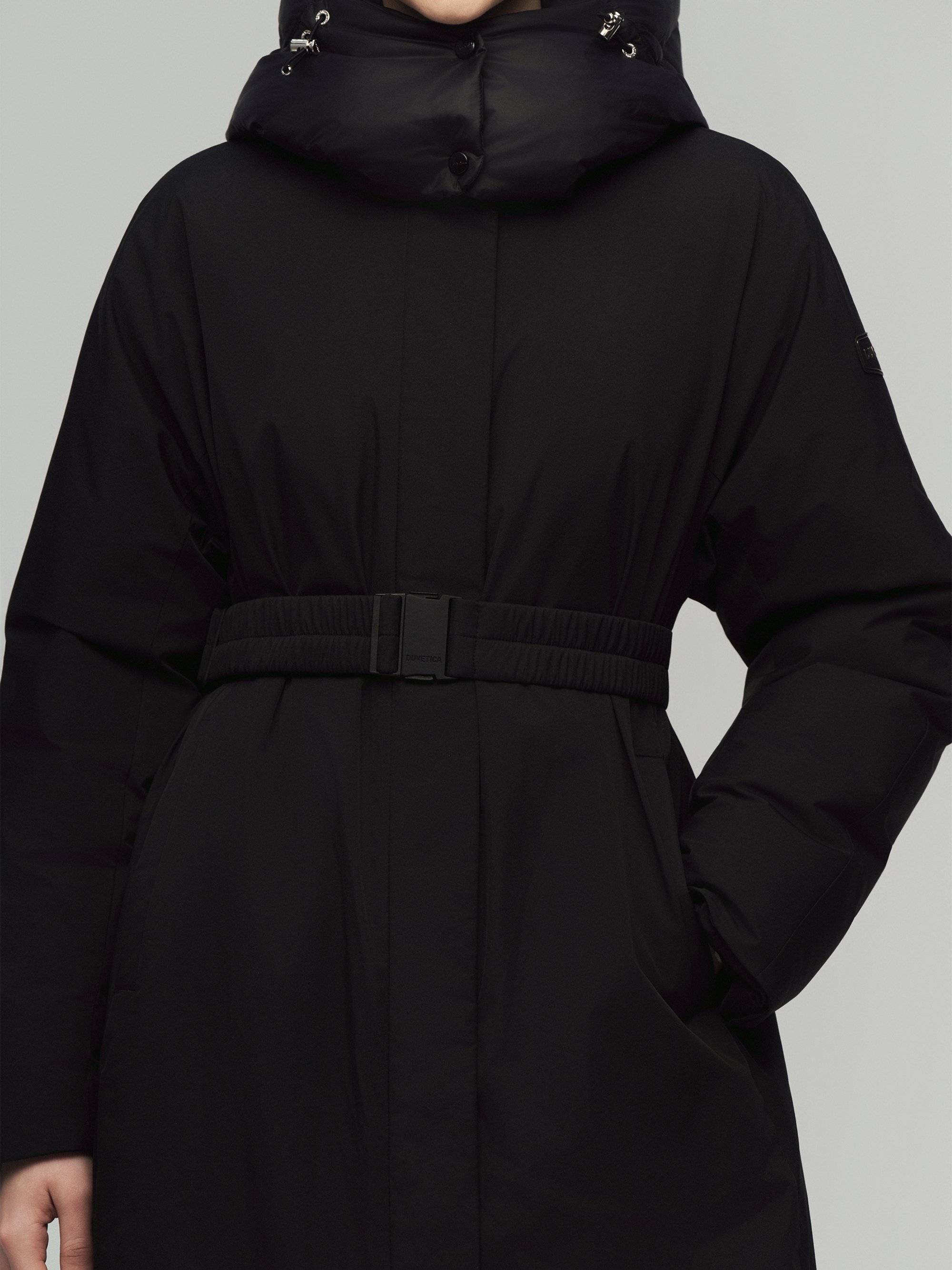 - 듀베티카 시그니처 글로시 소재 탈부착 후드로 고급스러운 포인트 더함