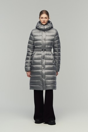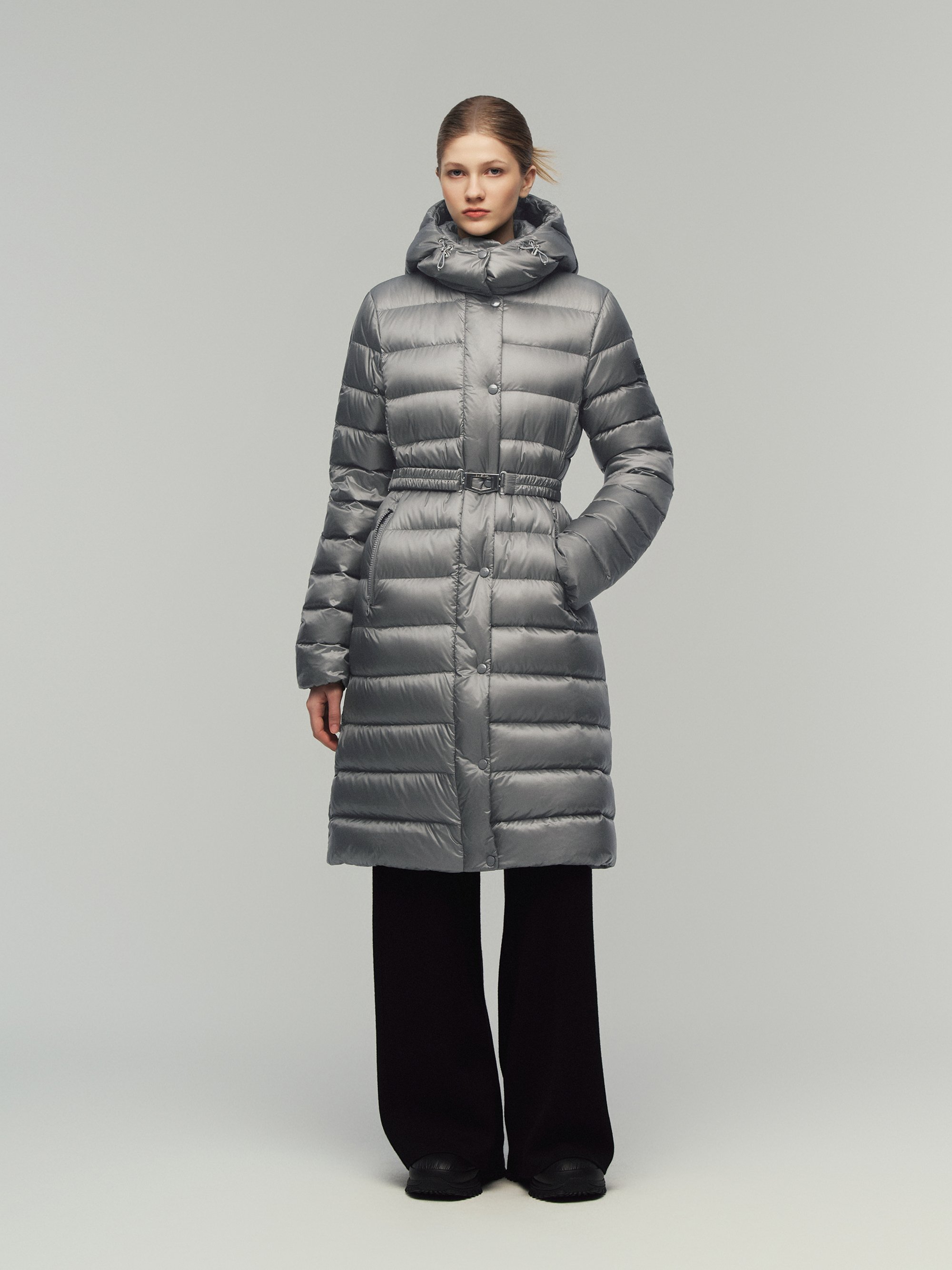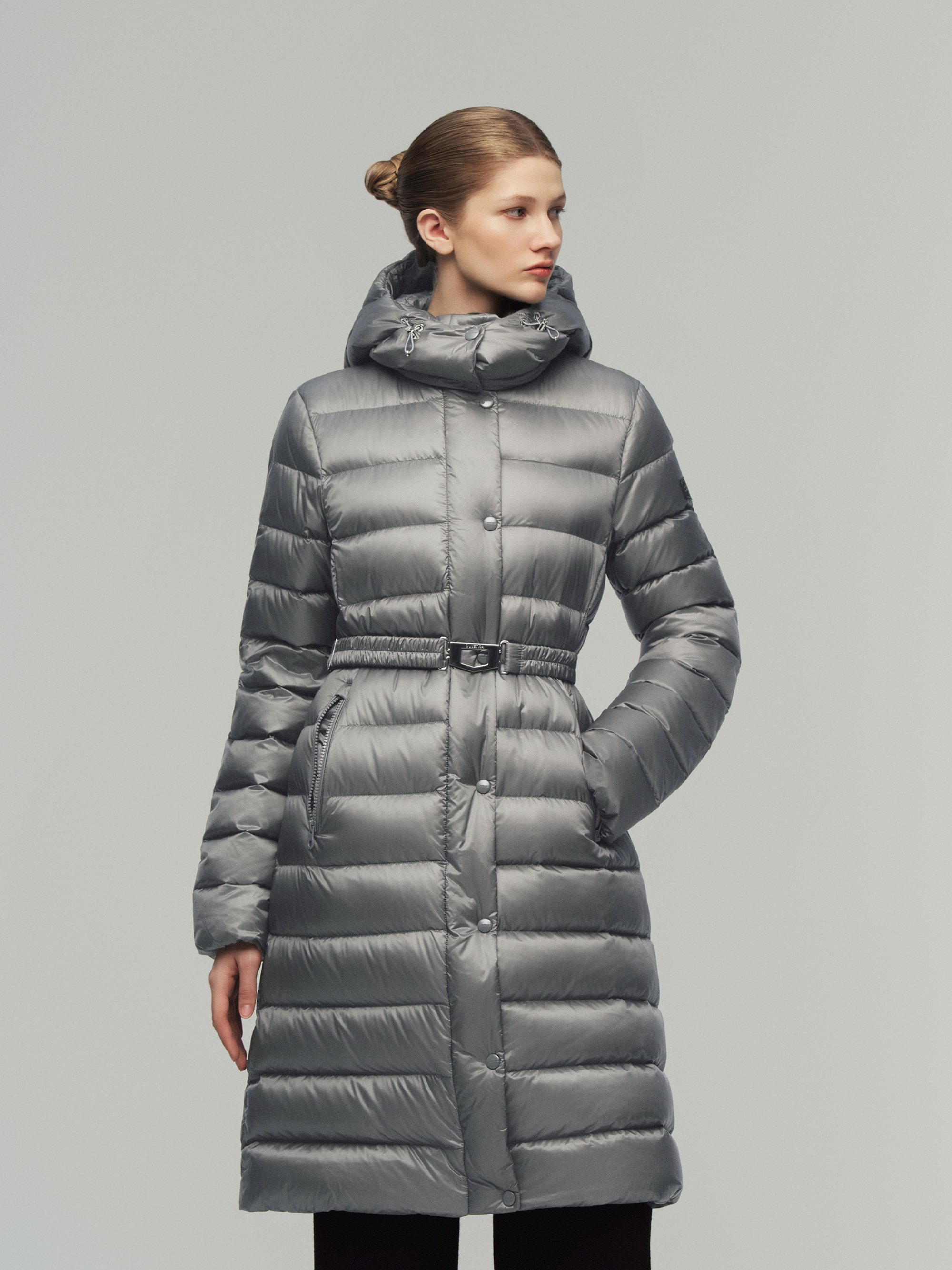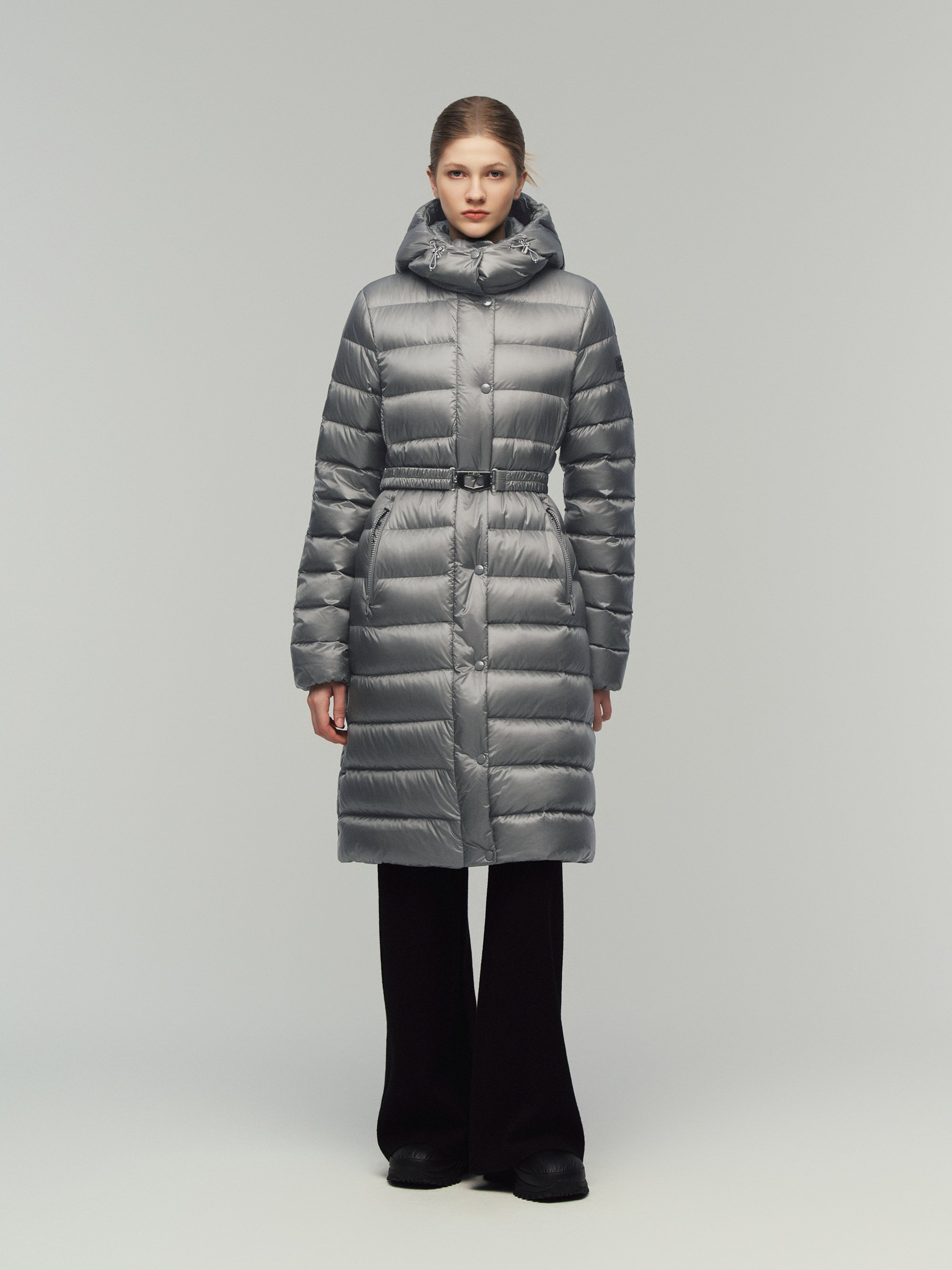 엘베지아 세미글로시 슬림 미드 다운자켓