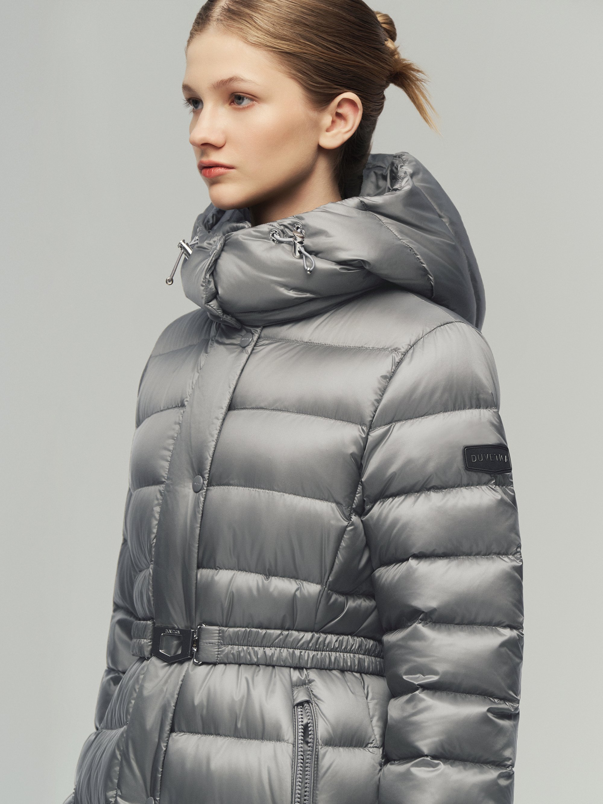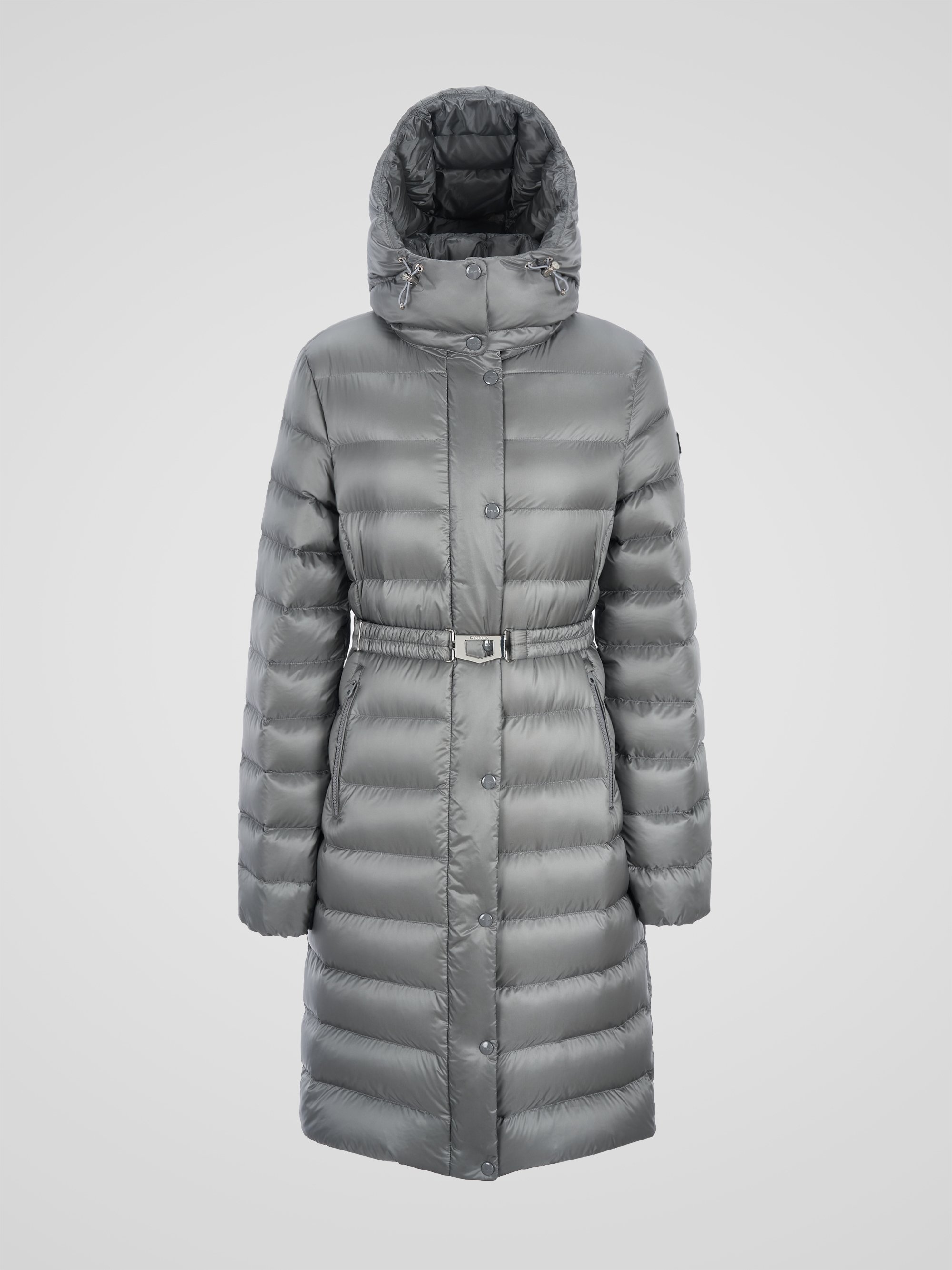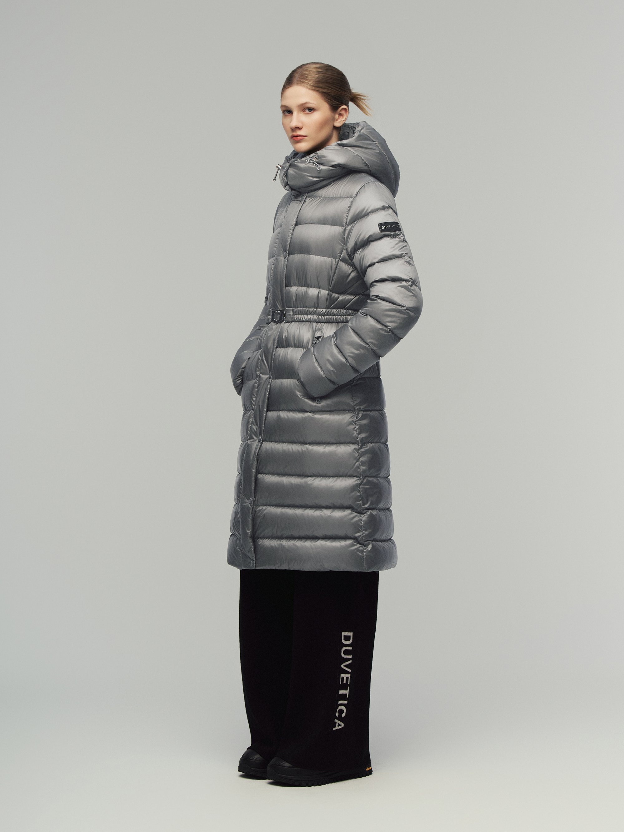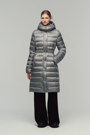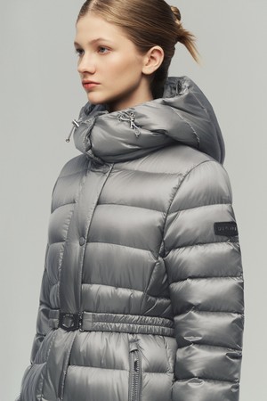 엘베지아 세미글로시 슬림 미드 다운자켓