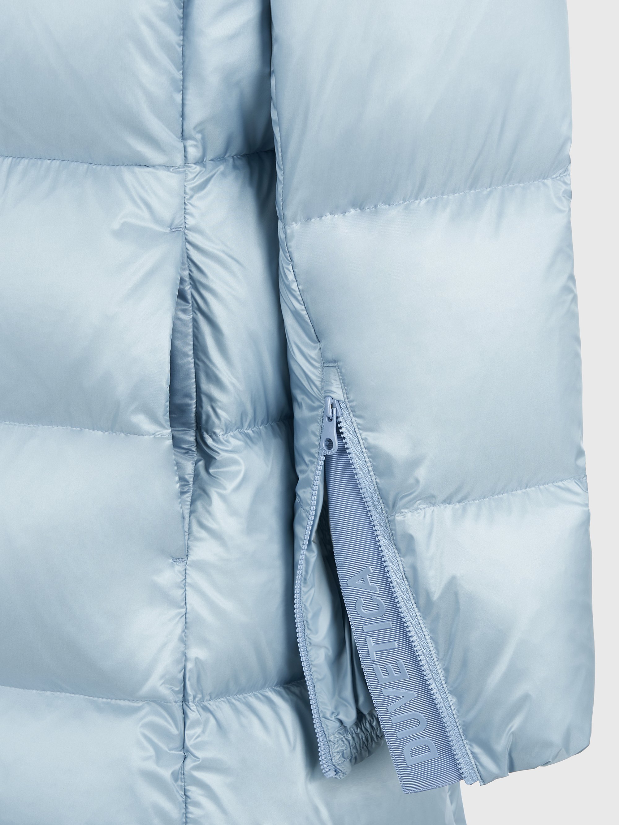 - 소매 지퍼 오픈 시 듀베티카 로고 슬릿이 드러나는 포인트, 벨바텀 소매 실루엣으로 변형 가능