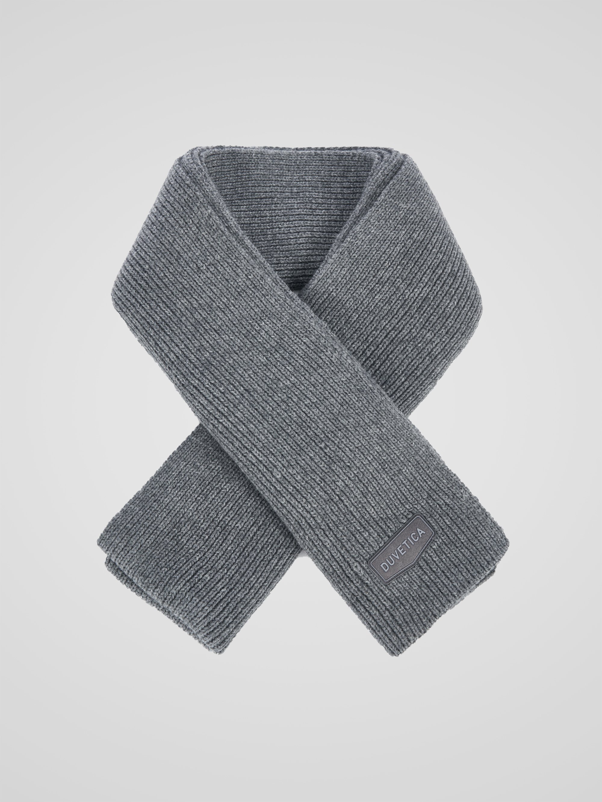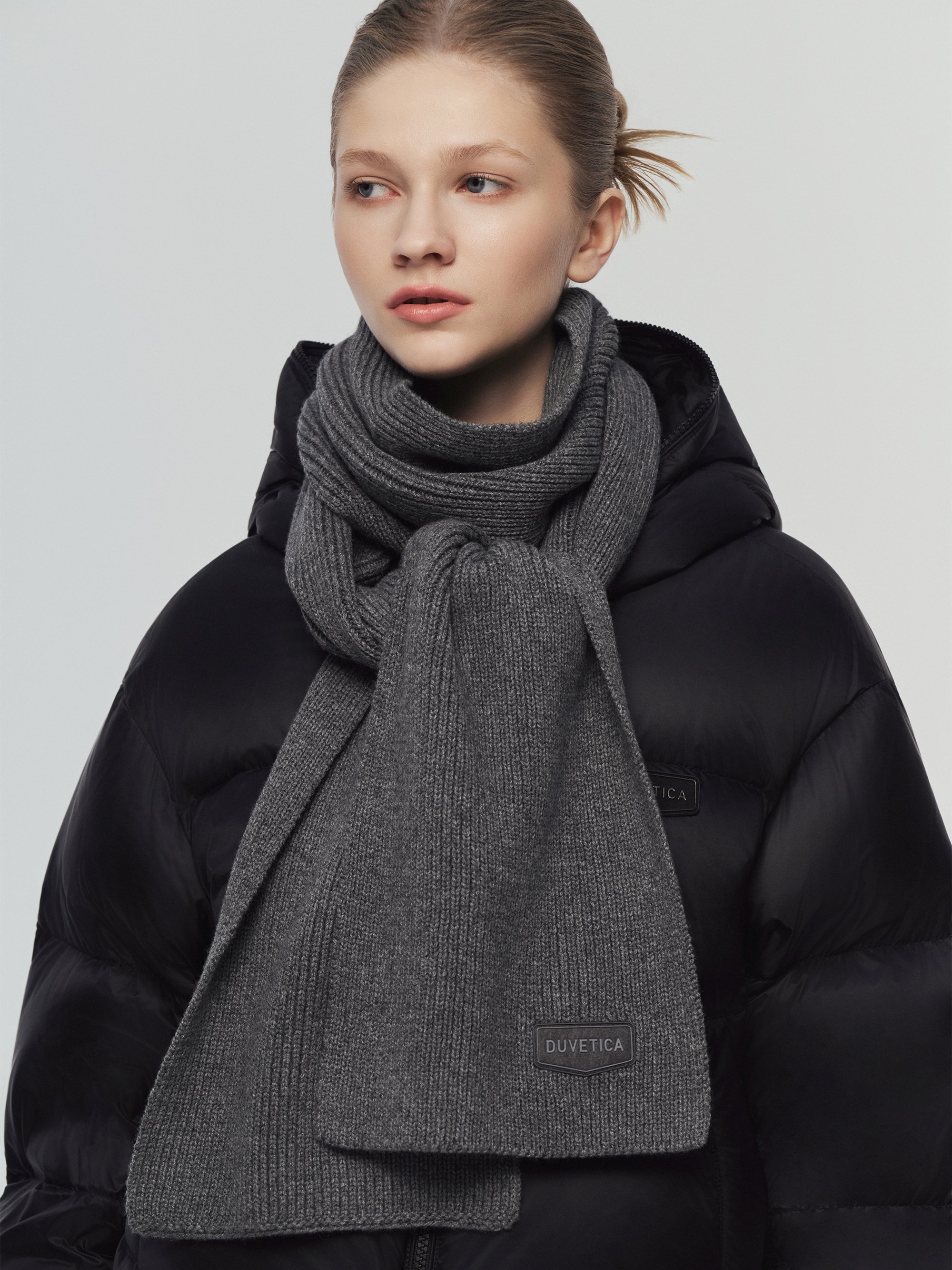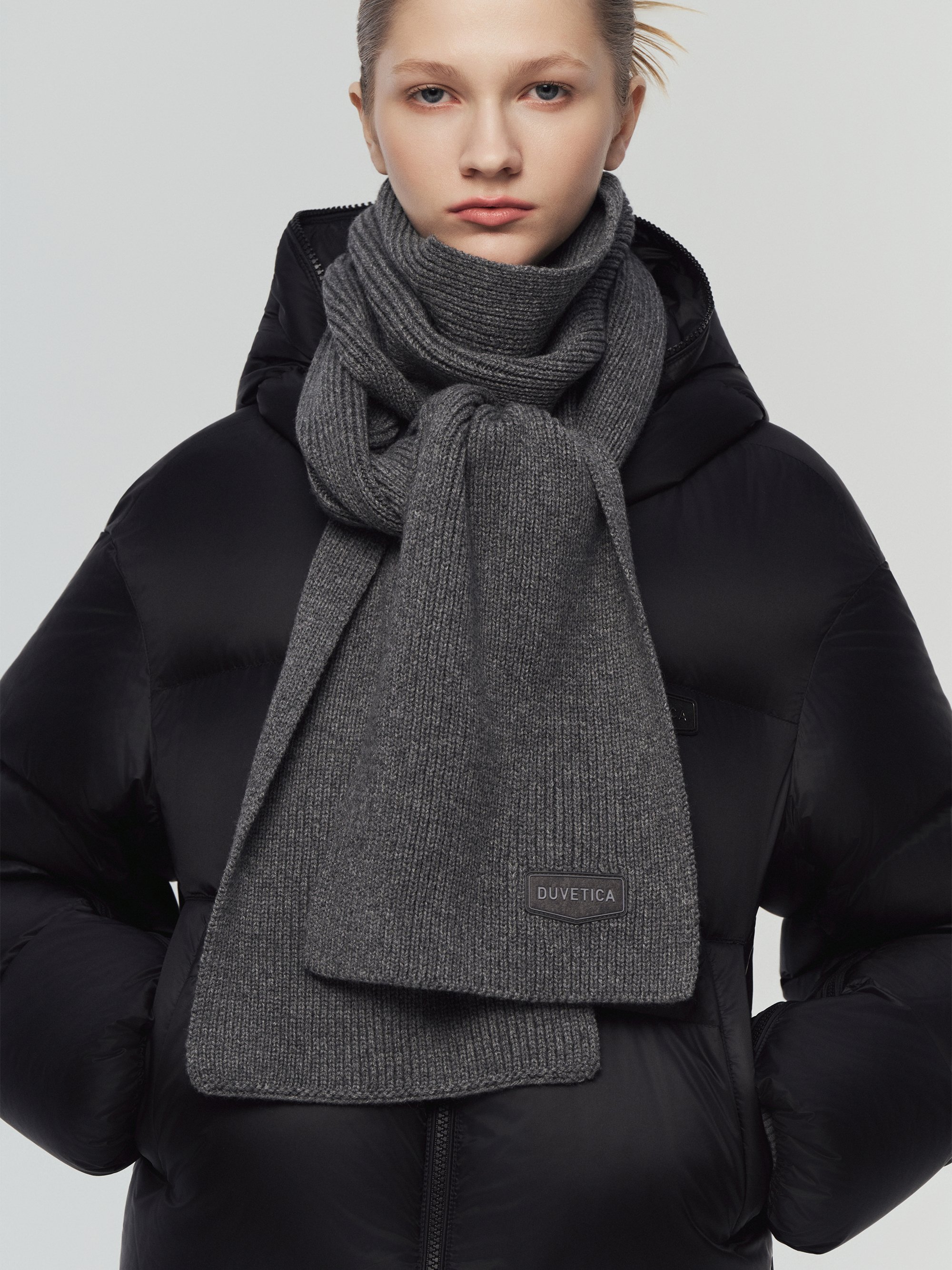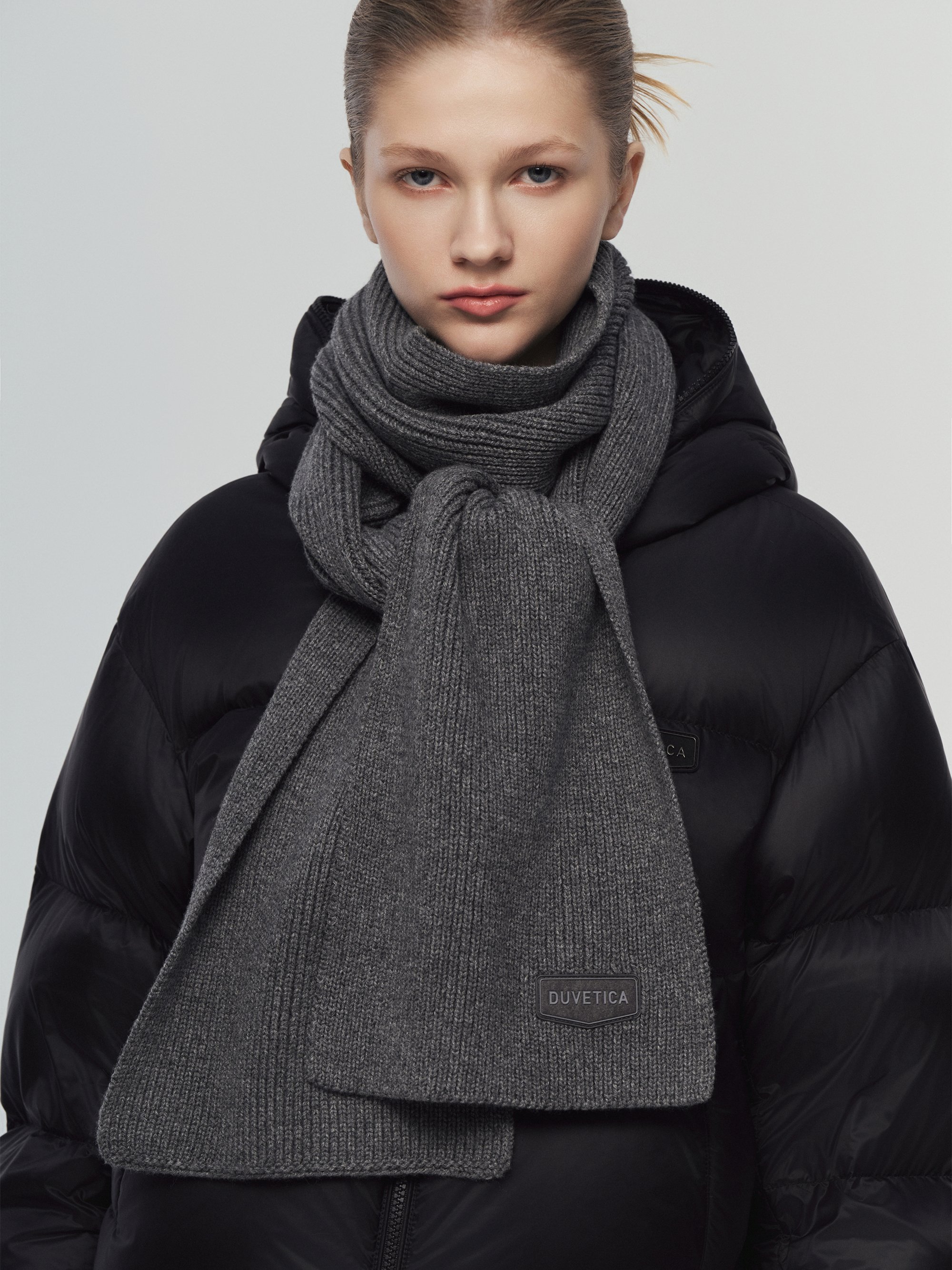 - 끝단에 위치한 톤온톤 DUVETICA 오각로고 와펜으로 브랜딩 포인트 강조