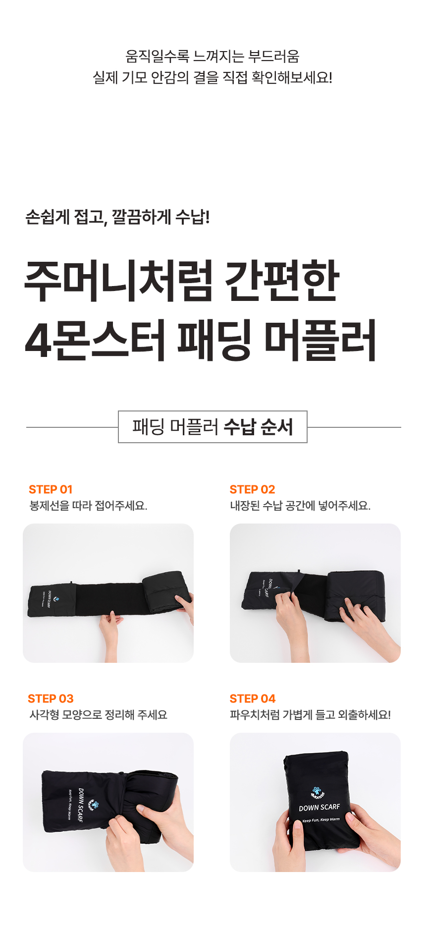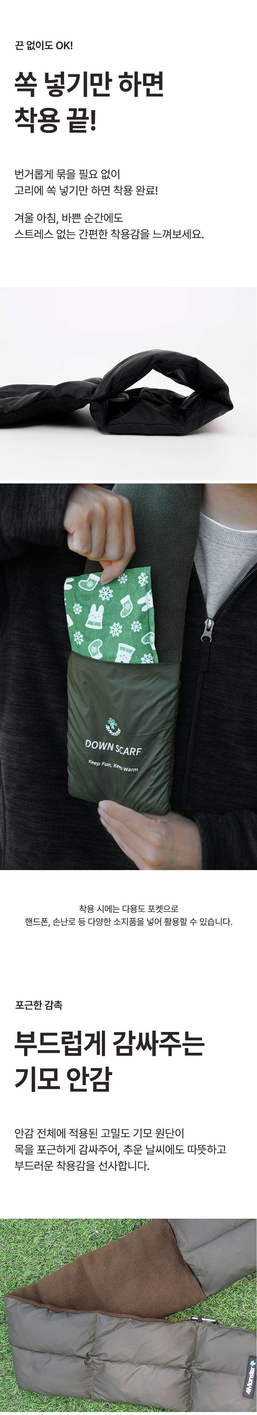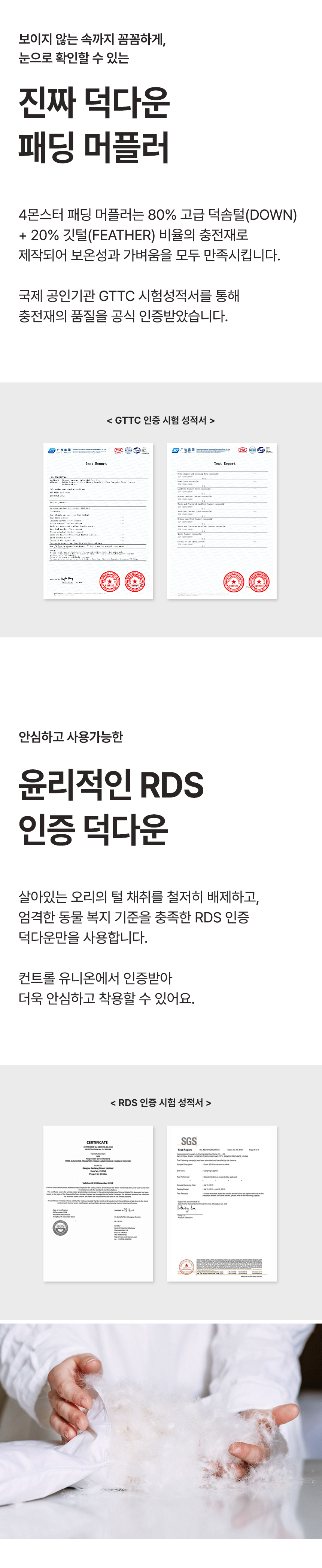 | 재질 | (겉감) 20D Nylon with W/R coating / (충전재) 650 fill power duck down filling (80% down, 20% feathers) |